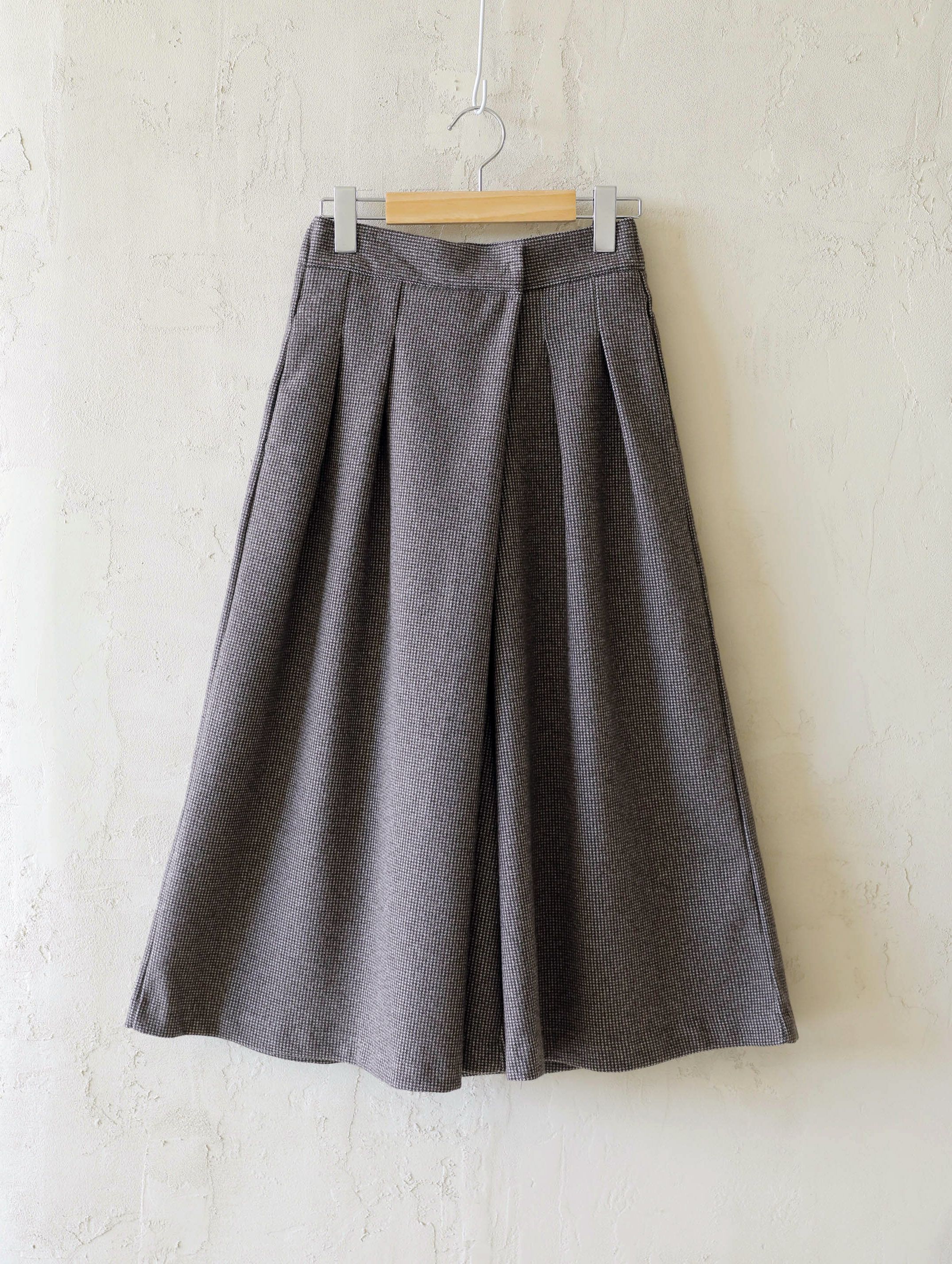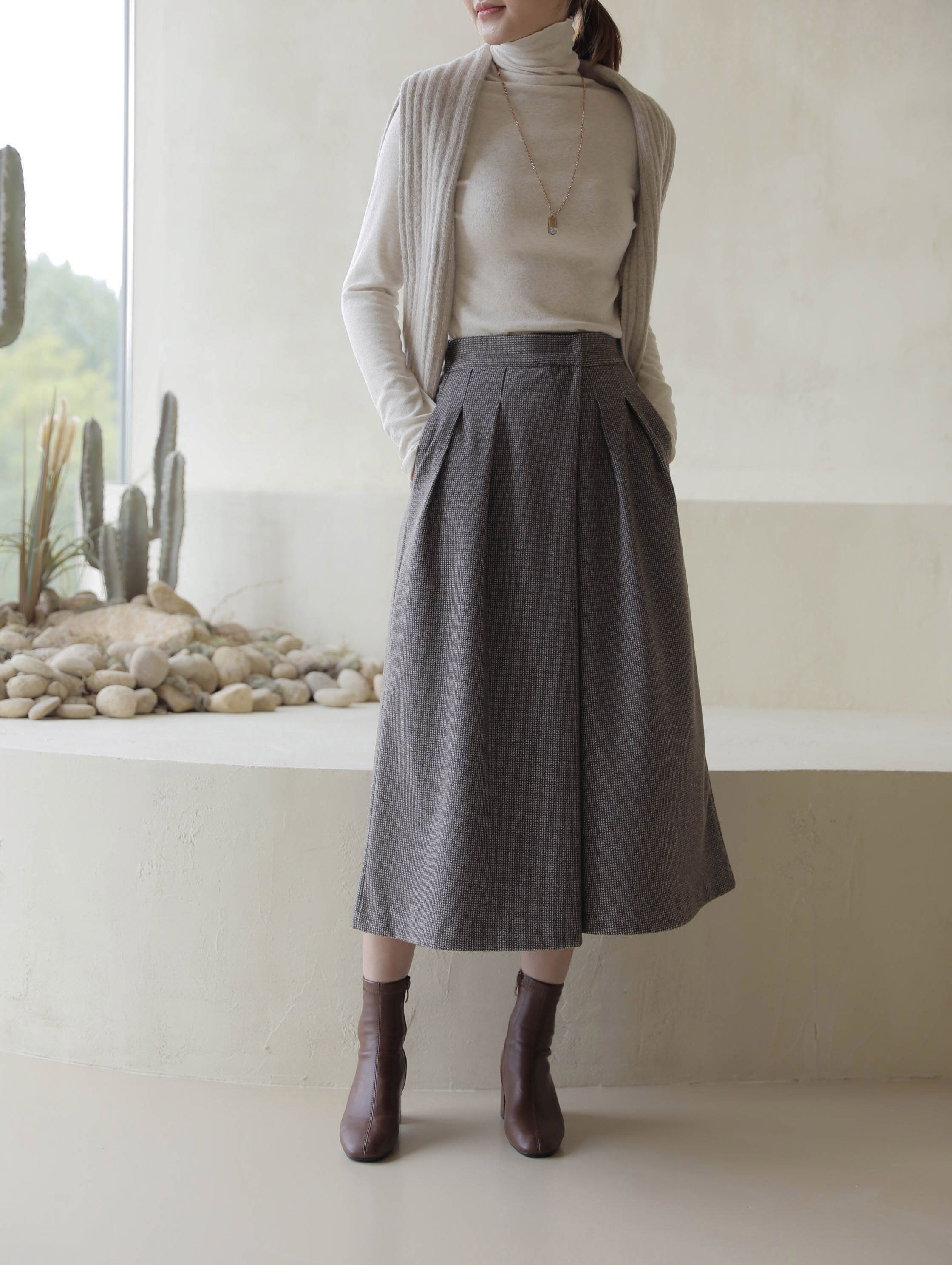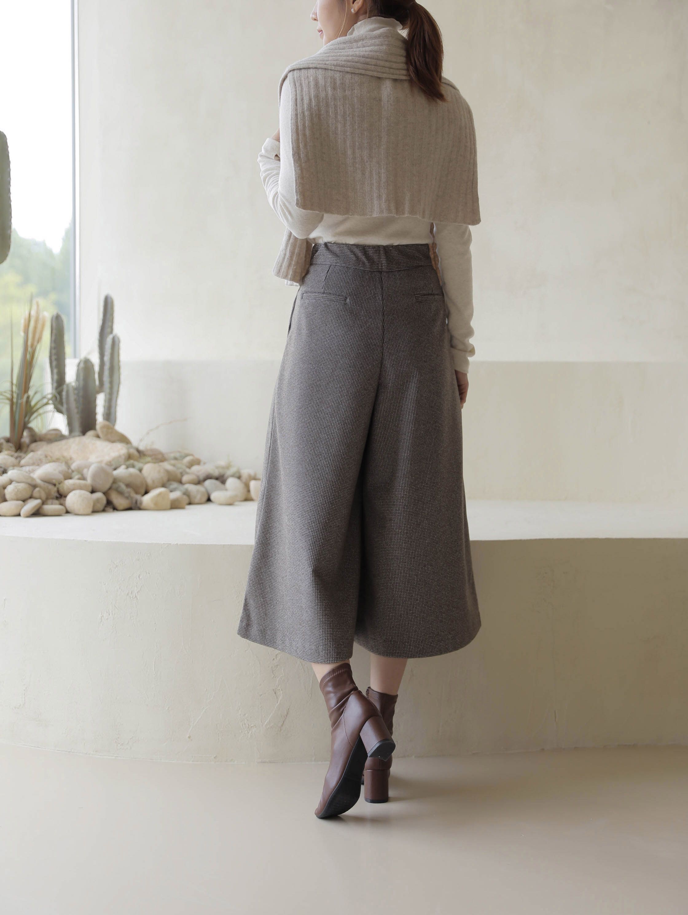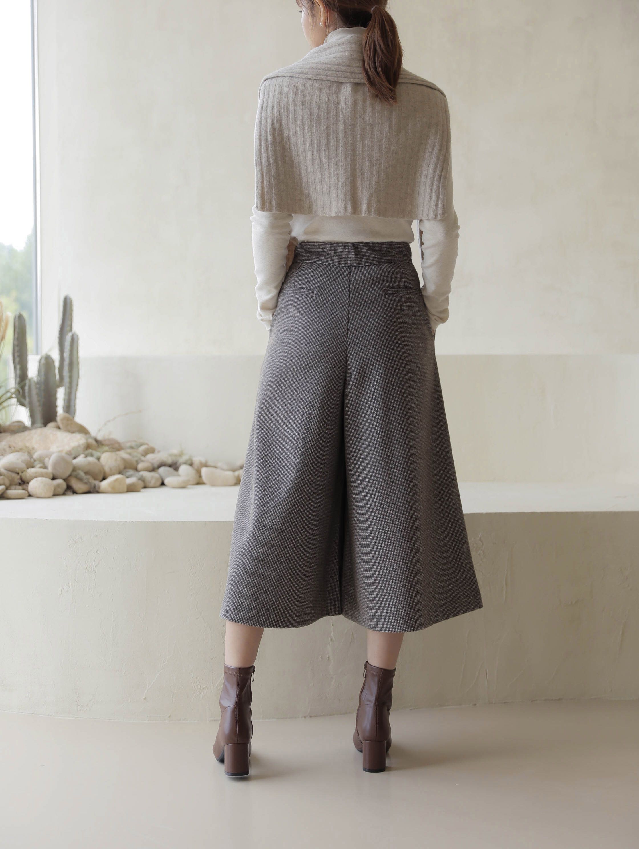 【C55848】韓國HAF 格子寬褲裙-交叉褲頭傘狀後腰鬆緊毛呢七分褲★★