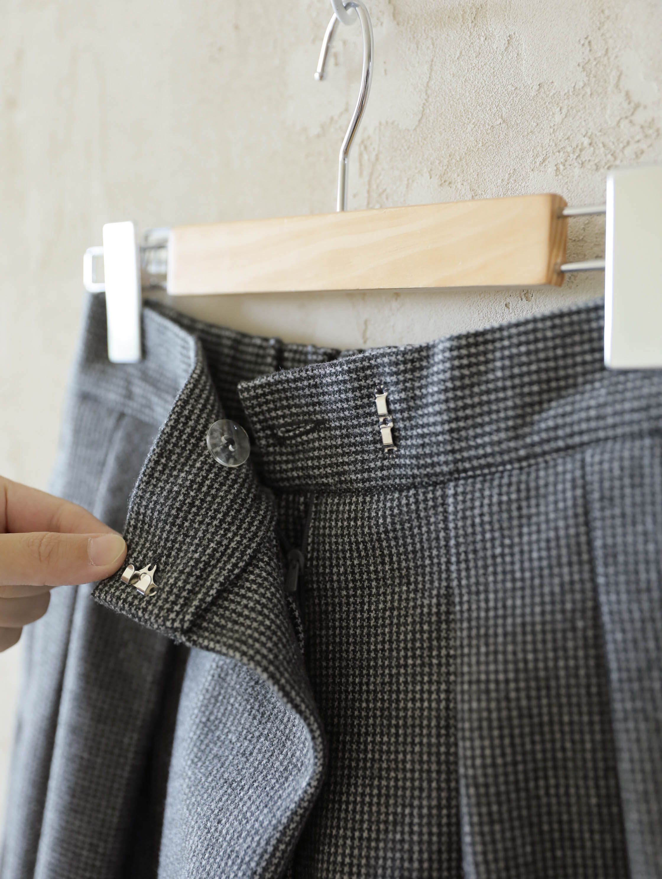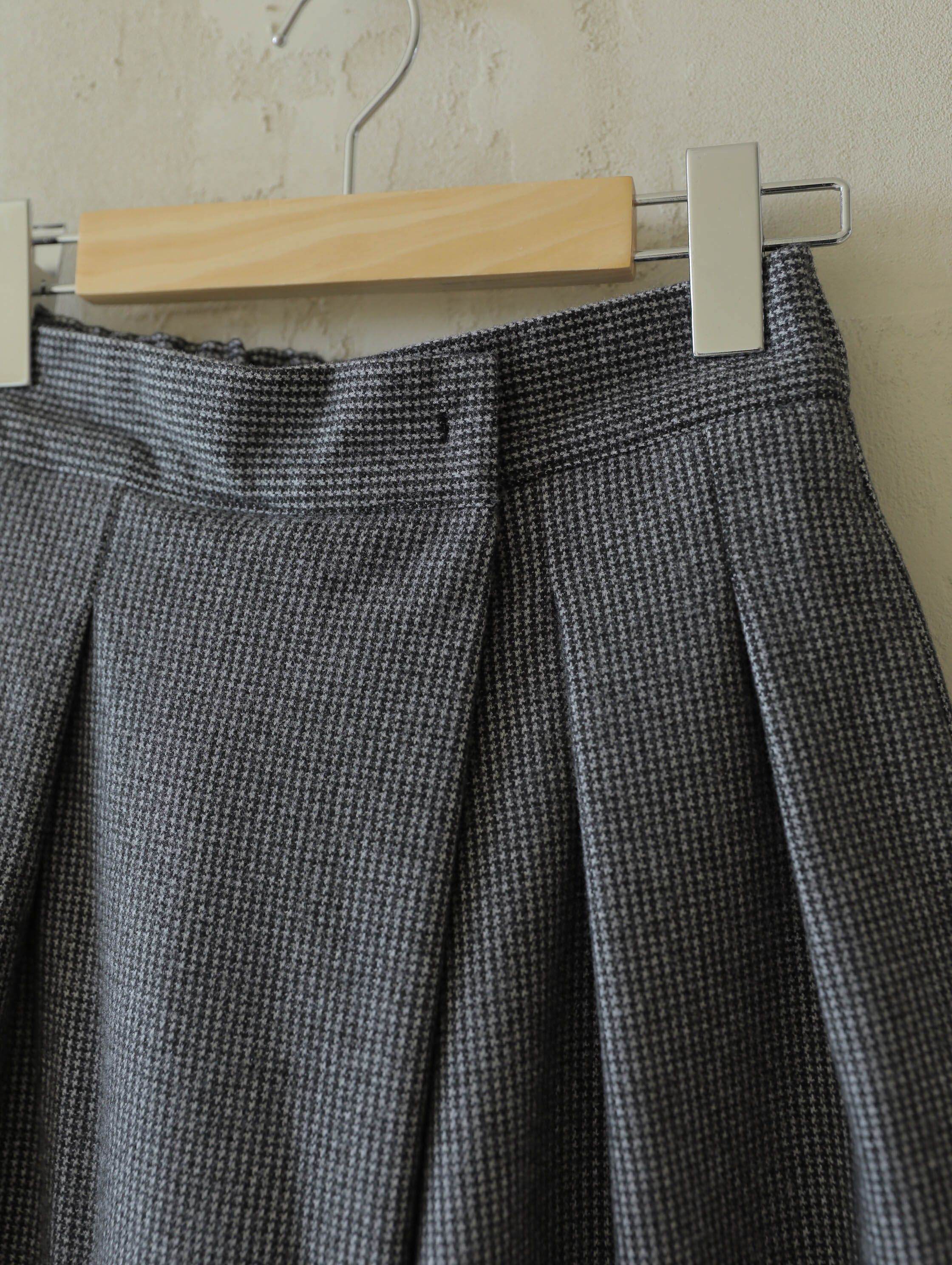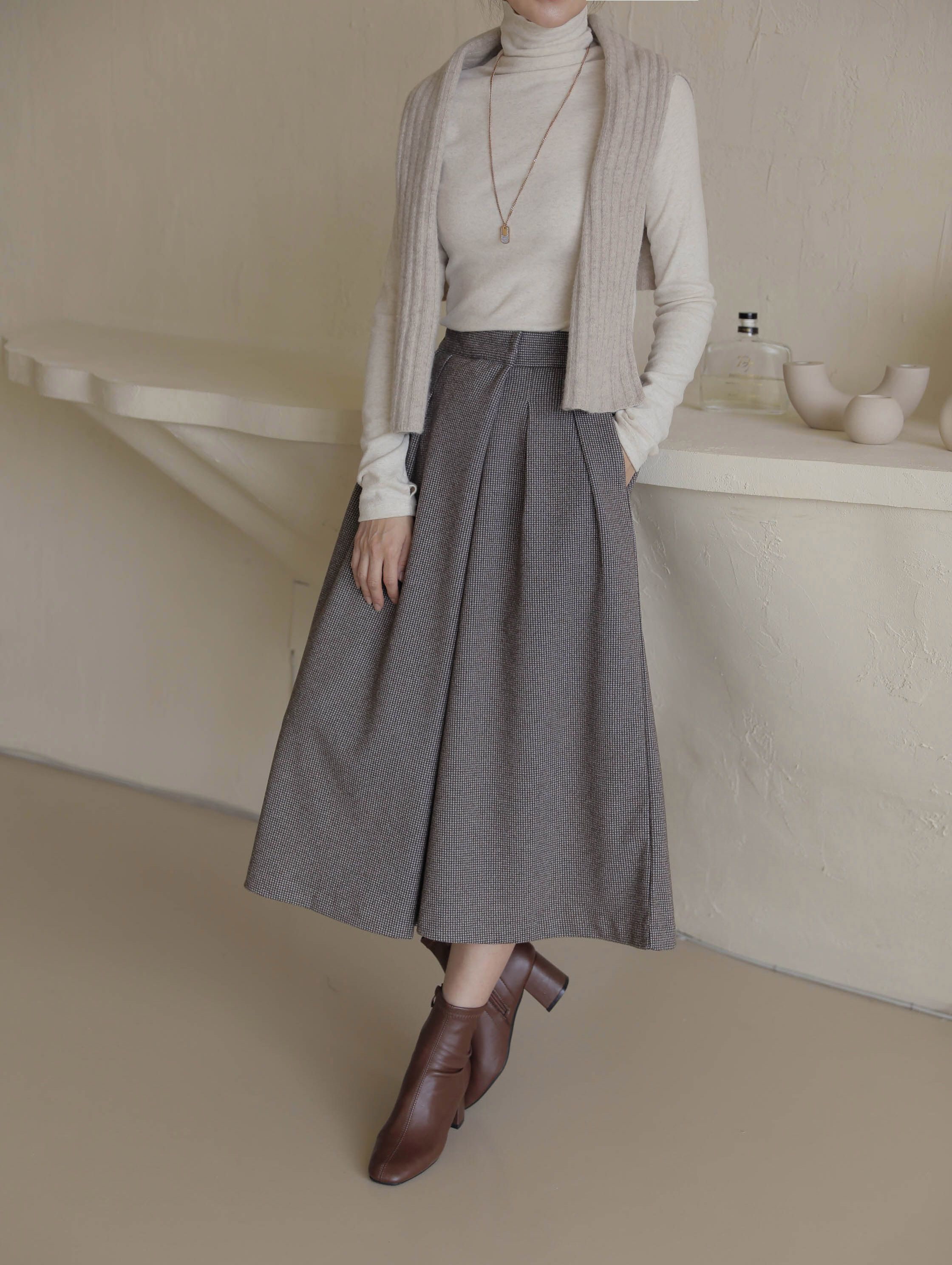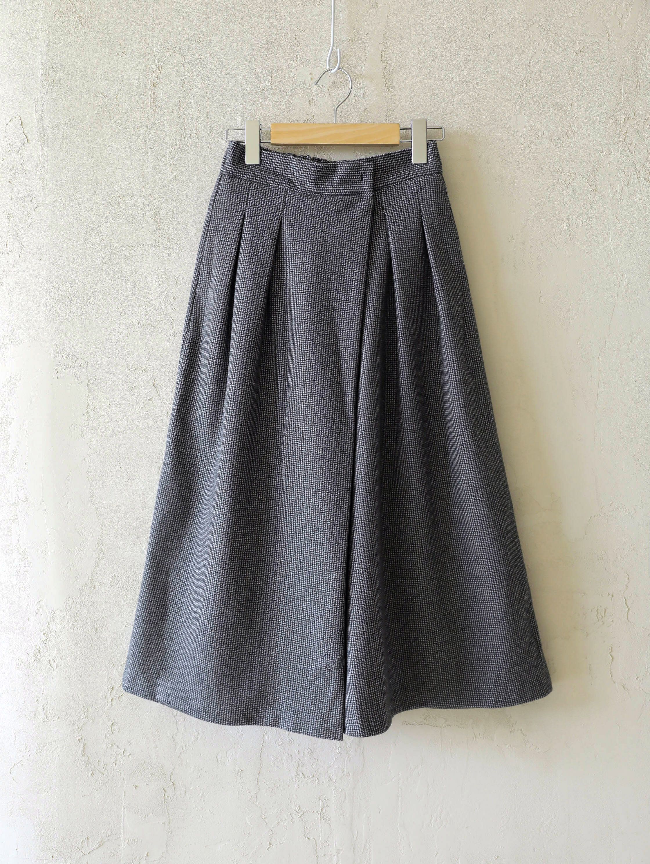 【C55848】韓國HAF 格子寬褲裙-交叉褲頭傘狀後腰鬆緊毛呢七分褲★★