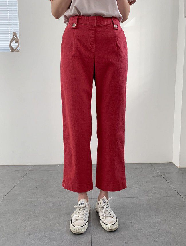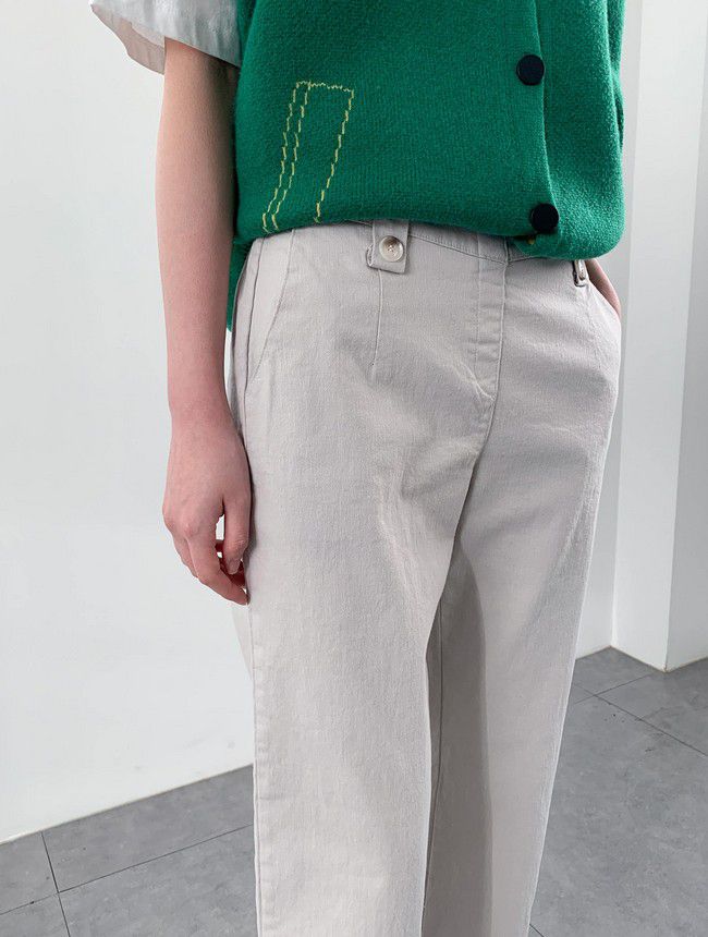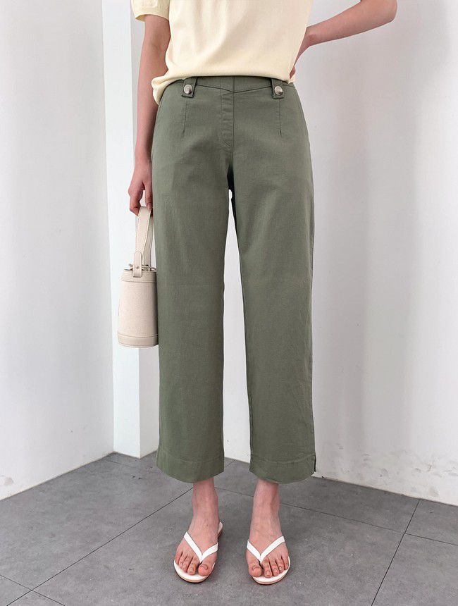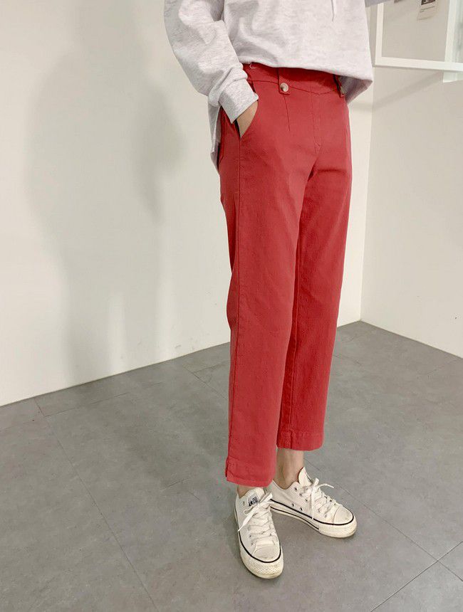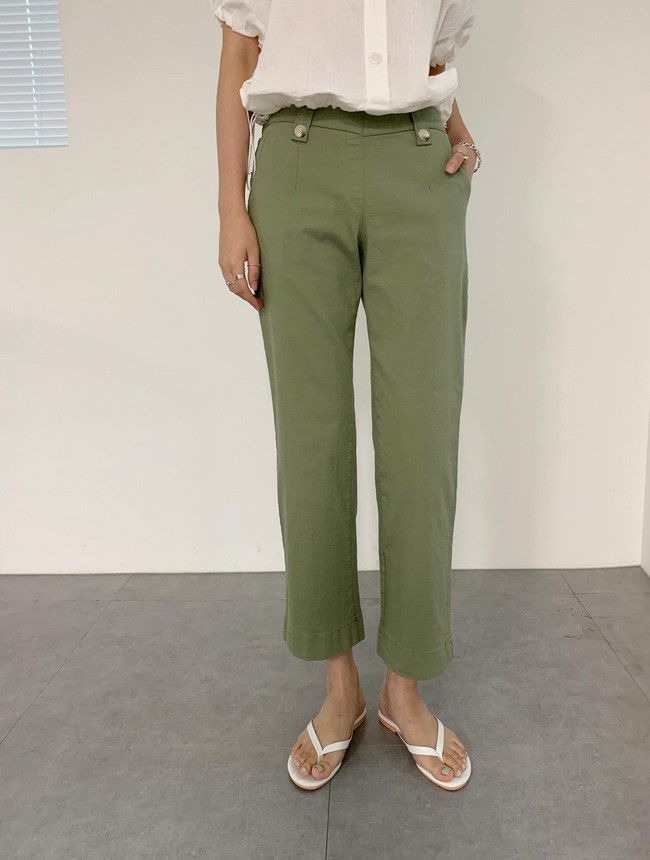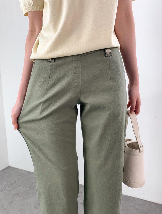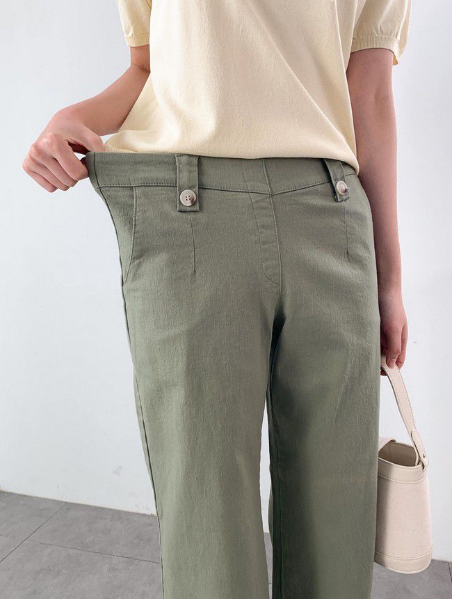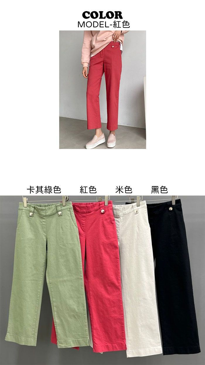 【C55850】韓國AND 鈕釦造型九分褲-素面後腰鬆緊開衩褲腳直筒好氣色★★