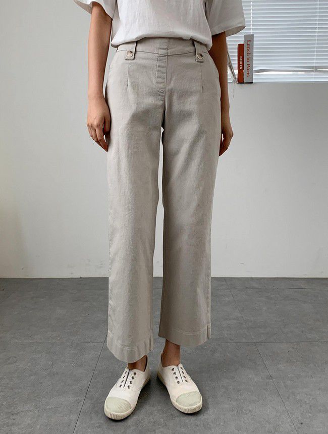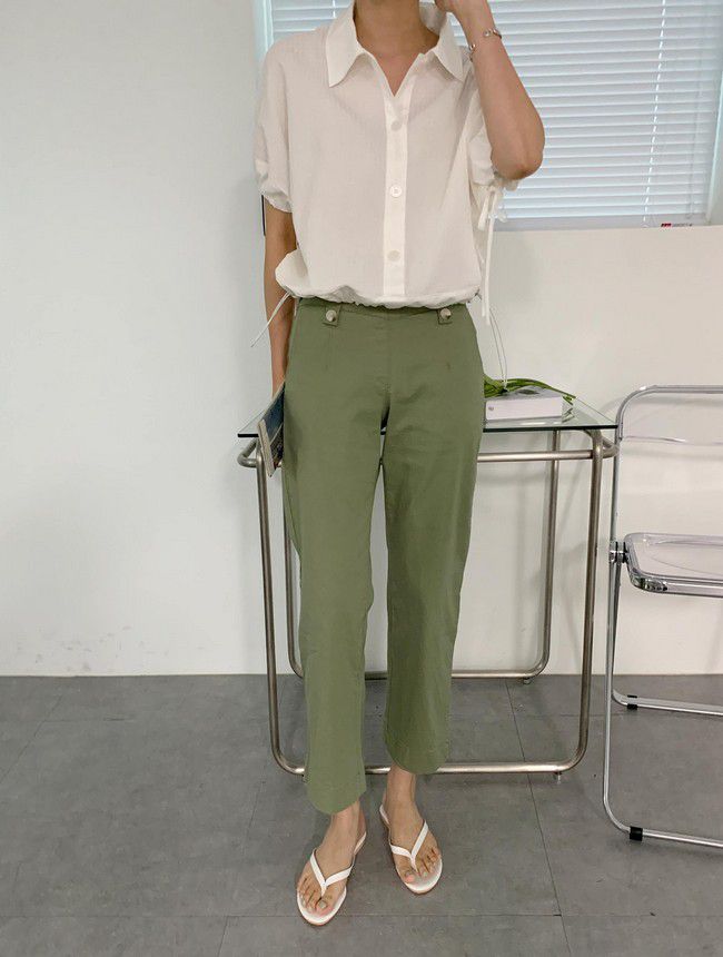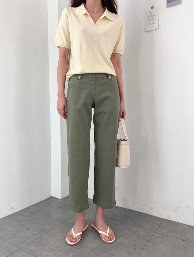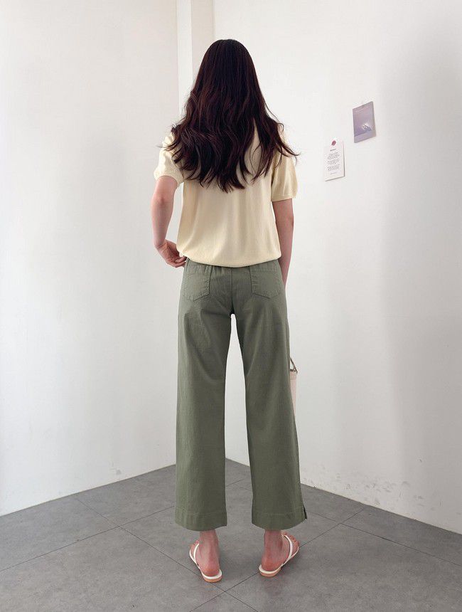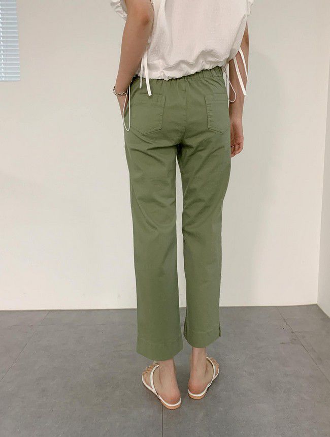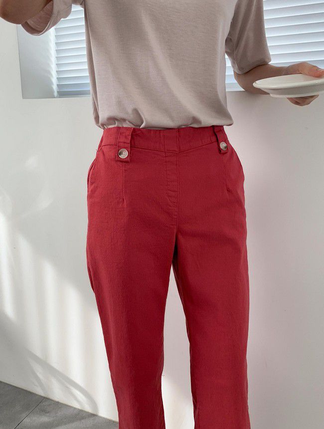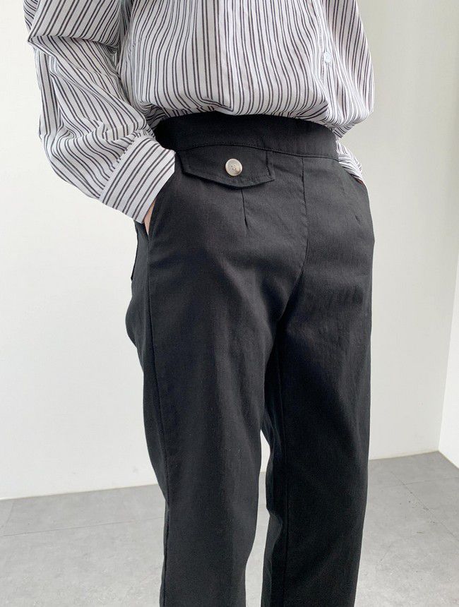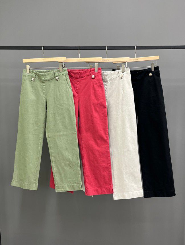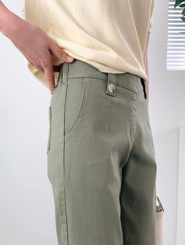 【C55850】韓國AND 鈕釦造型九分褲-素面後腰鬆緊開衩褲腳直筒好氣色★★