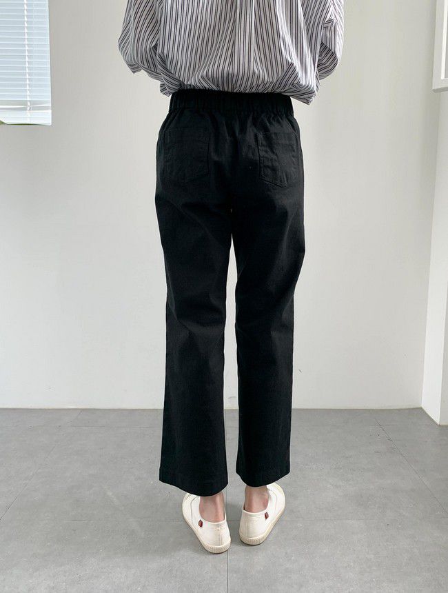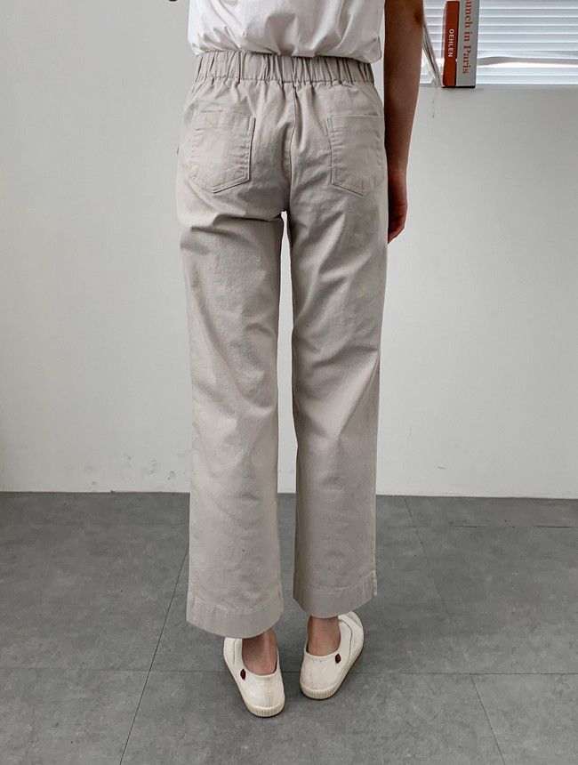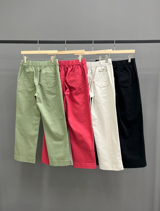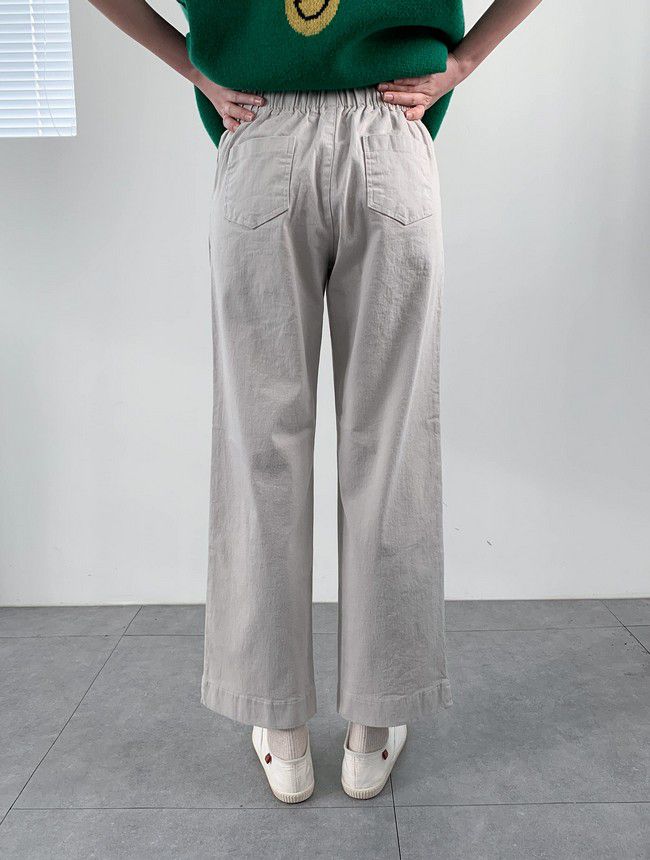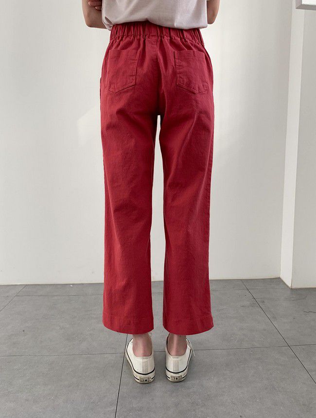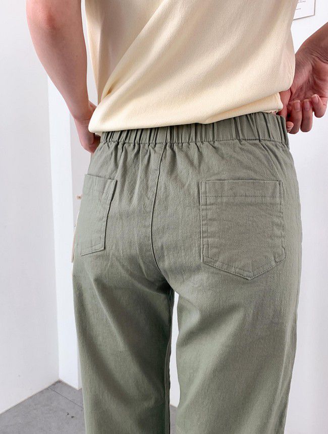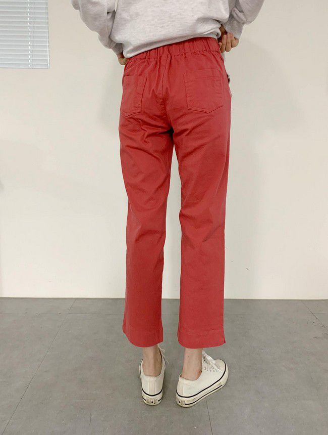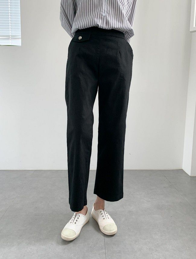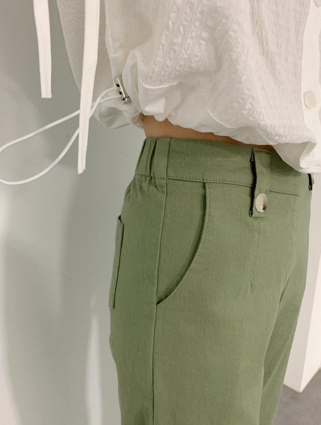 【C55850】韓國AND 鈕釦造型九分褲-素面後腰鬆緊開衩褲腳直筒好氣色★★