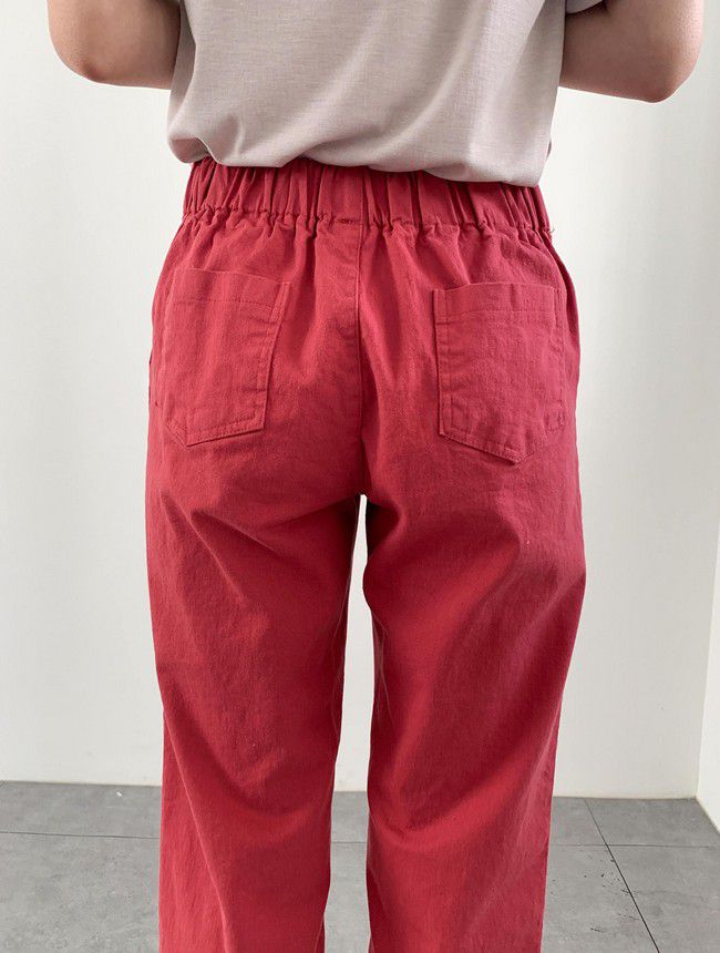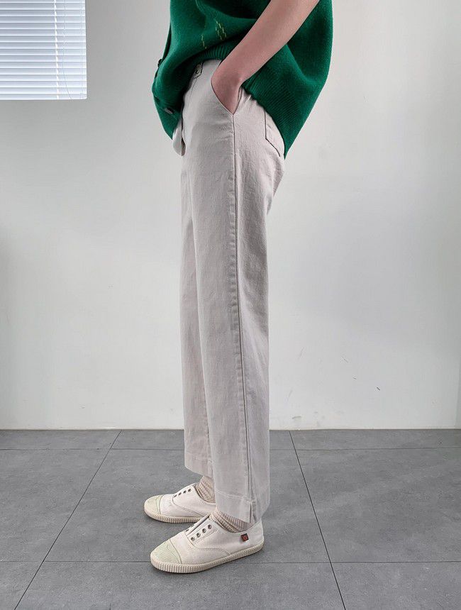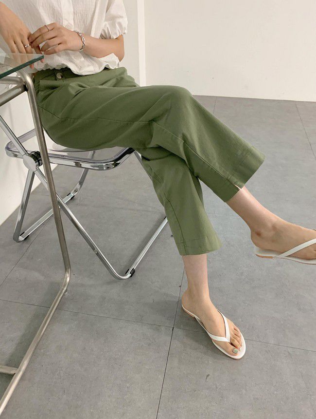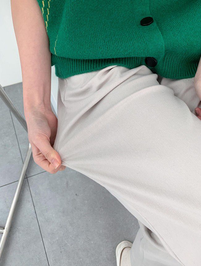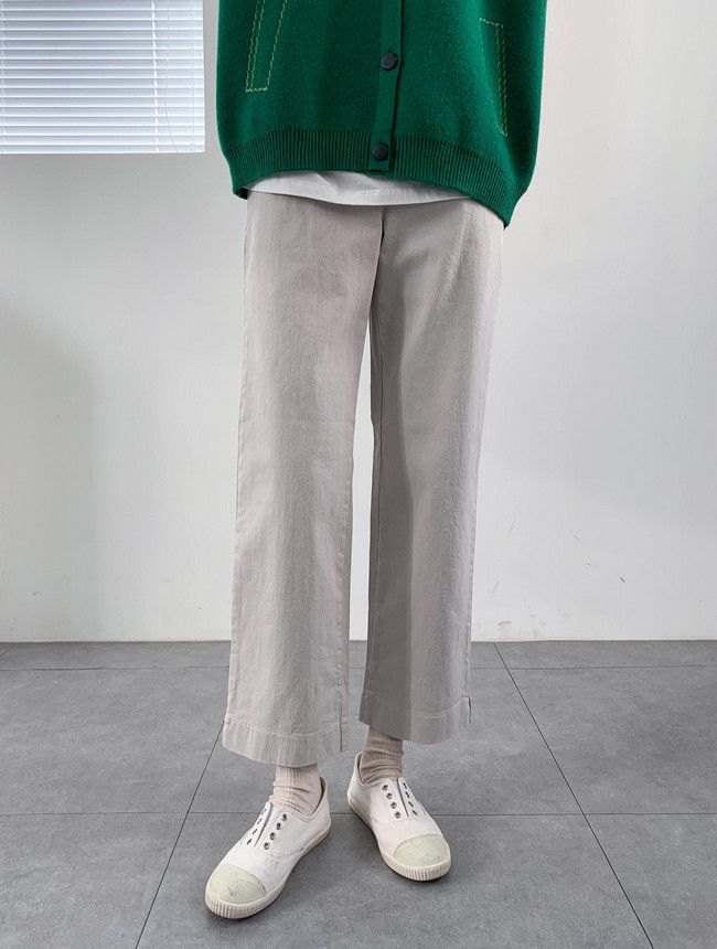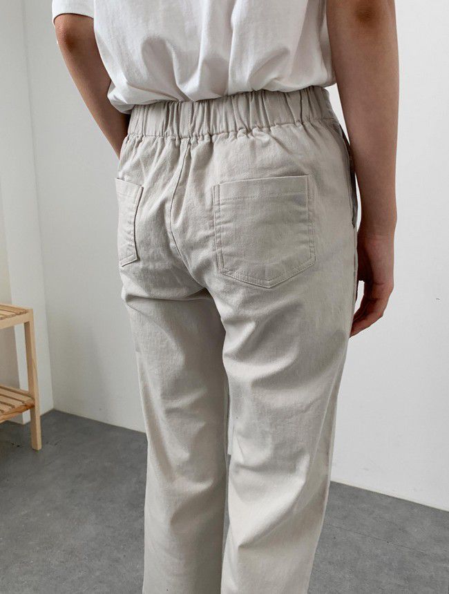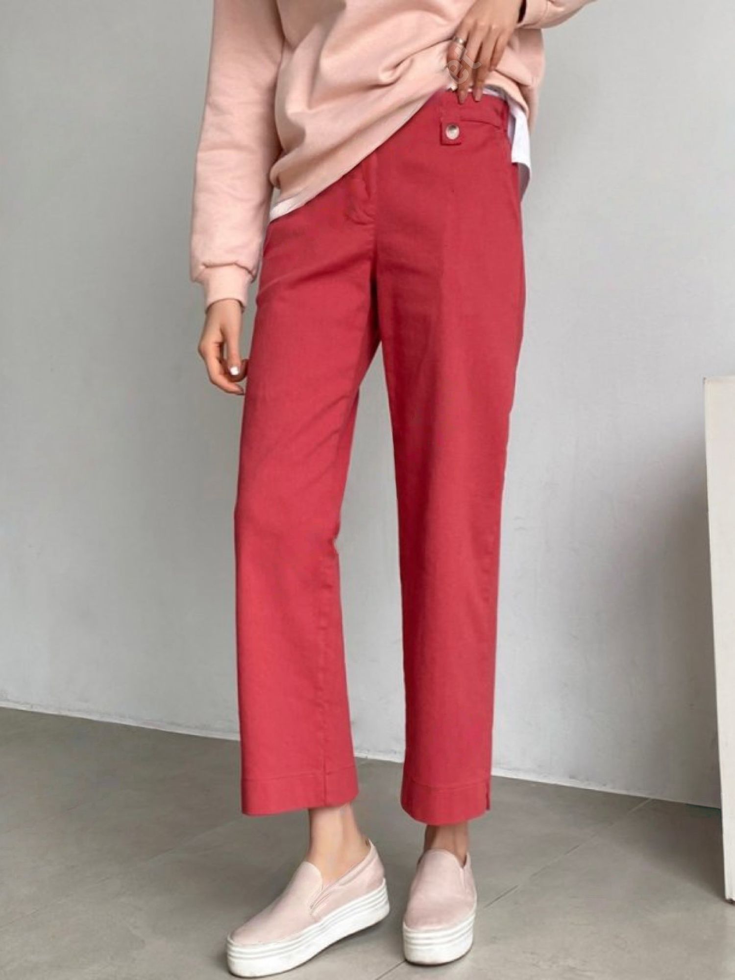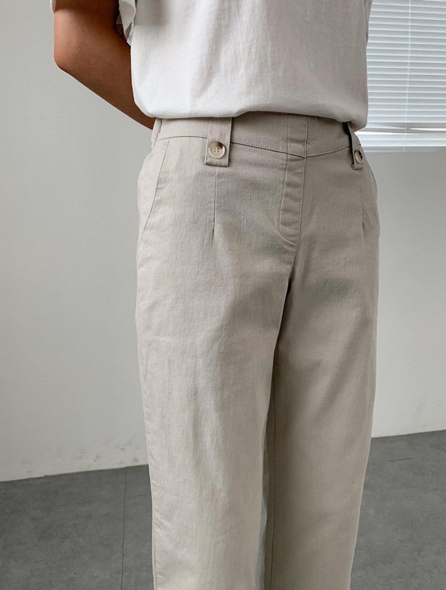 【C55850】韓國AND 鈕釦造型九分褲-素面後腰鬆緊開衩褲腳直筒好氣色★★