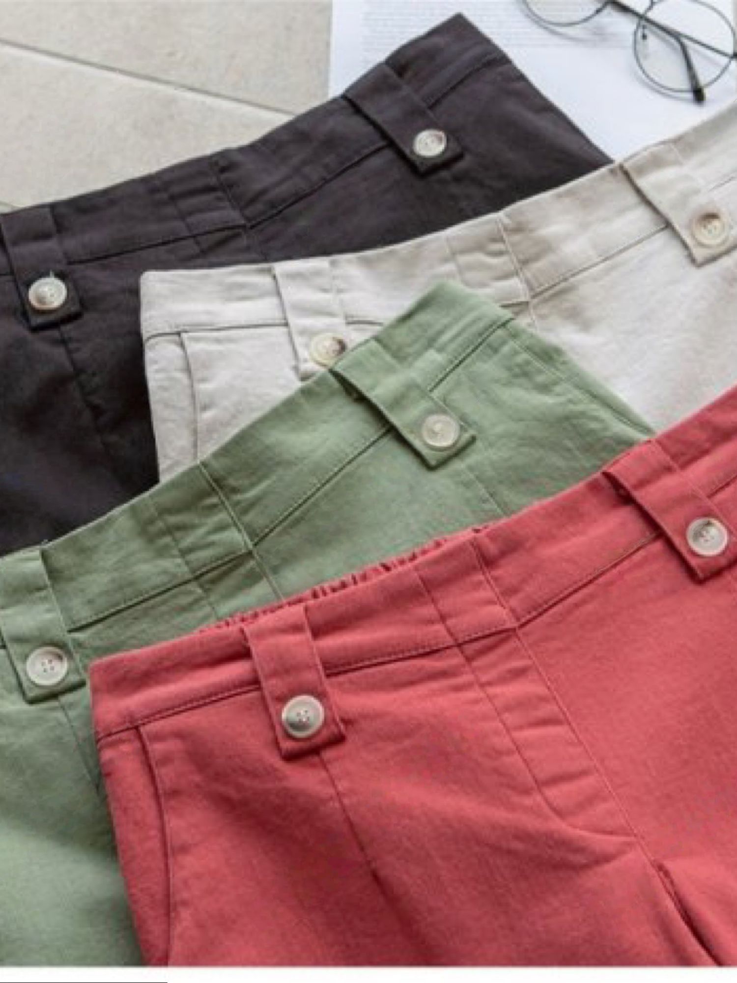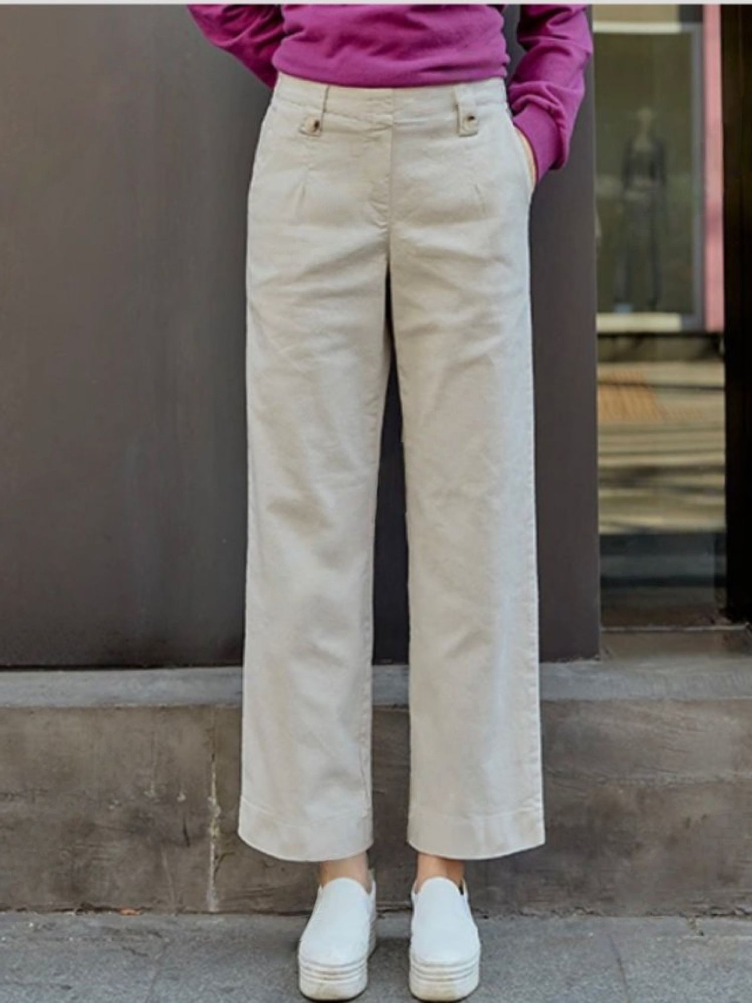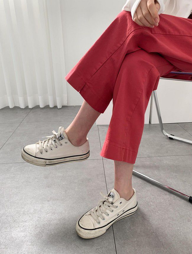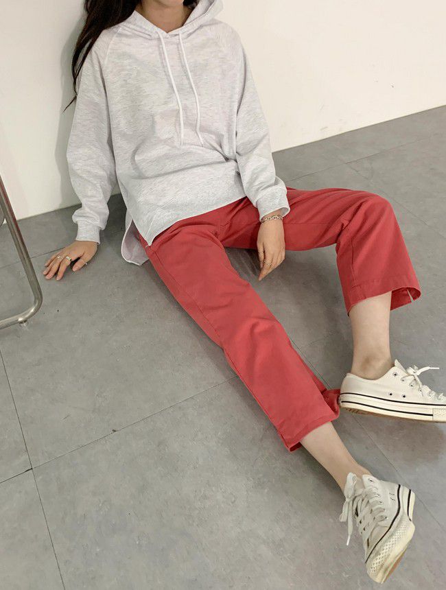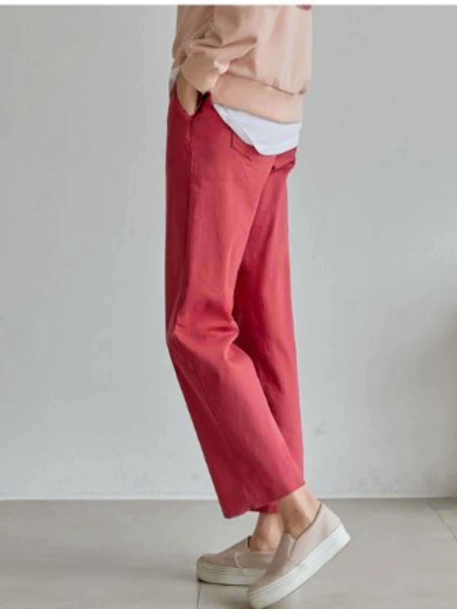 【C55850】韓國AND 鈕釦造型九分褲-素面後腰鬆緊開衩褲腳直筒好氣色★★