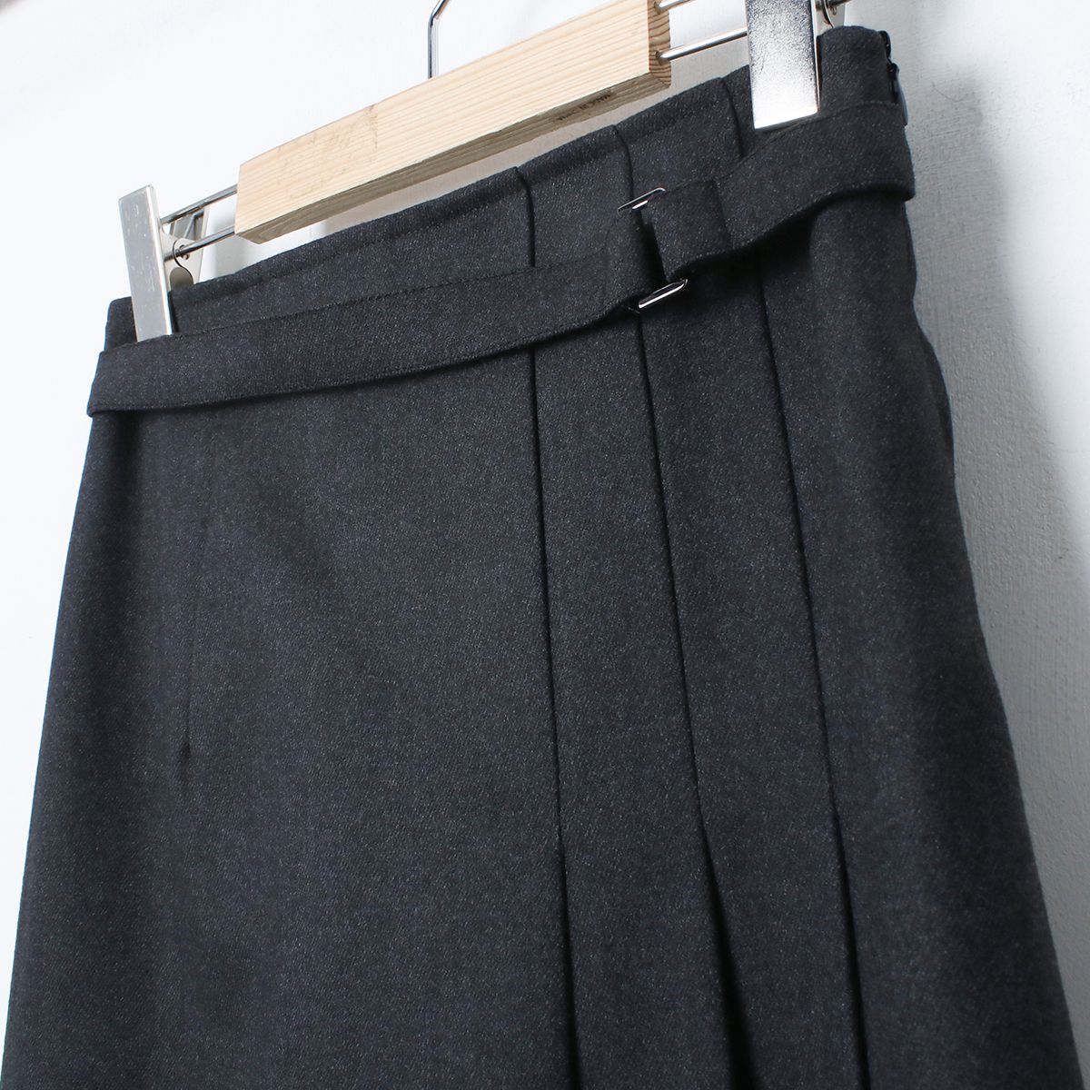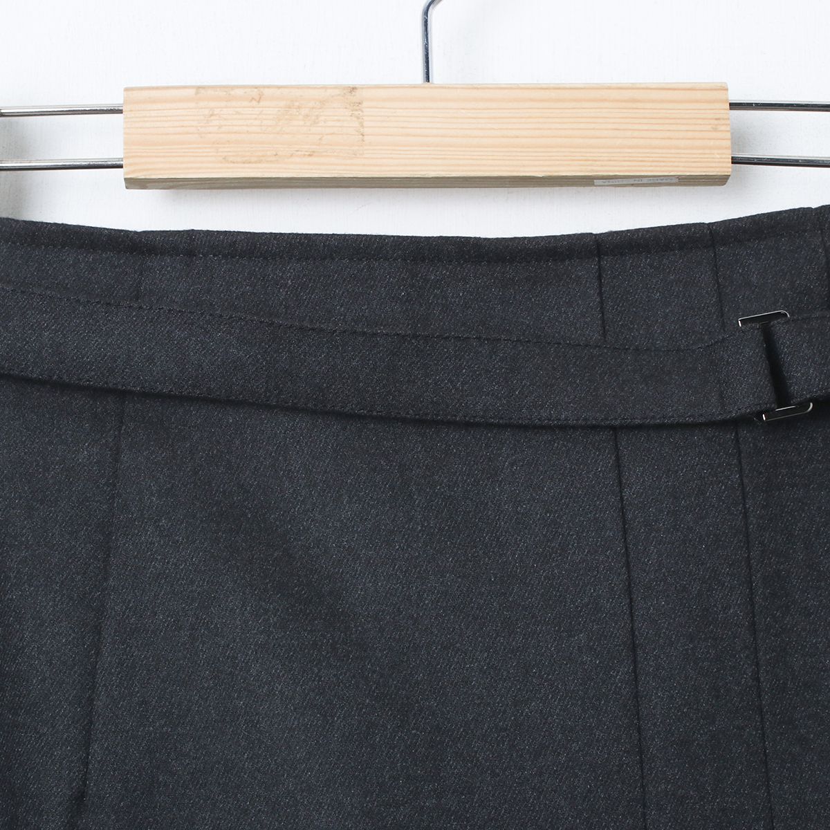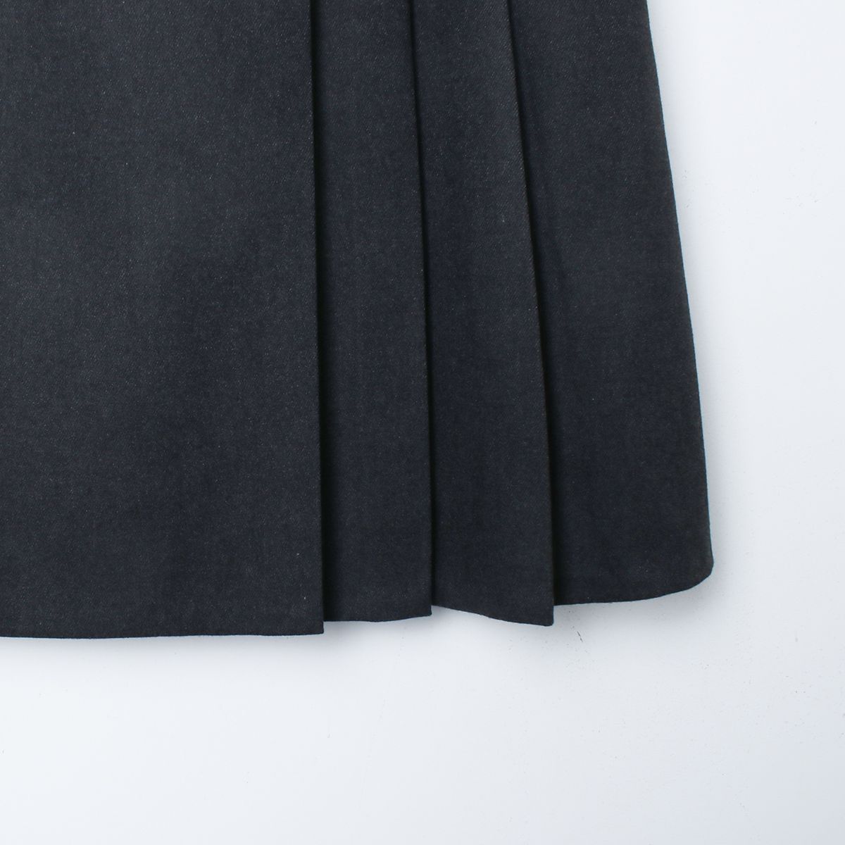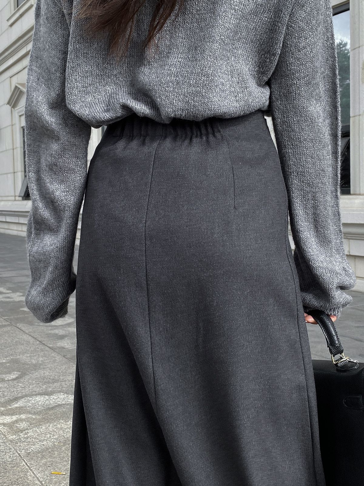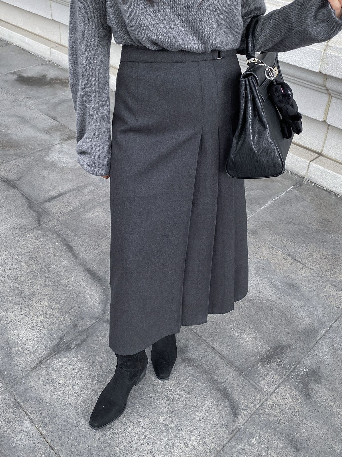 皮帶腰造型(不可調)/毛呢裙/西裝裙/百褶裙/斜邊壓褶/後腰小段鬆緊/側拉鍊 - 休閒婚禮OL上班族簡約百搭素面高腰三褶傘裙抓褶長裙深灰色黑色