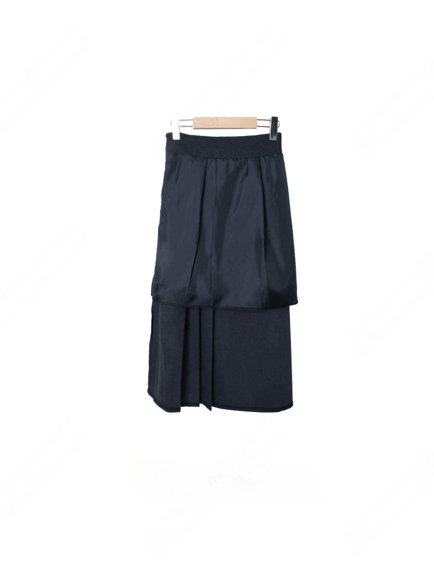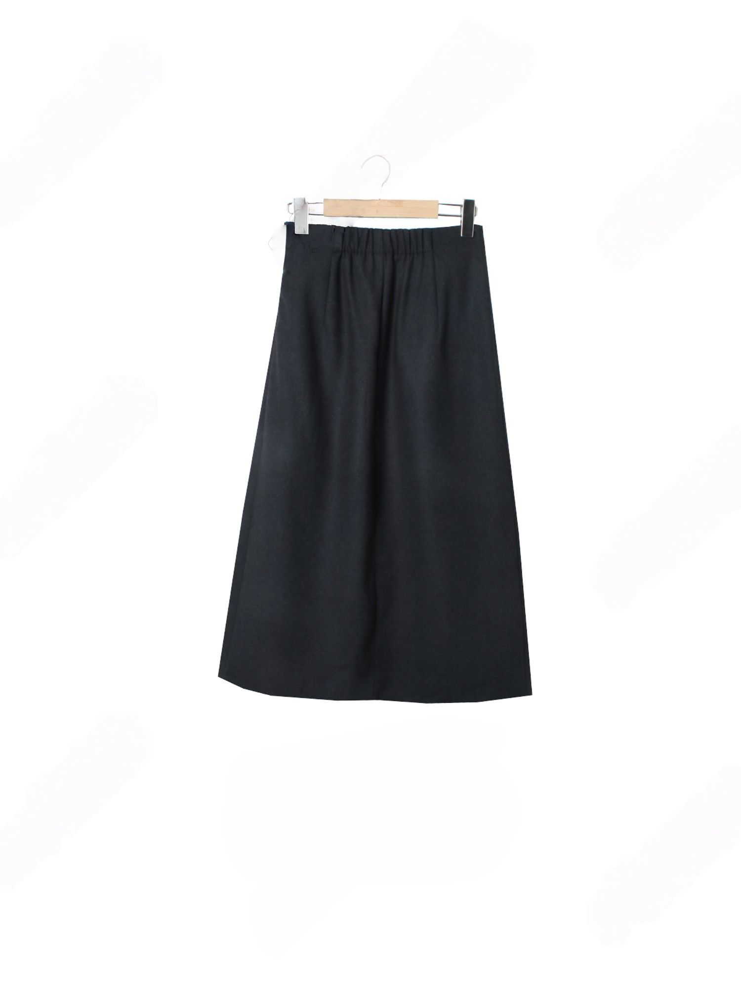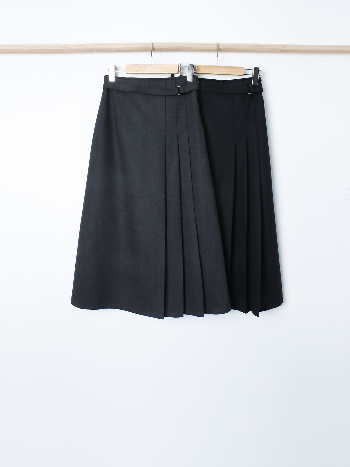 【C55854】韓國LND 高腰三褶傘裙-OL素面皮帶腰毛呢西裝抓褶長裙★★