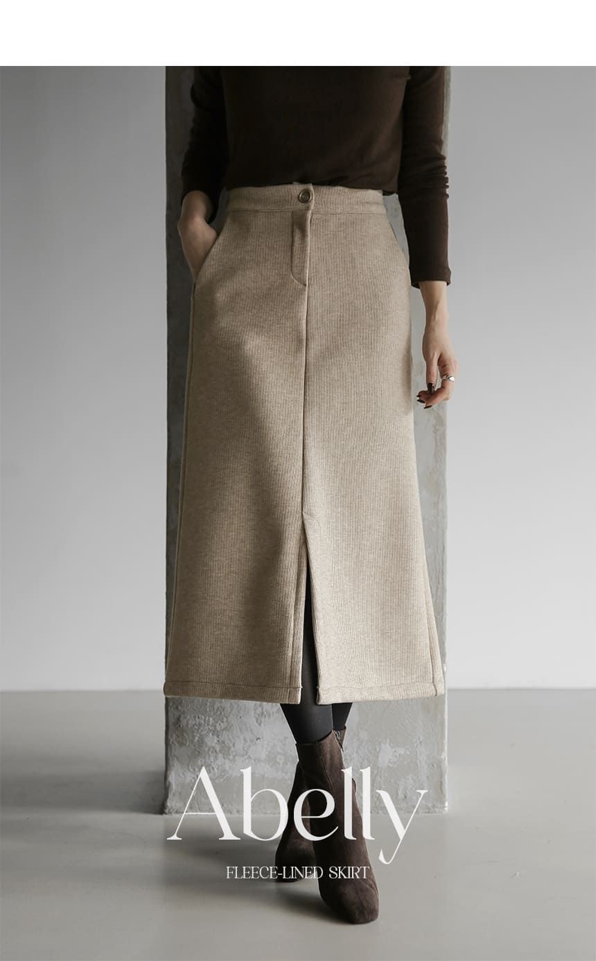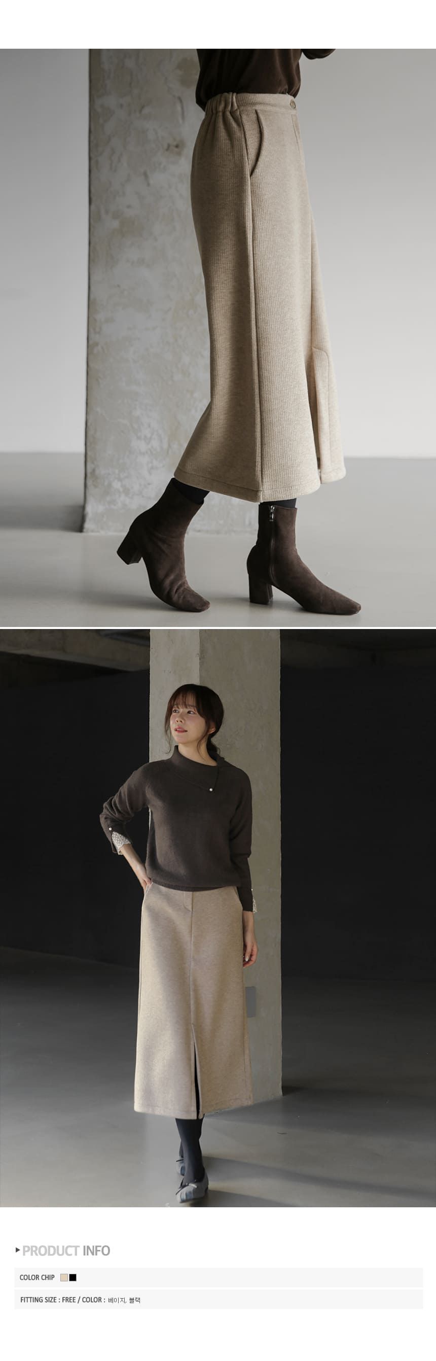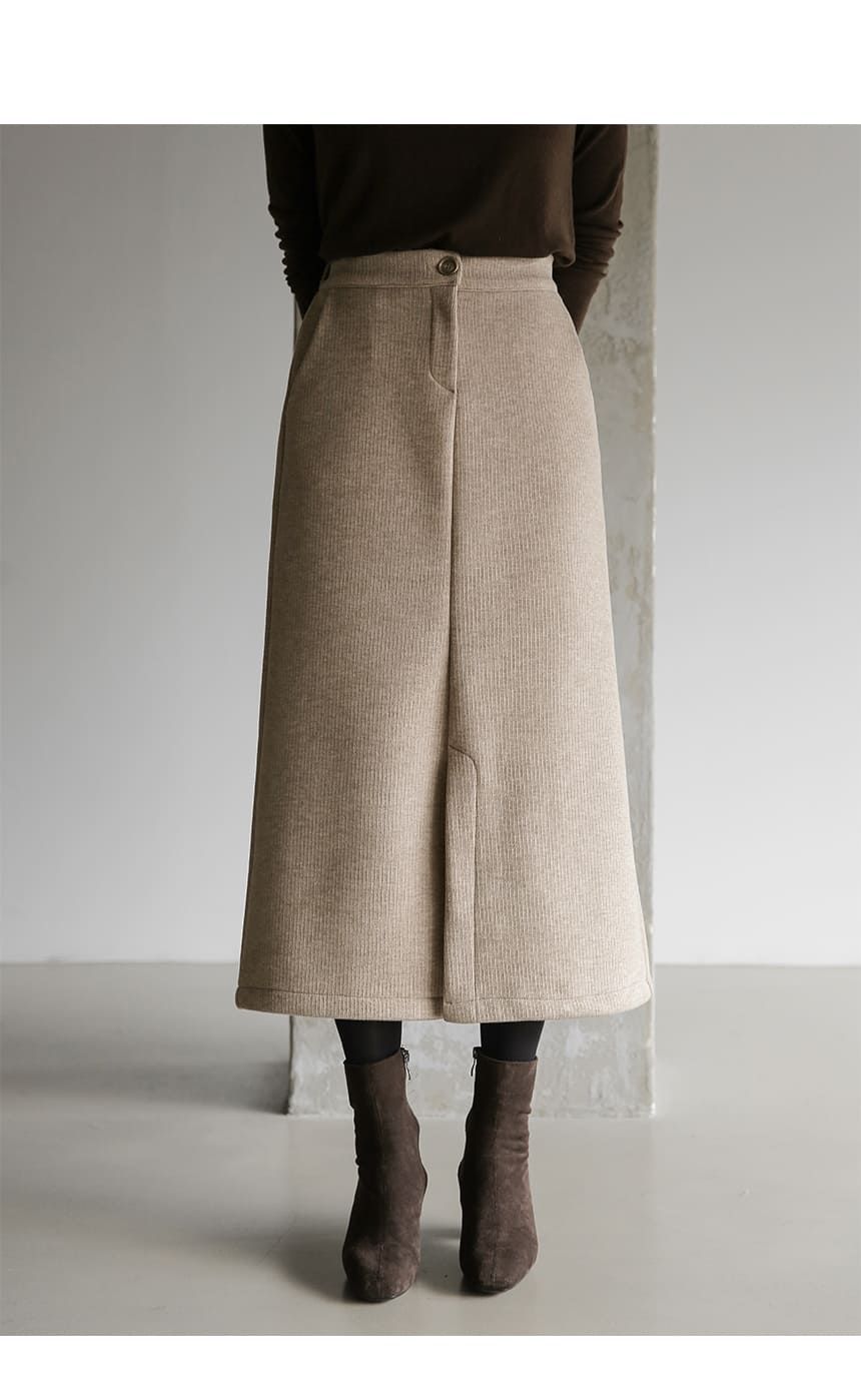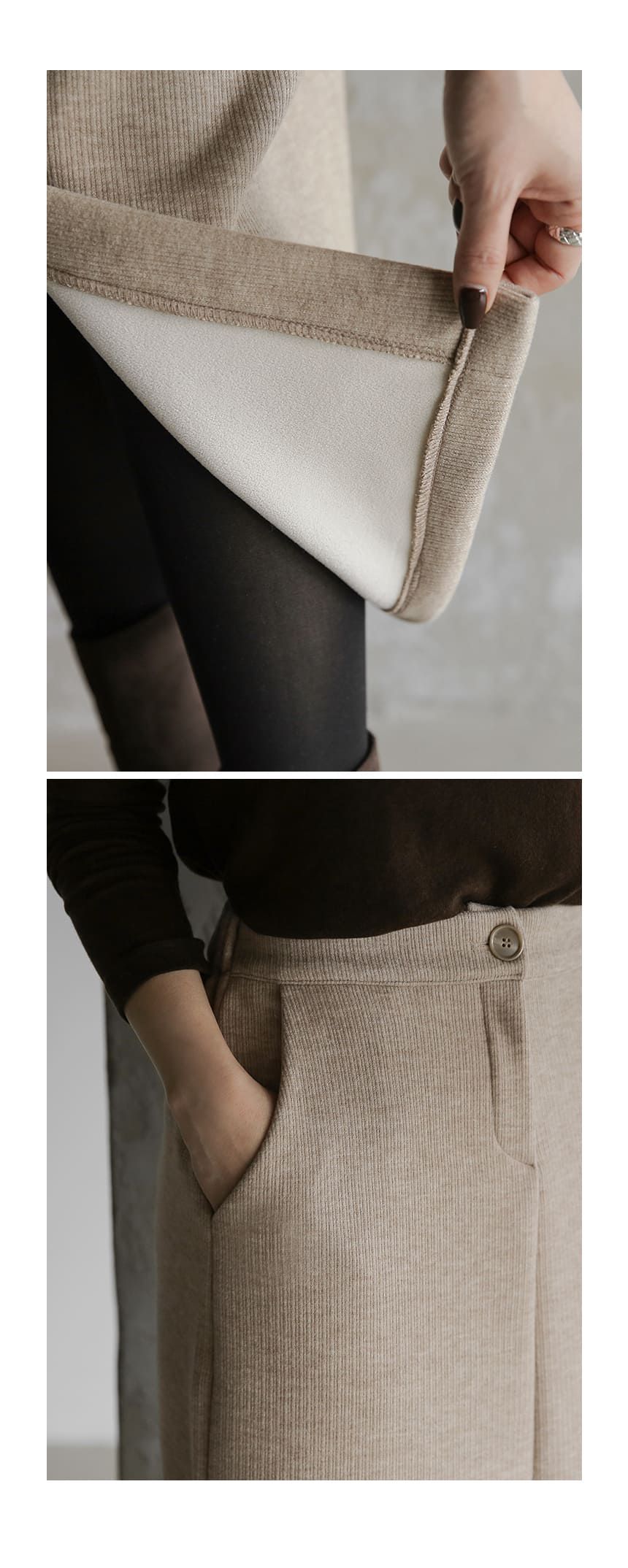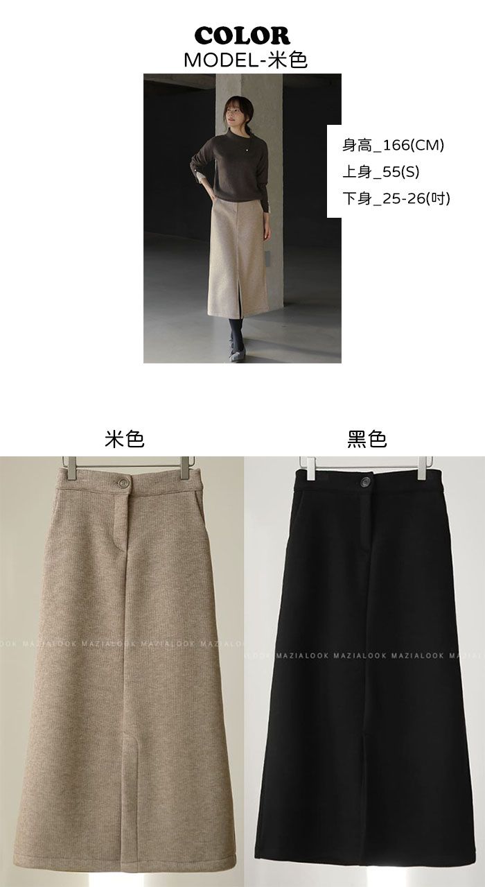 內刷毛長裙/厚磅內水貂毛/前開衩/拉鍊鈕釦褲頭/後腰鬆緊/雙口袋 - 休閒居家婚禮OL上班族簡約百搭素面厚磅刷毛針織裙直筒裙窄裙長裙米色黑色