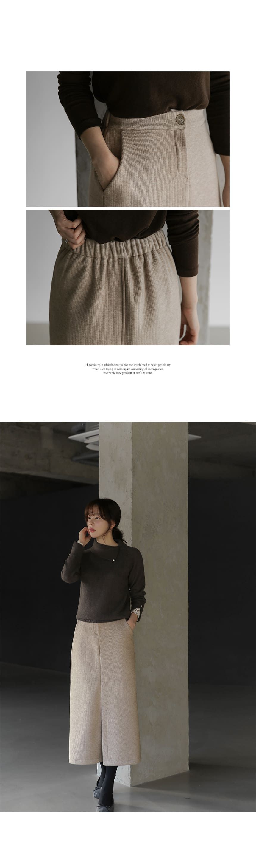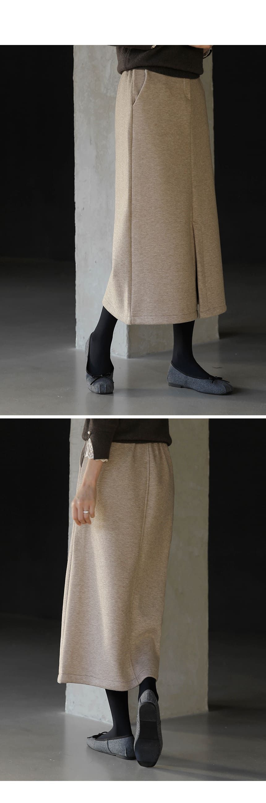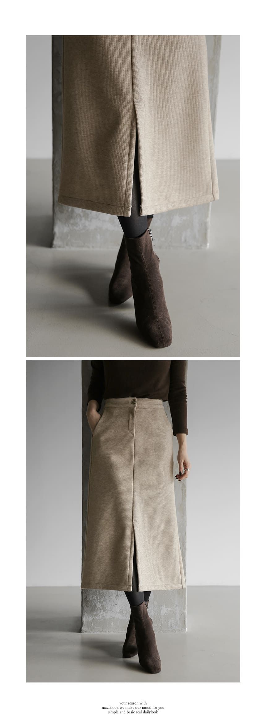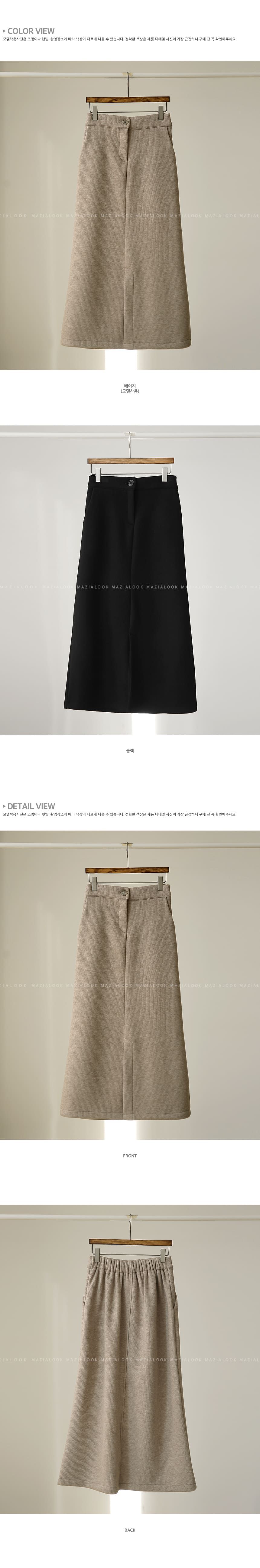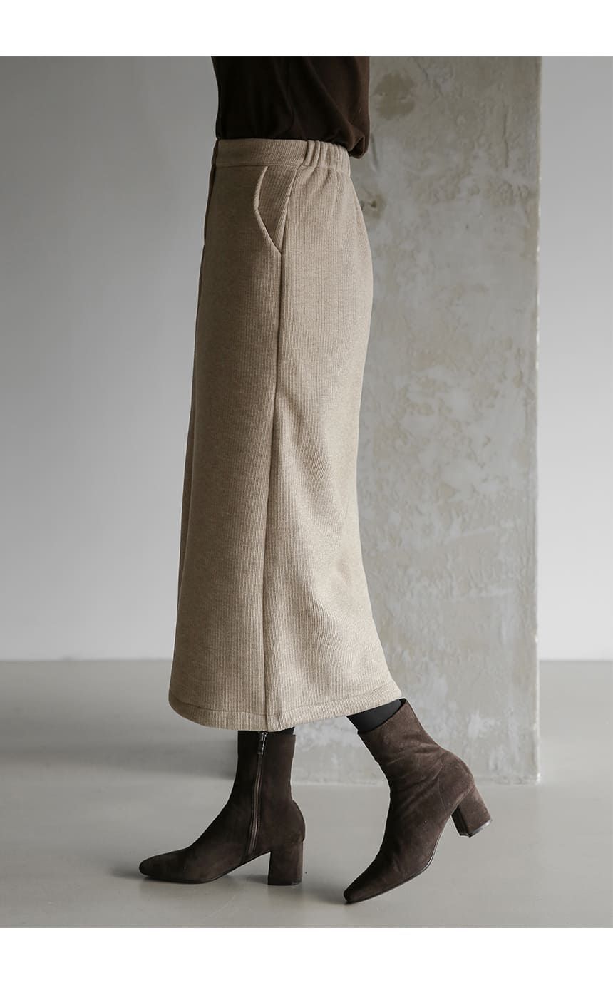 內刷毛長裙/厚磅內水貂毛/前開衩/拉鍊鈕釦褲頭/後腰鬆緊/雙口袋 - 休閒居家婚禮OL上班族簡約百搭素面厚磅刷毛針織裙直筒裙窄裙長裙米色黑色