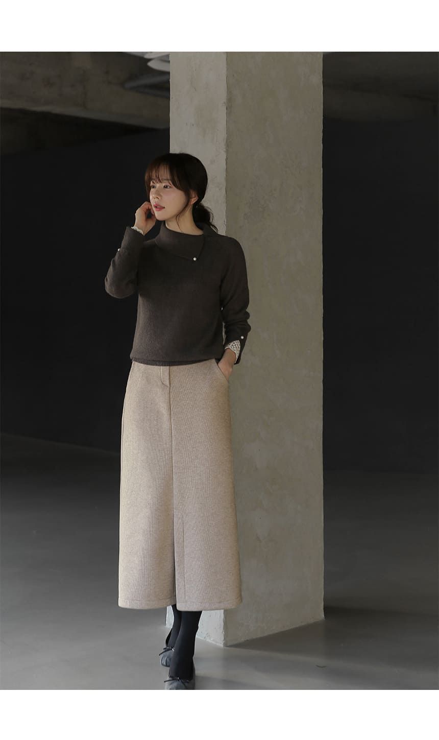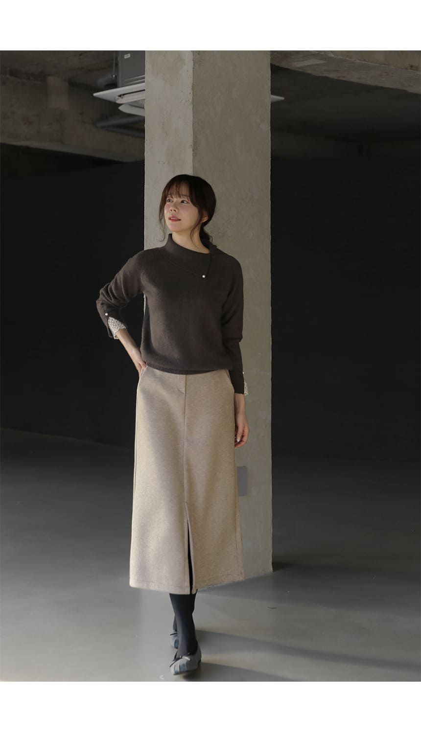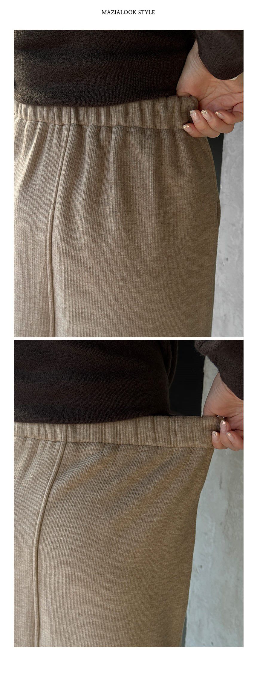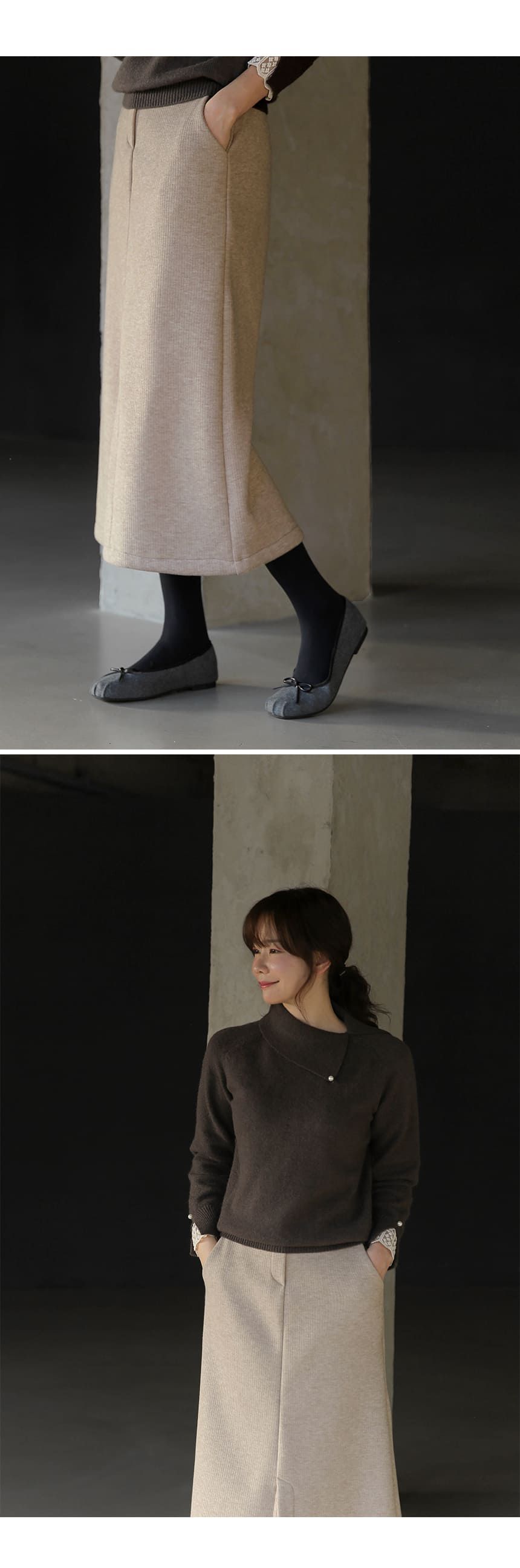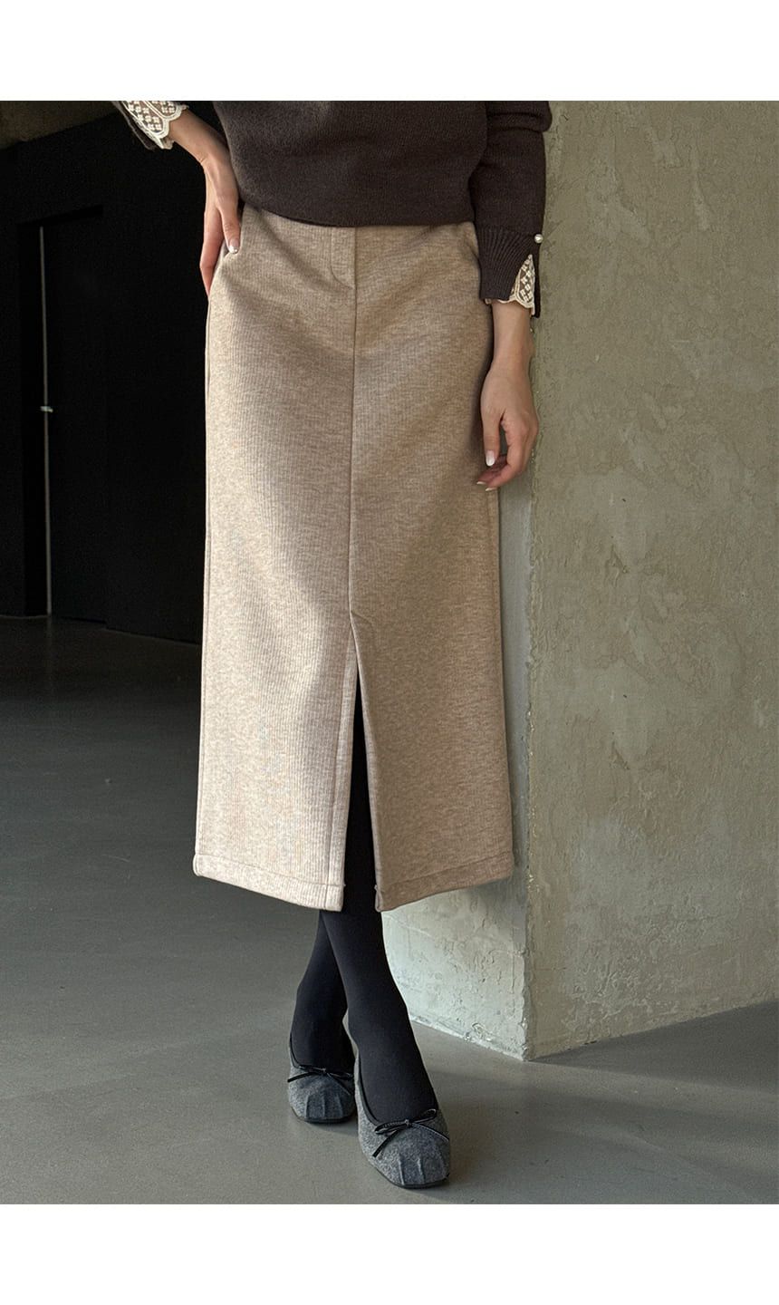 內刷毛長裙/厚磅內水貂毛/前開衩/拉鍊鈕釦褲頭/後腰鬆緊/雙口袋 - 休閒居家婚禮OL上班族簡約百搭素面厚磅刷毛針織裙直筒裙窄裙長裙米色黑色