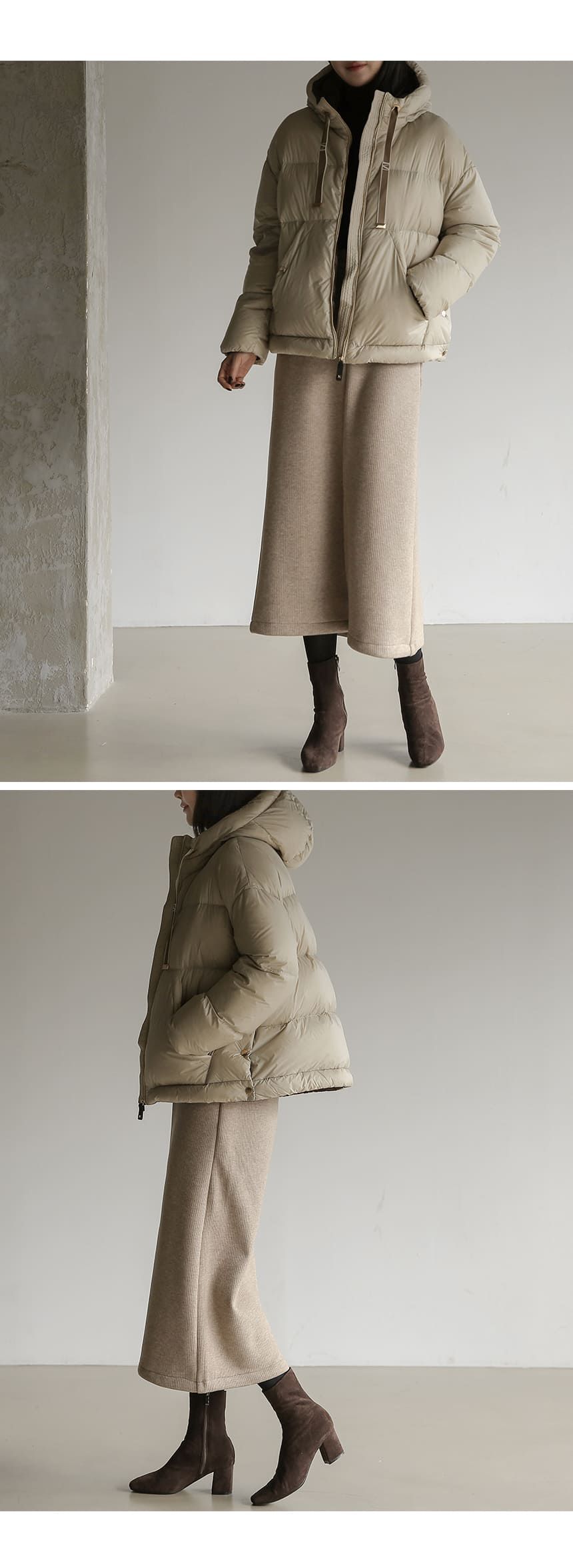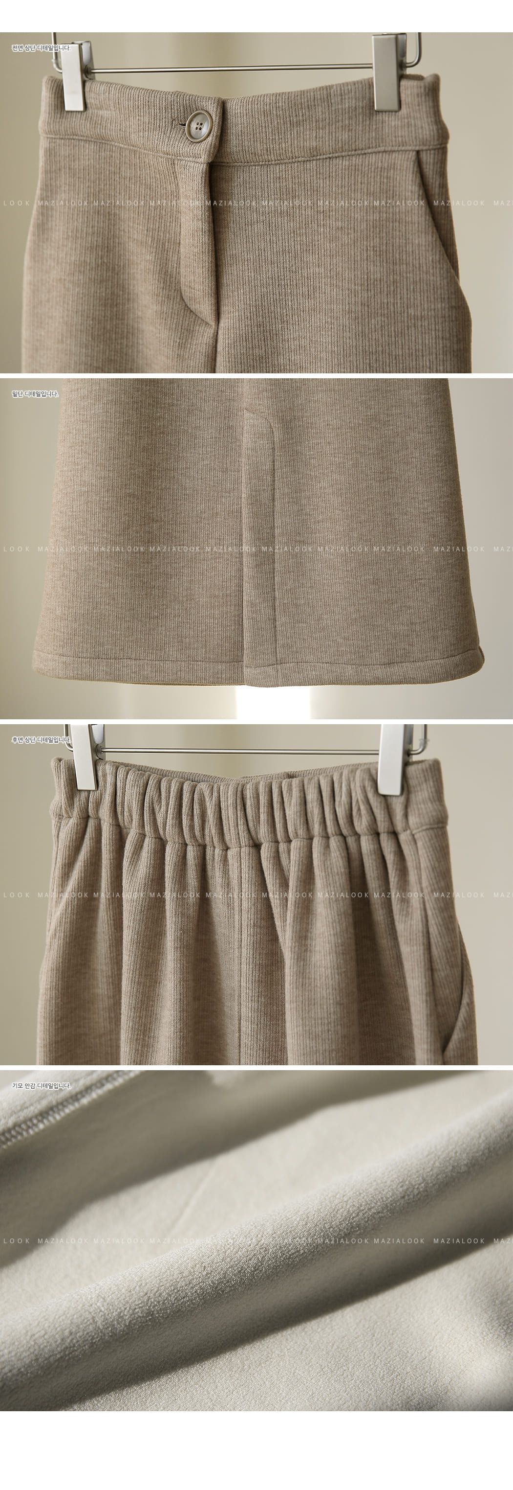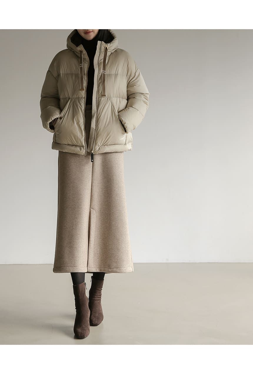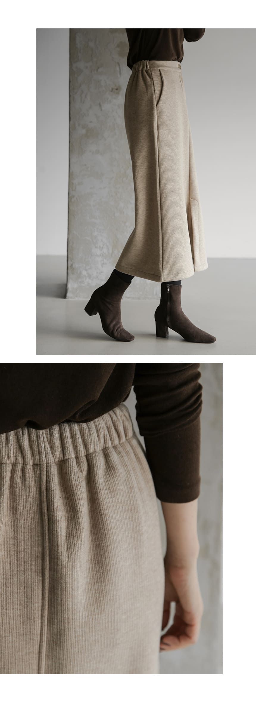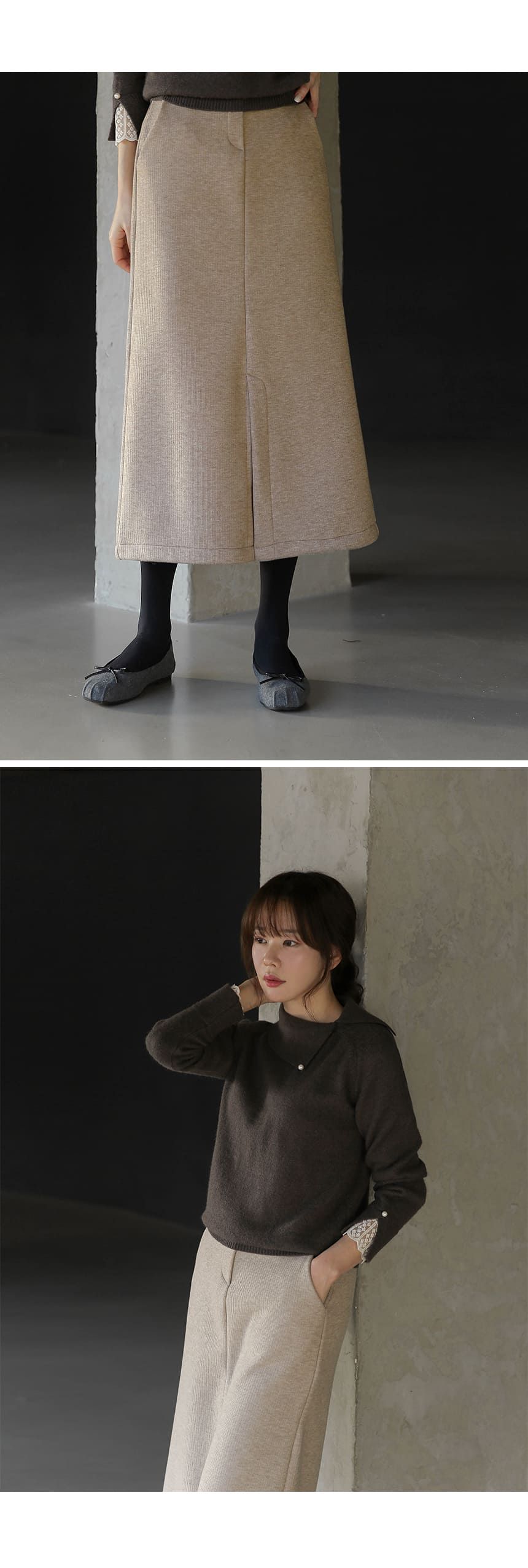 內刷毛長裙/厚磅內水貂毛/前開衩/拉鍊鈕釦褲頭/後腰鬆緊/雙口袋 - 休閒居家婚禮OL上班族簡約百搭素面厚磅刷毛針織裙直筒裙窄裙長裙米色黑色