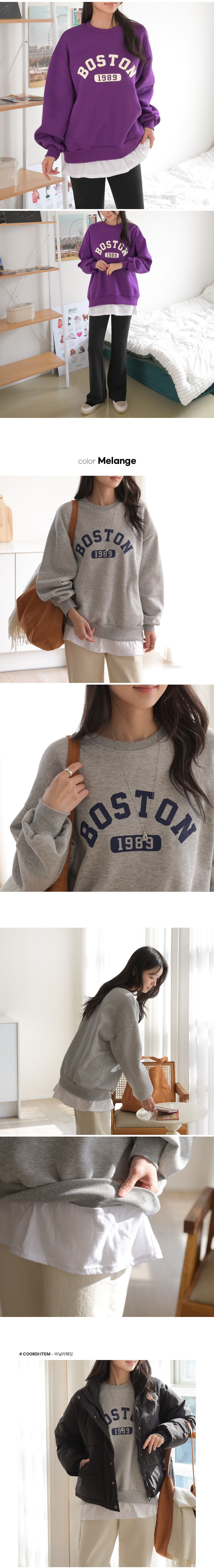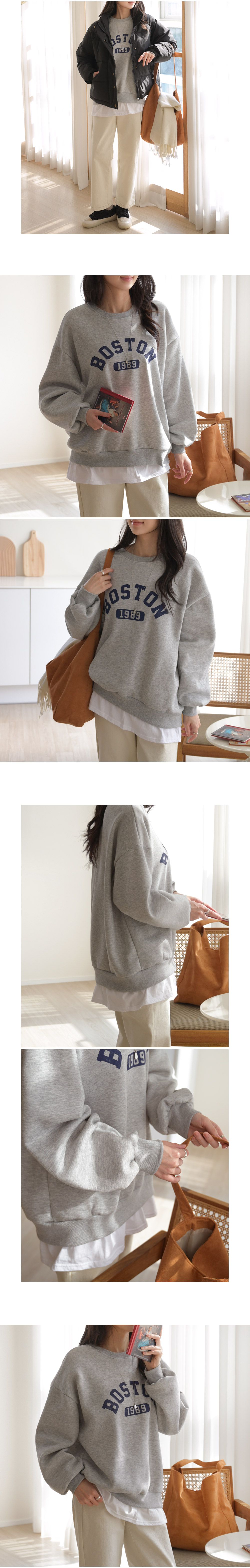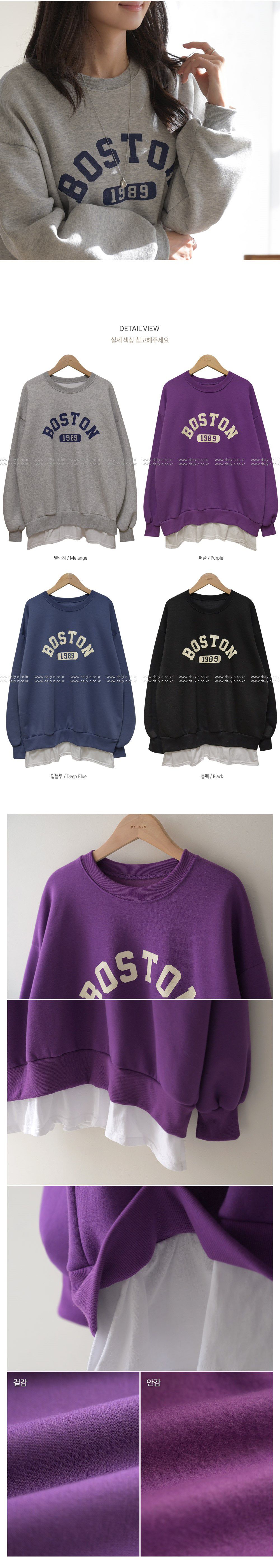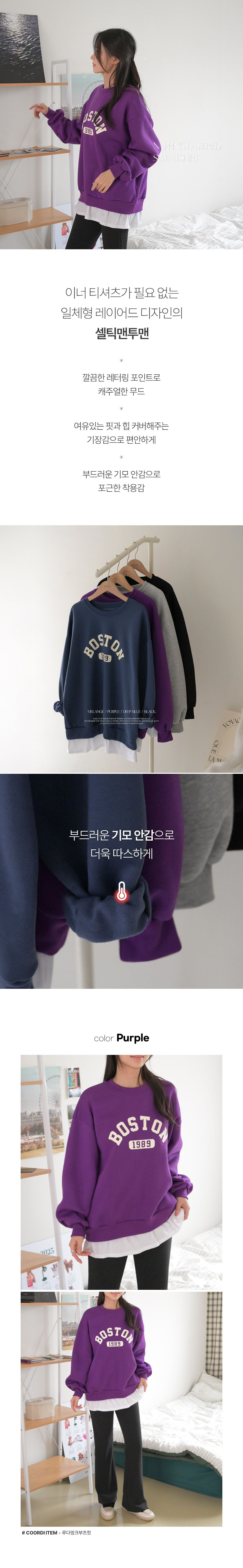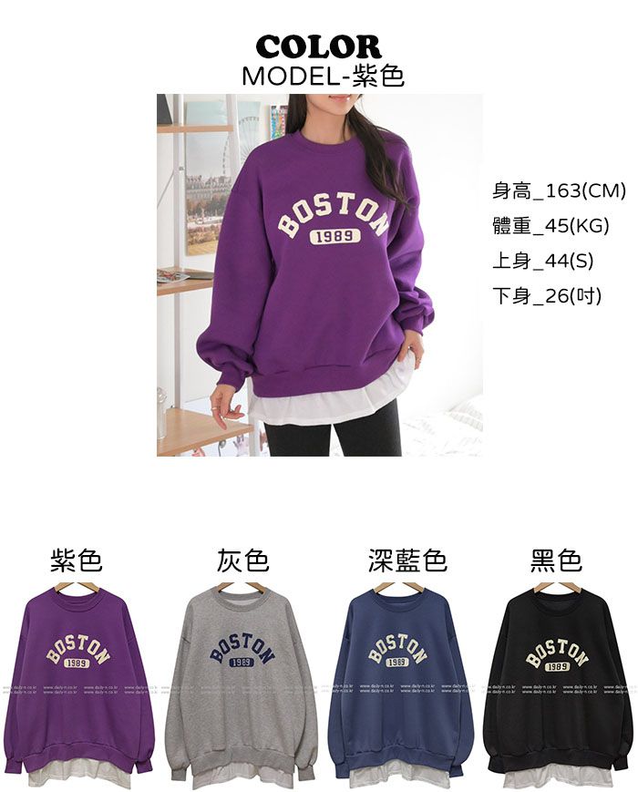 【C55877】韓國DLY 假兩件字母T恤-寬鬆長版內刷毛好氣色長袖上衣★★