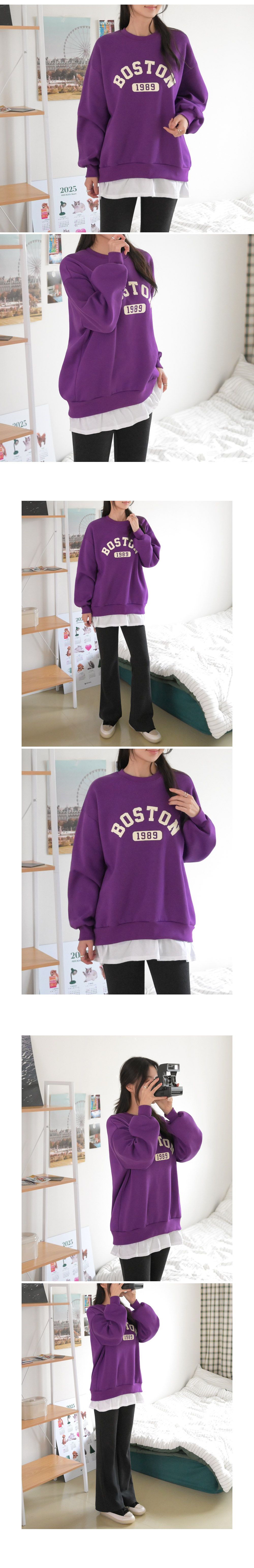 膠印字母/假兩件拼接/寬鬆長版/內刷毛上衣/好氣色/圓領/落肩長袖 - 休閒居家英文字母上衣字母T恤假兩件字母T恤長袖上衣紫色灰色深藍色黑色