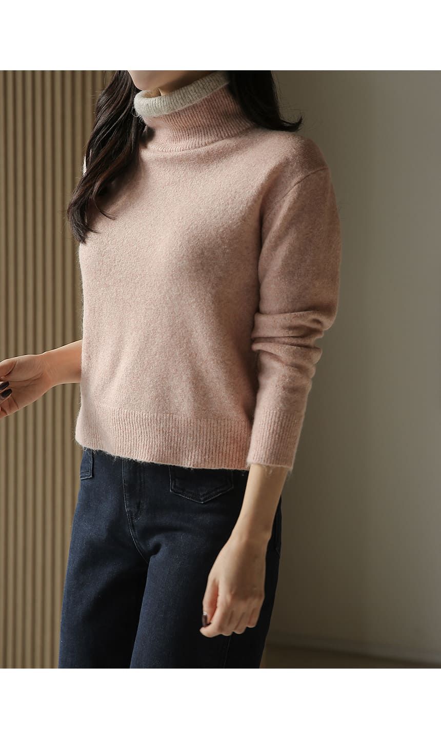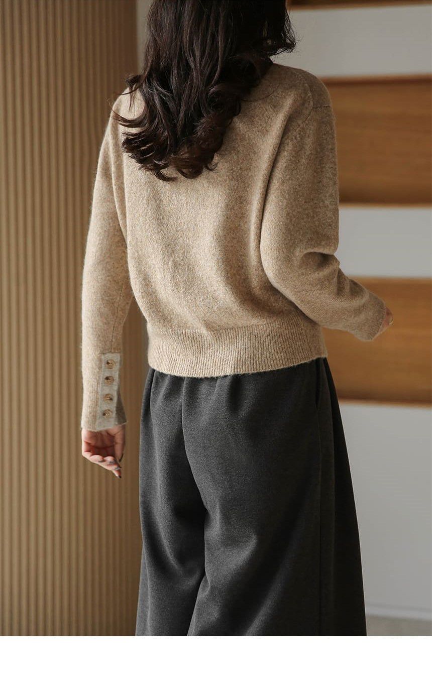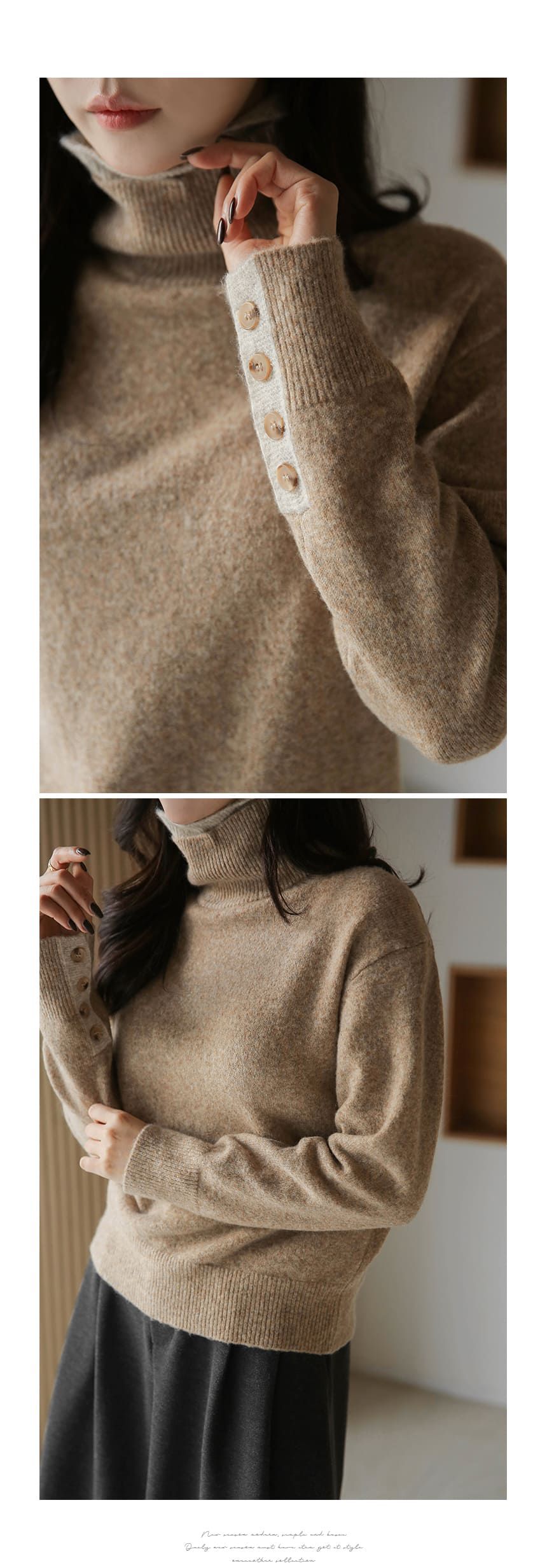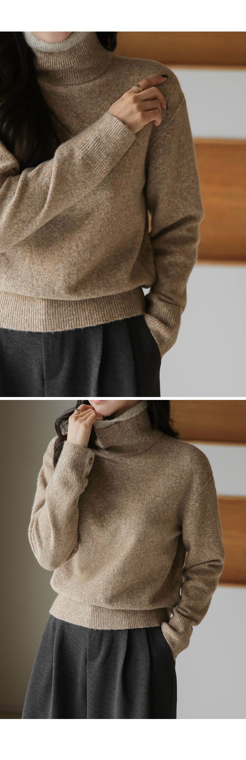 假兩件拼接/袖口排釦(可開)/立領.高領/雙層領 - 休閒居家簡約百搭素面雙層立領針織衫針織上衣長袖上衣摩卡色粉色棕色灰色