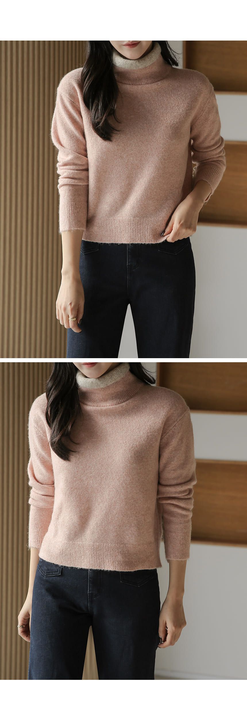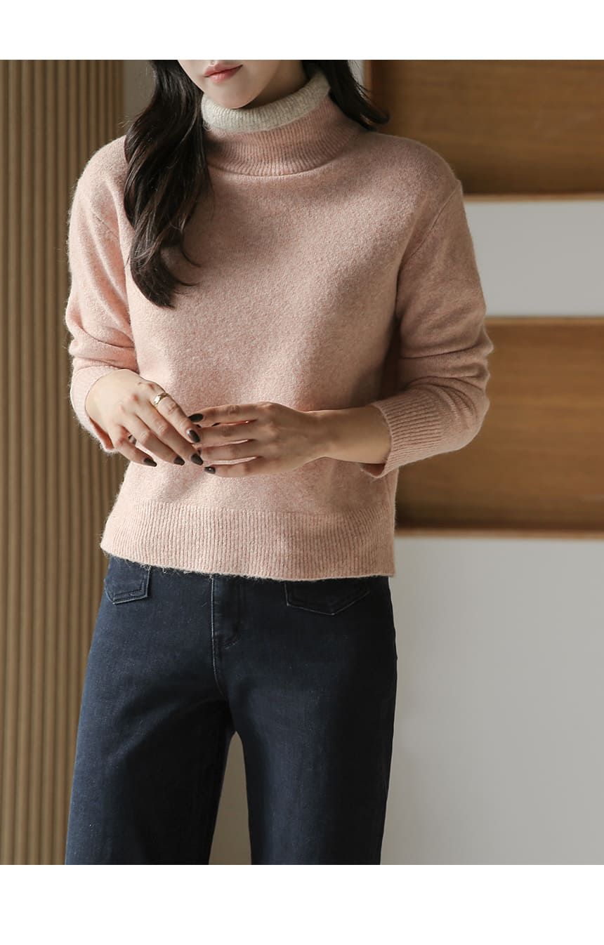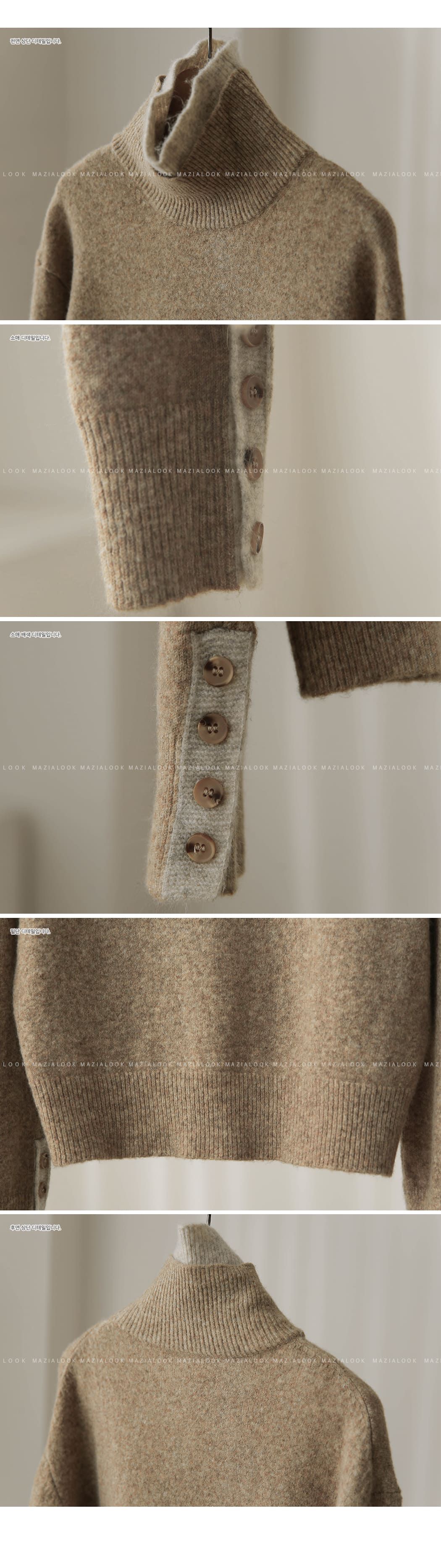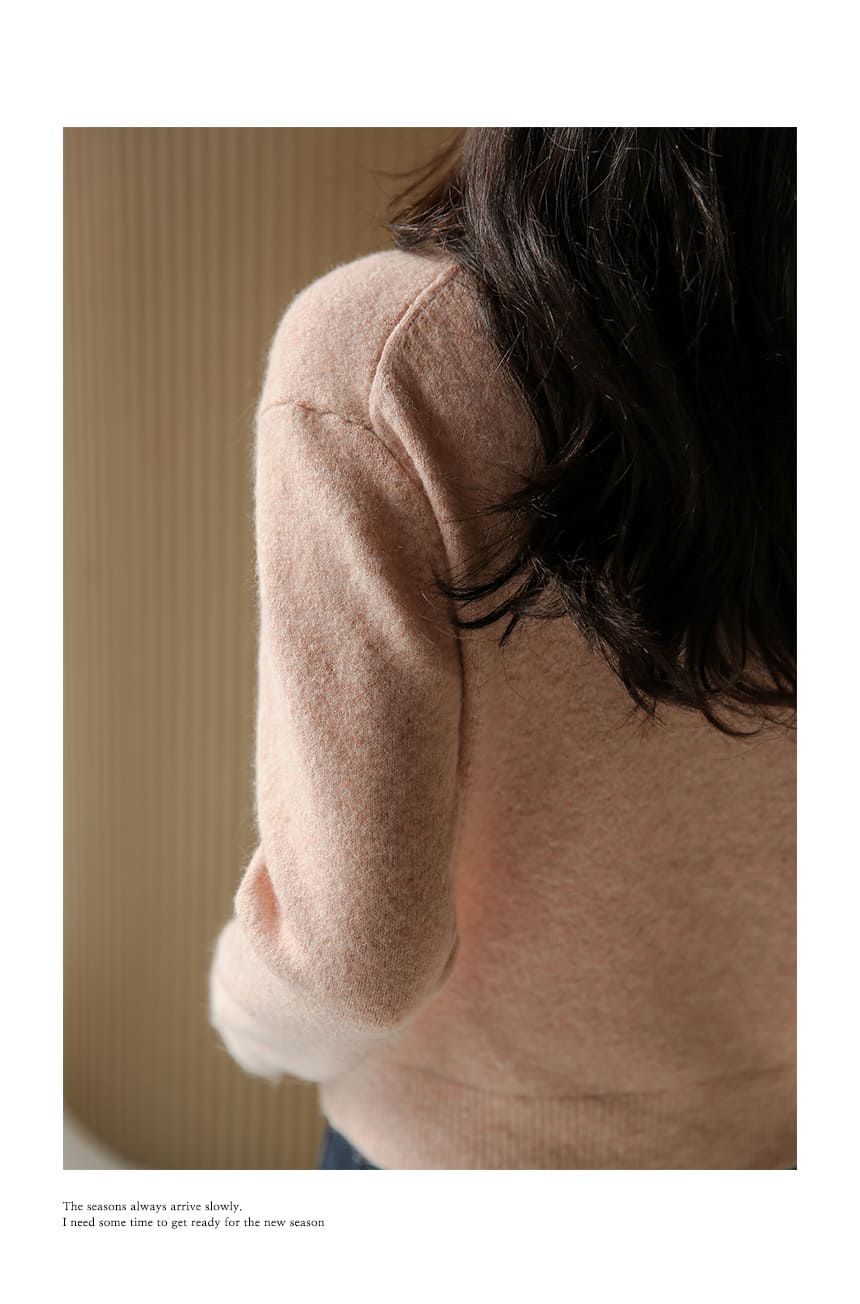 假兩件拼接/袖口排釦(可開)/立領.高領/雙層領 - 休閒居家簡約百搭素面雙層立領針織衫針織上衣長袖上衣摩卡色粉色棕色灰色