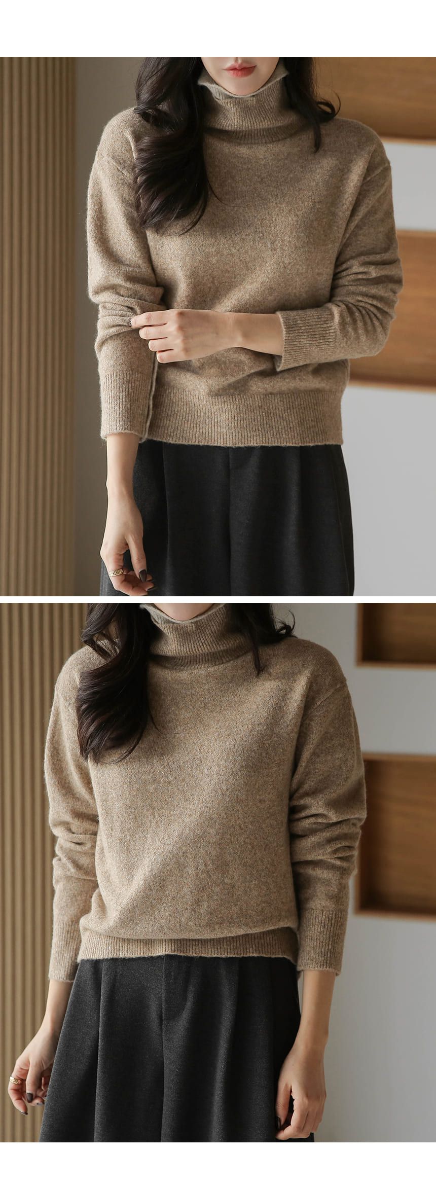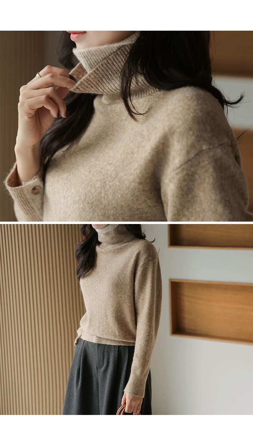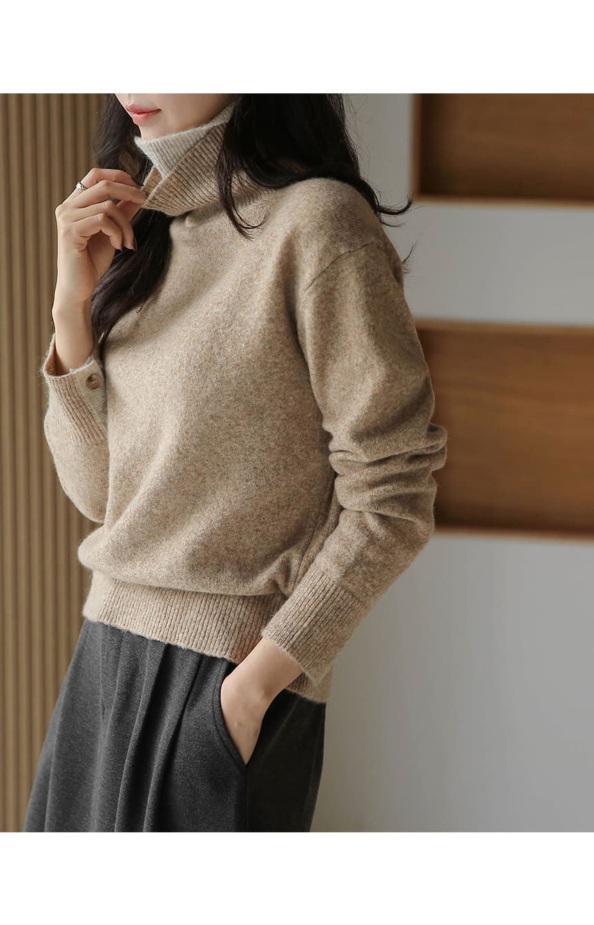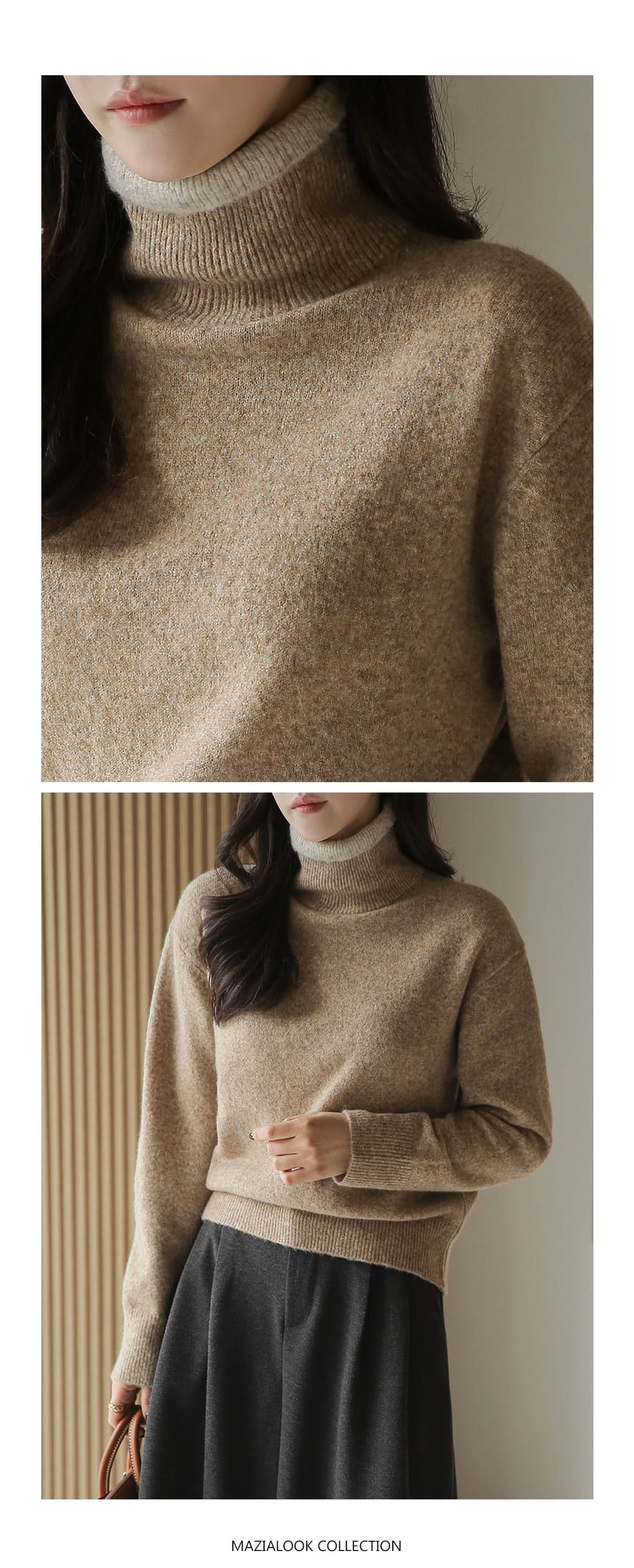 假兩件拼接/袖口排釦(可開)/立領.高領/雙層領 - 休閒居家簡約百搭素面雙層立領針織衫針織上衣長袖上衣摩卡色粉色棕色灰色