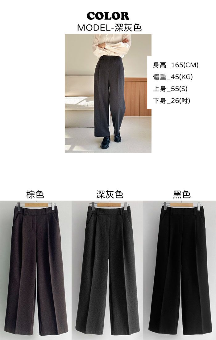 兩種尺寸/抓褶腰/厚磅內磨毛/後腰鬆緊/直筒褲/雙口袋 - 休閒居家OL上班族婚禮簡約百搭素面內磨毛西裝褲內刷毛長褲西裝長褲多尺寸ML棕色深灰色黑色