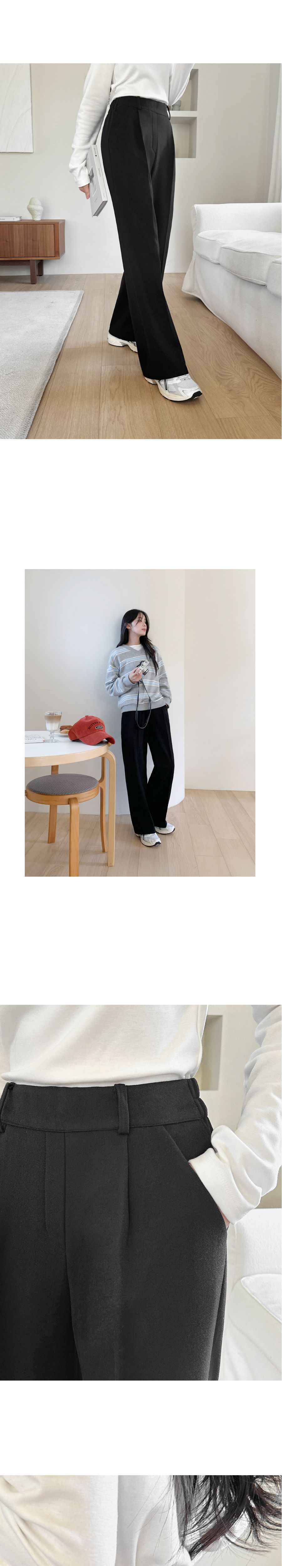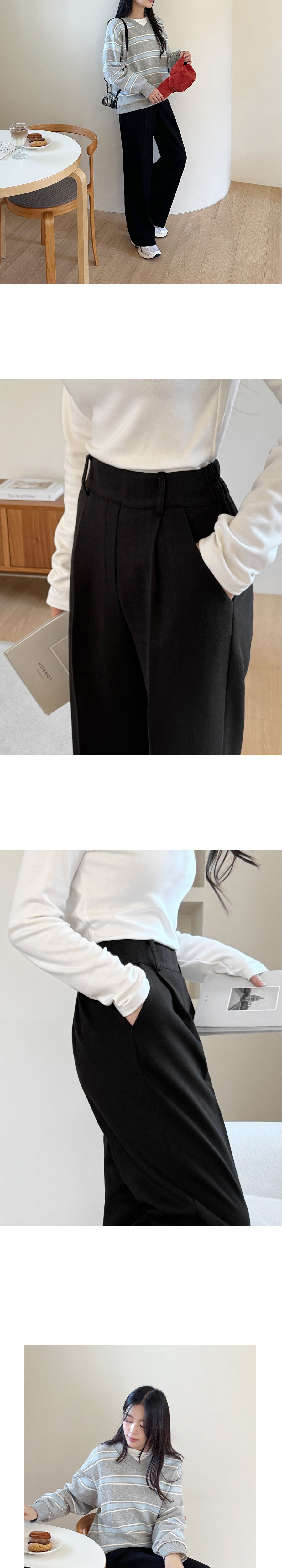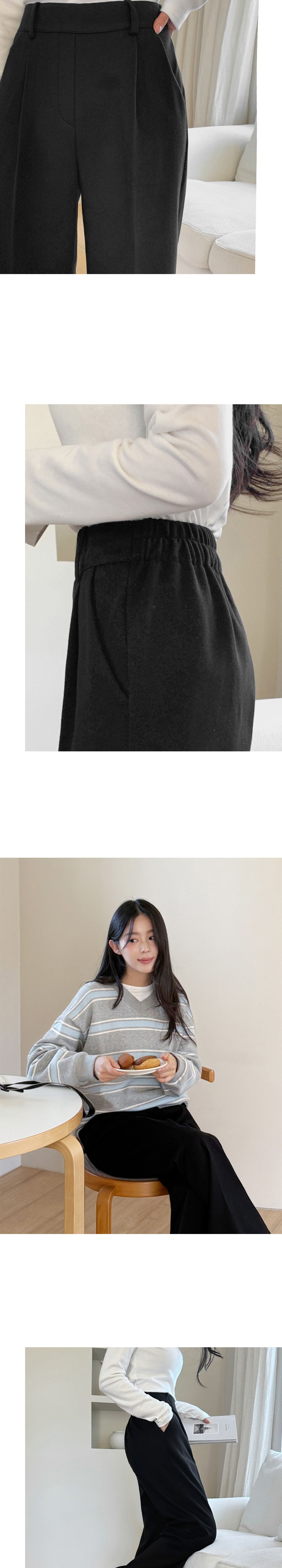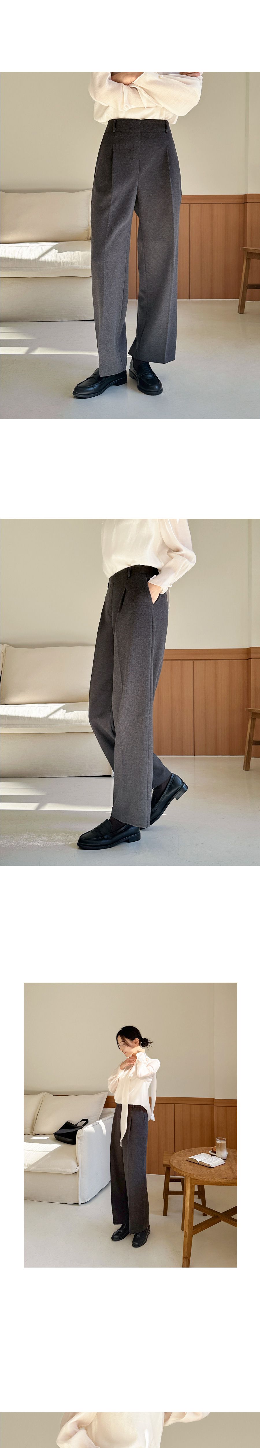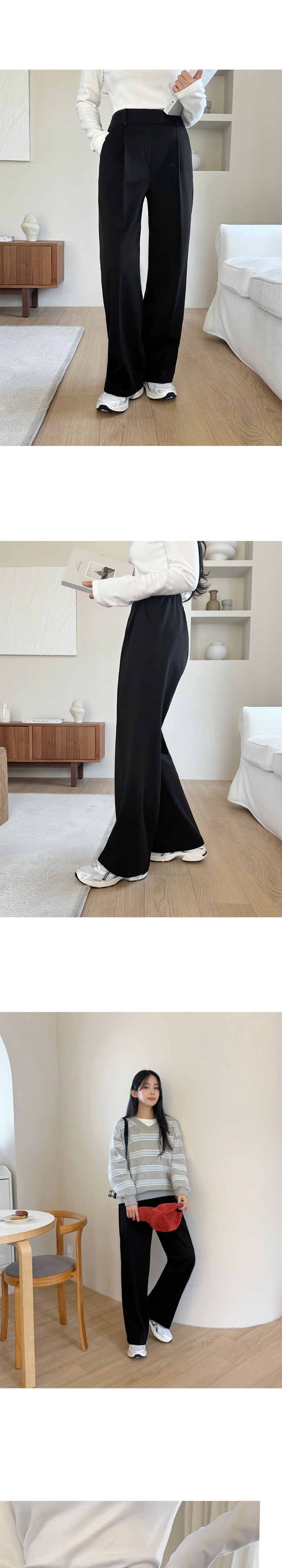 【C55884】韓國PUR 內磨毛西裝褲-素面厚磅後腰鬆緊直筒OL抓褶長褲★★