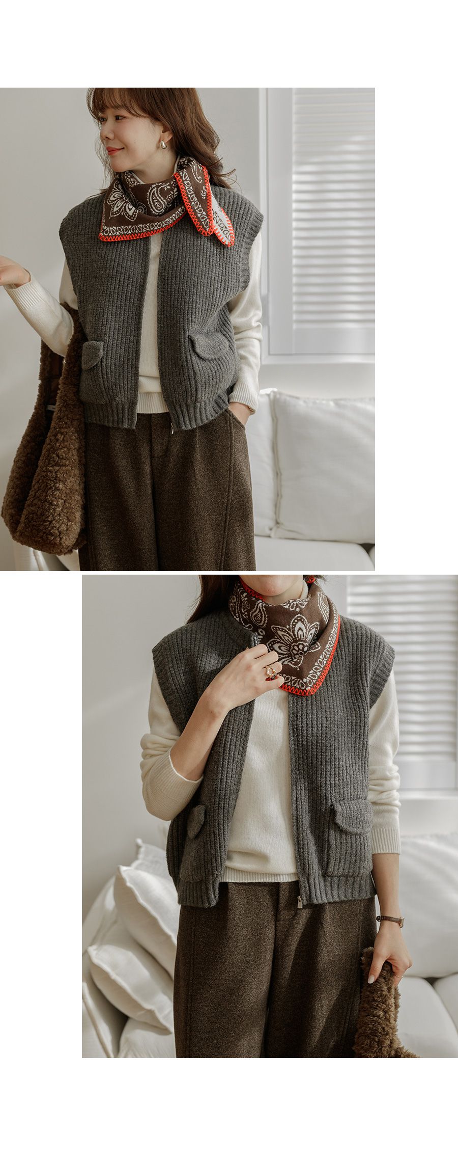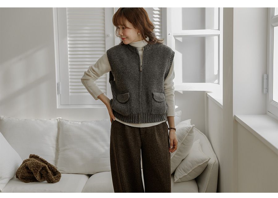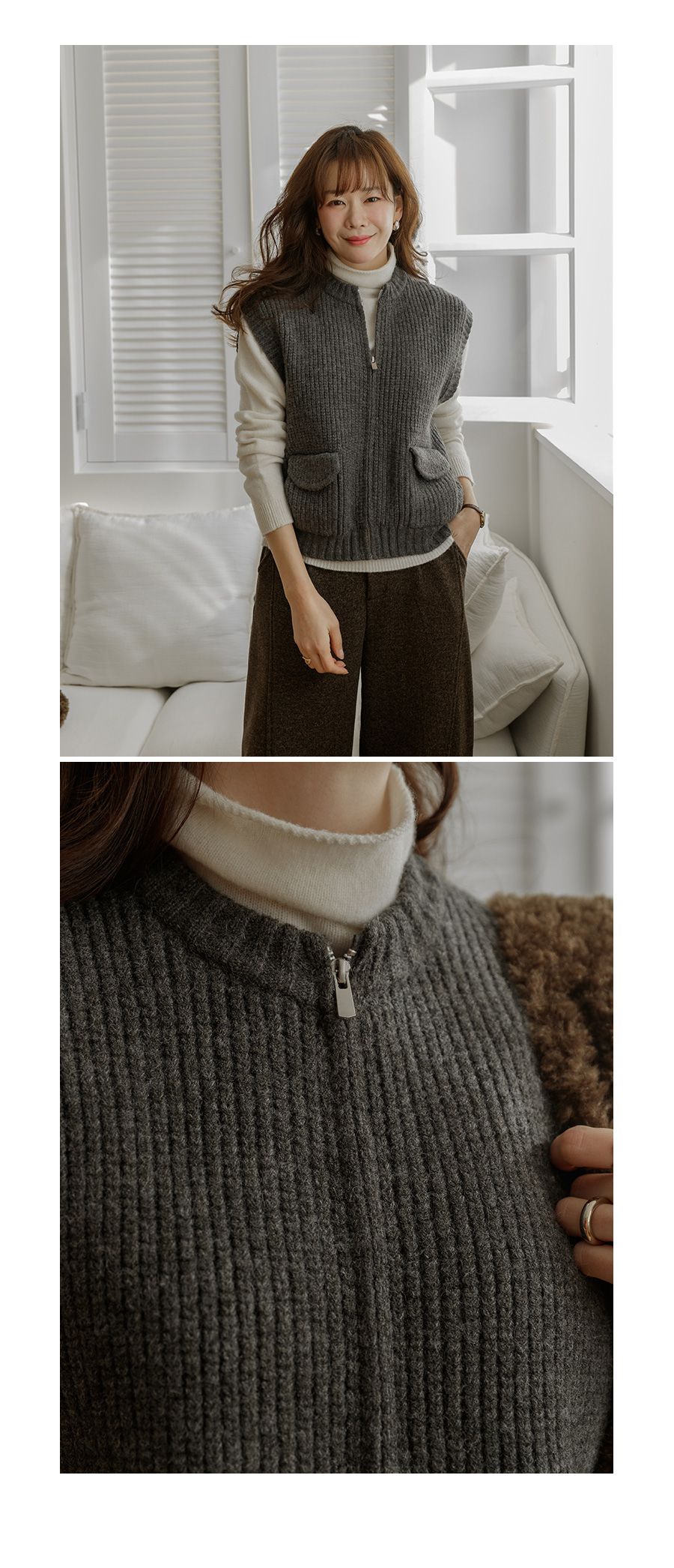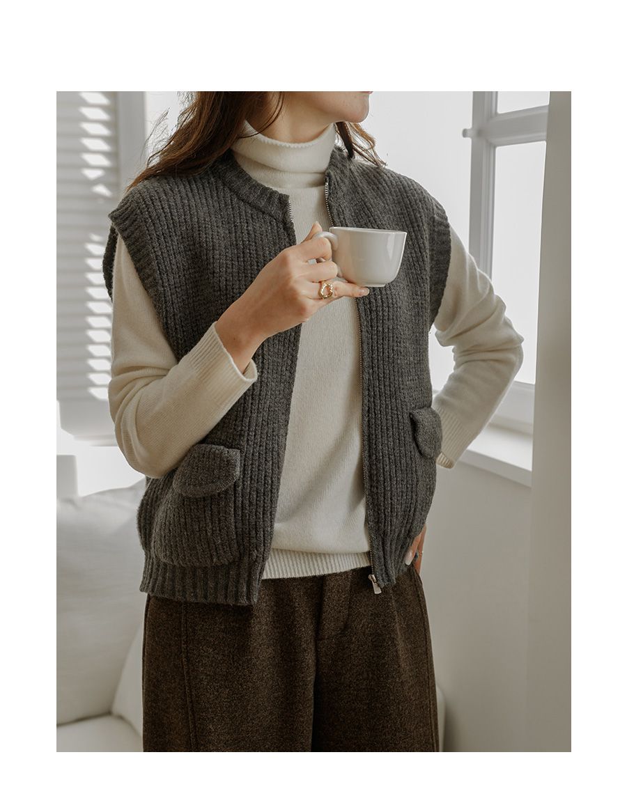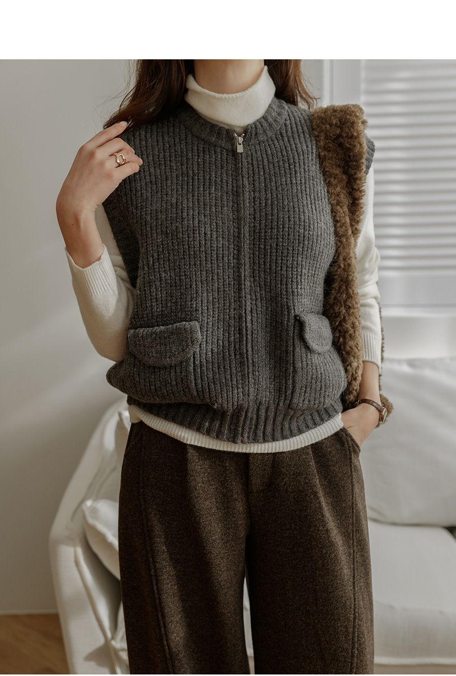 【C55889】韓國JAM 立體口袋針織衫-雙口袋圓領素面無袖拉鍊背心外套★★