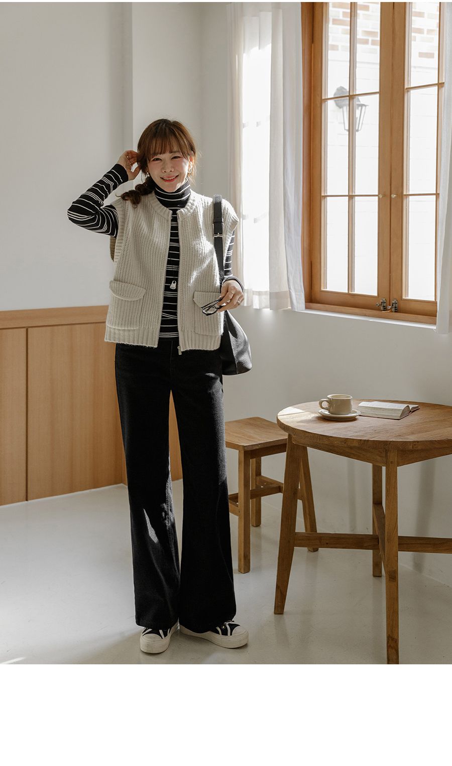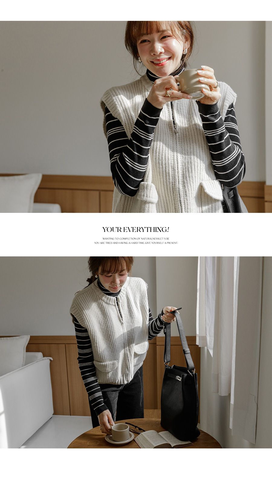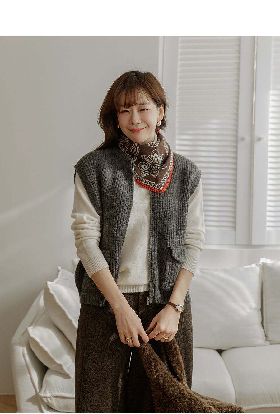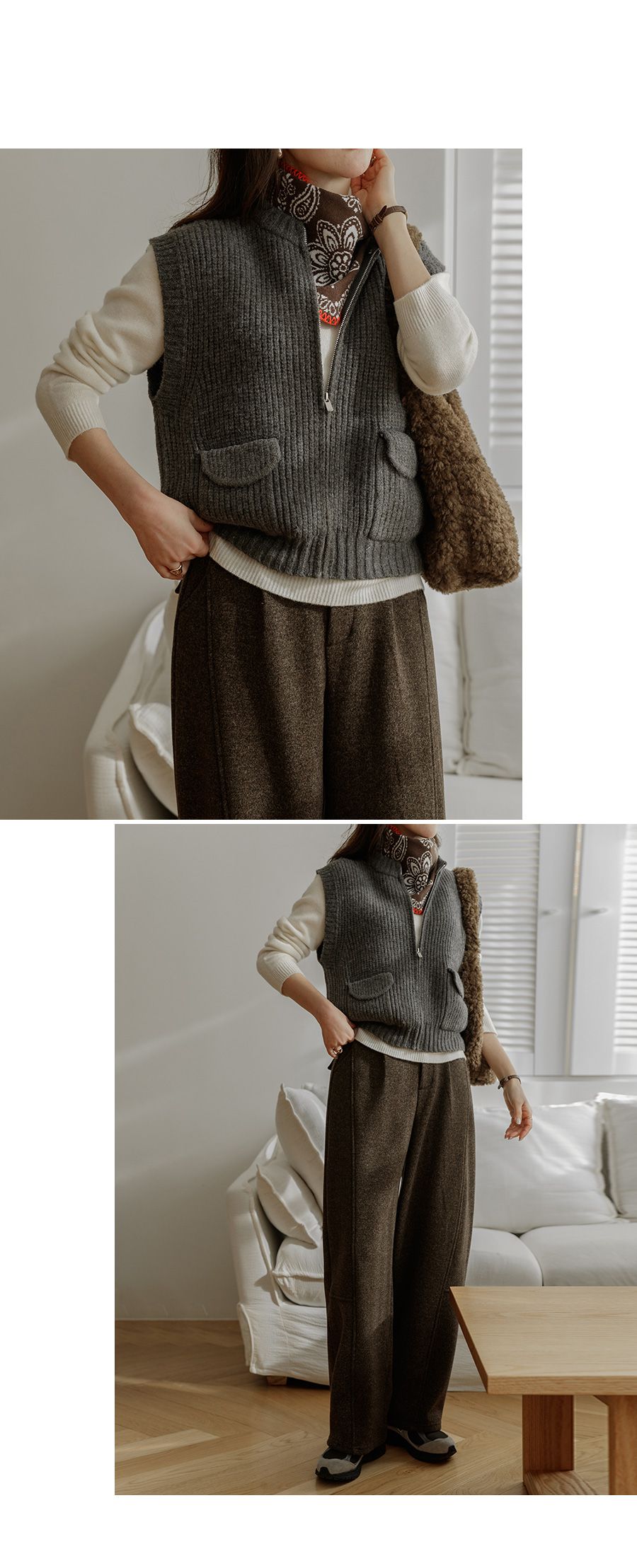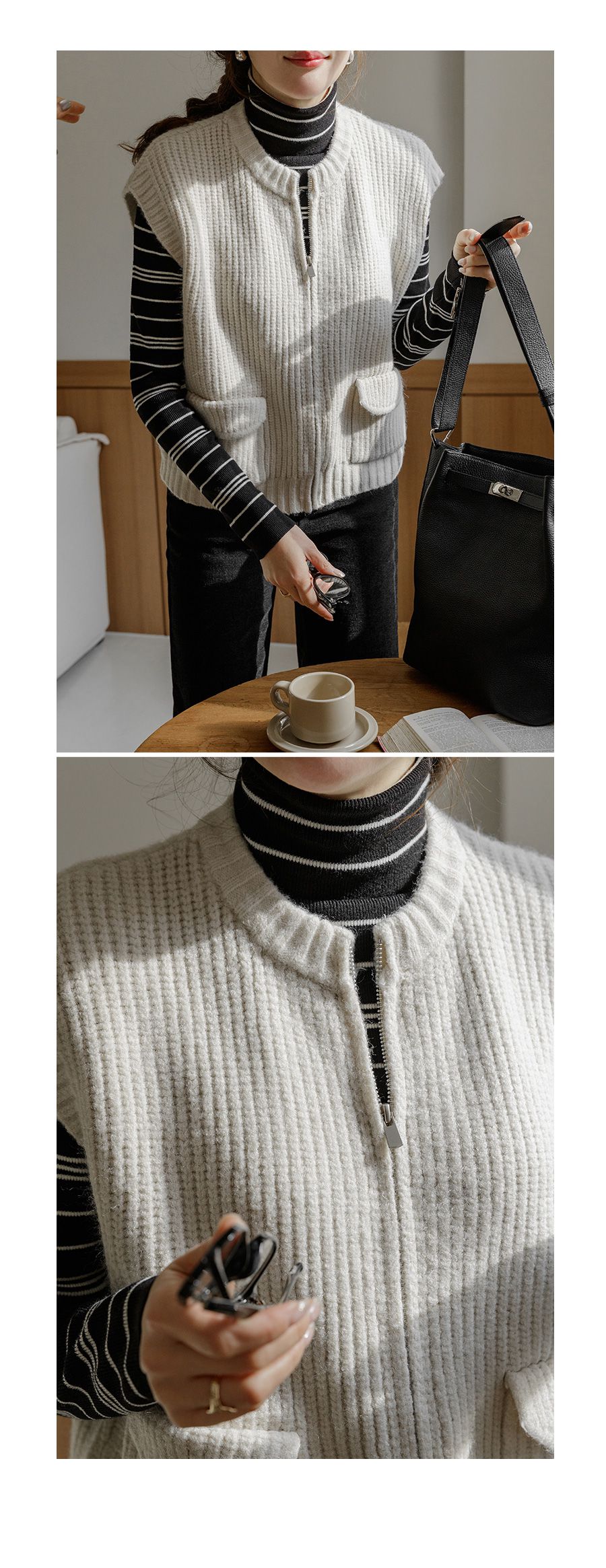 【C55889】韓國JAM 立體口袋針織衫-雙口袋圓領素面無袖拉鍊背心外套★★