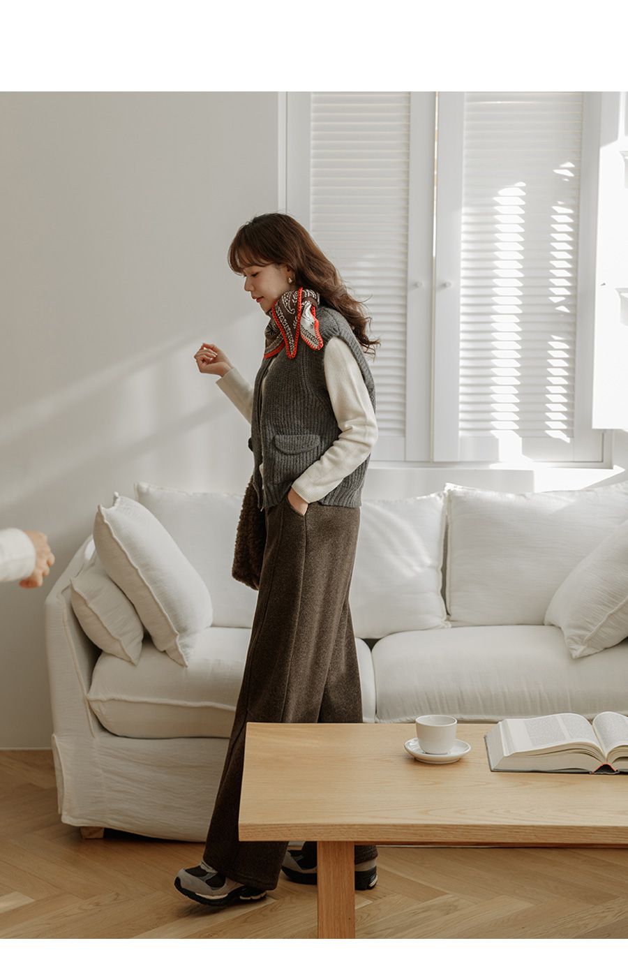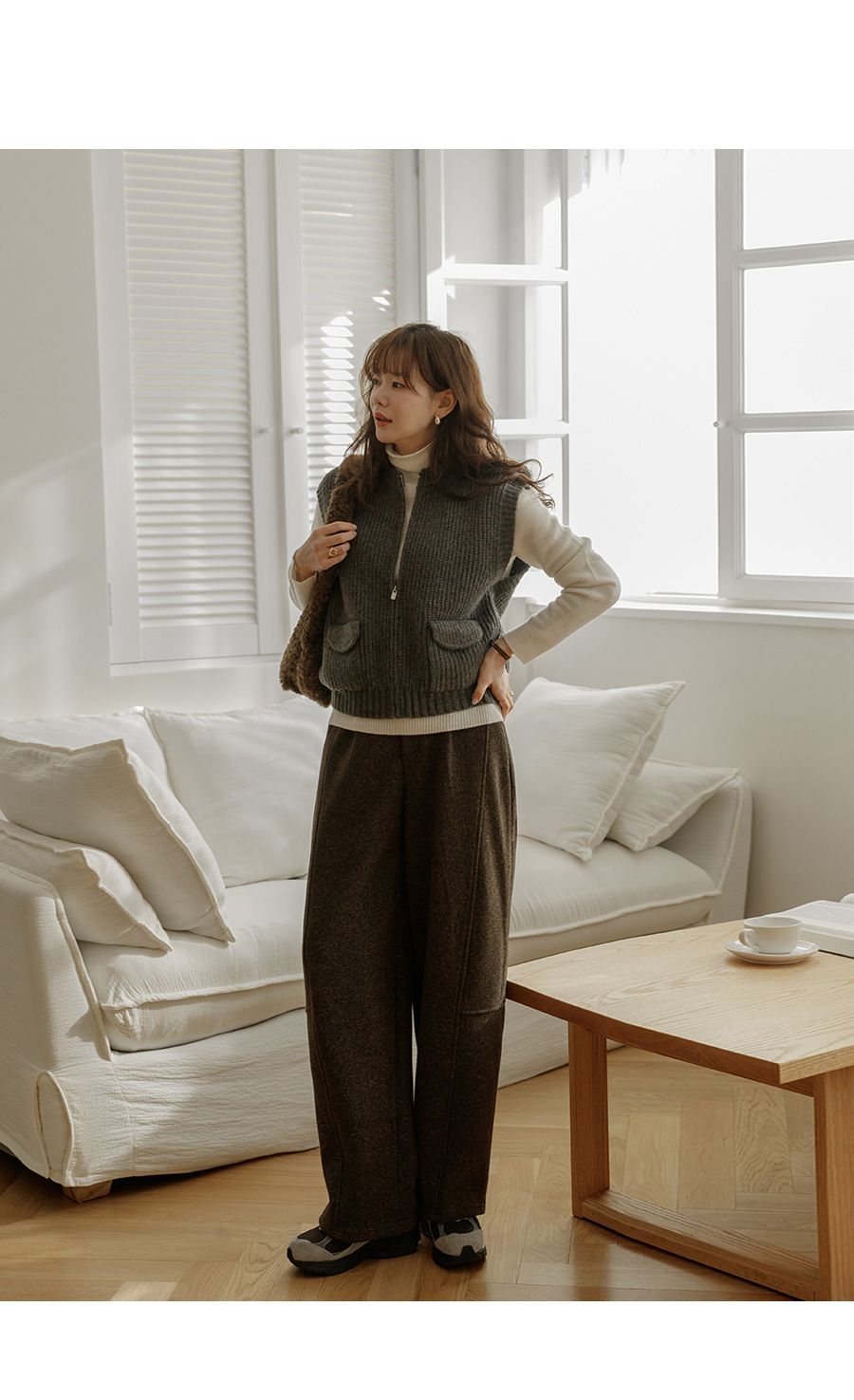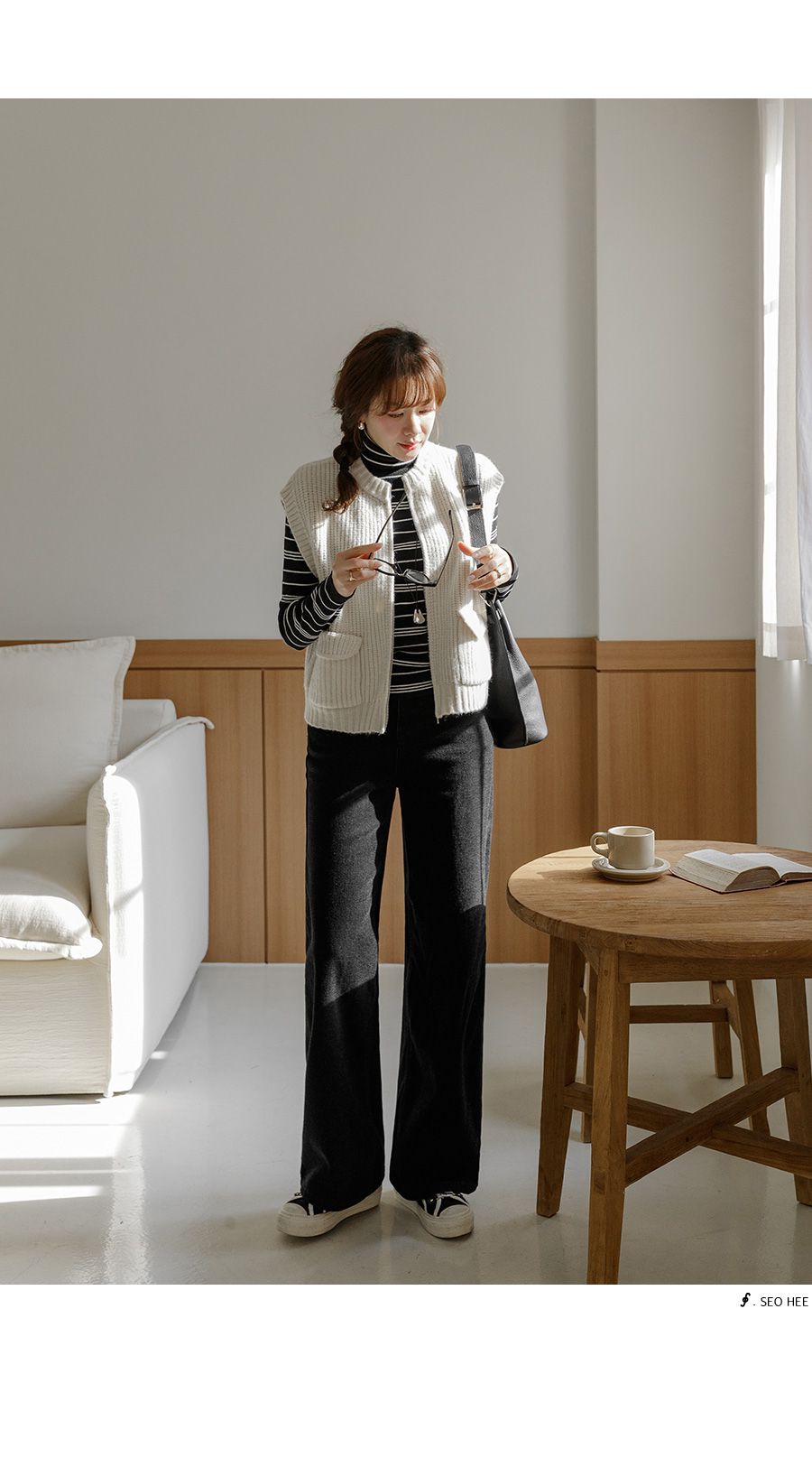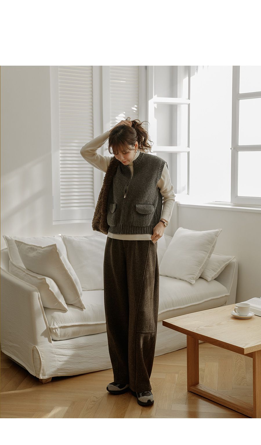 【C55889】韓國JAM 立體口袋針織衫-雙口袋圓領素面無袖拉鍊背心外套★★