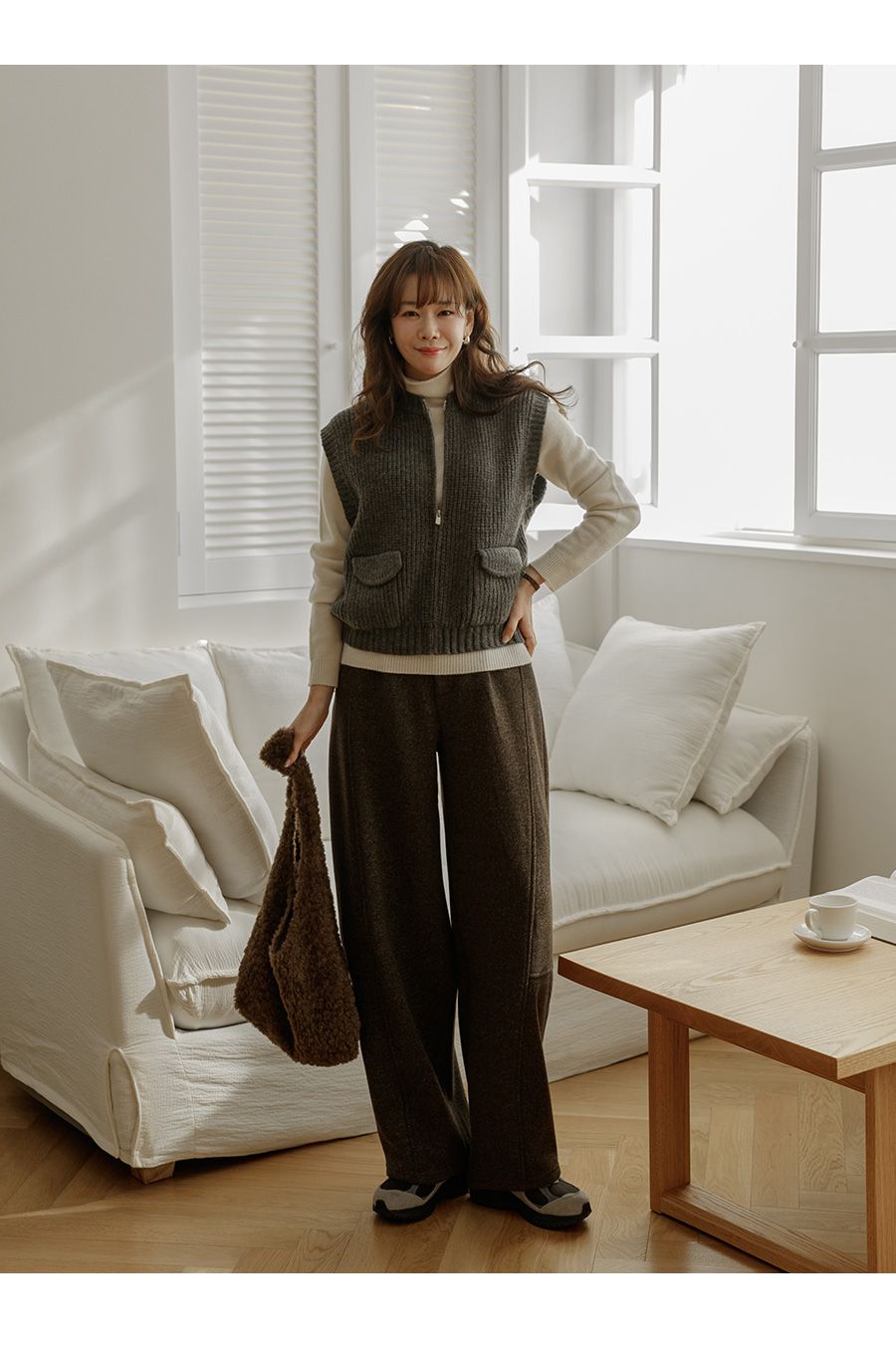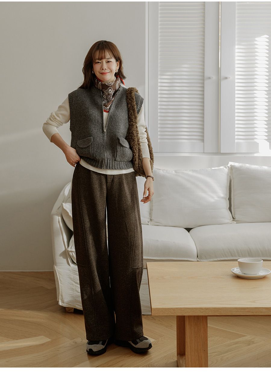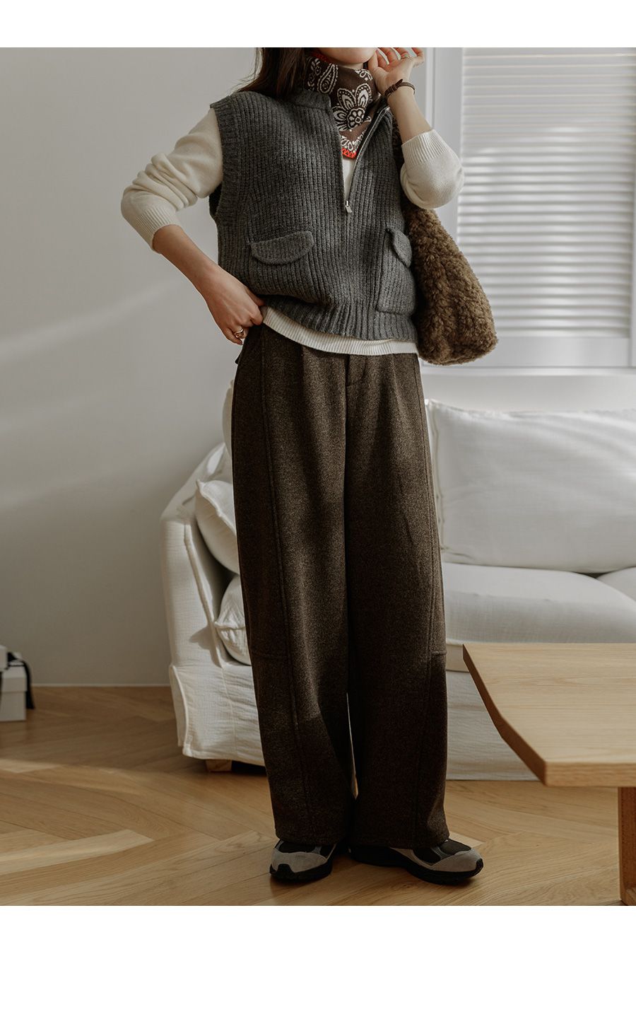 信封口袋/立體雙口袋/圓領/拉鍊外套 - 休閒居家簡約百搭素面立體口袋針織衫針織外套背心外套奶油色酒紅色深灰色黑色