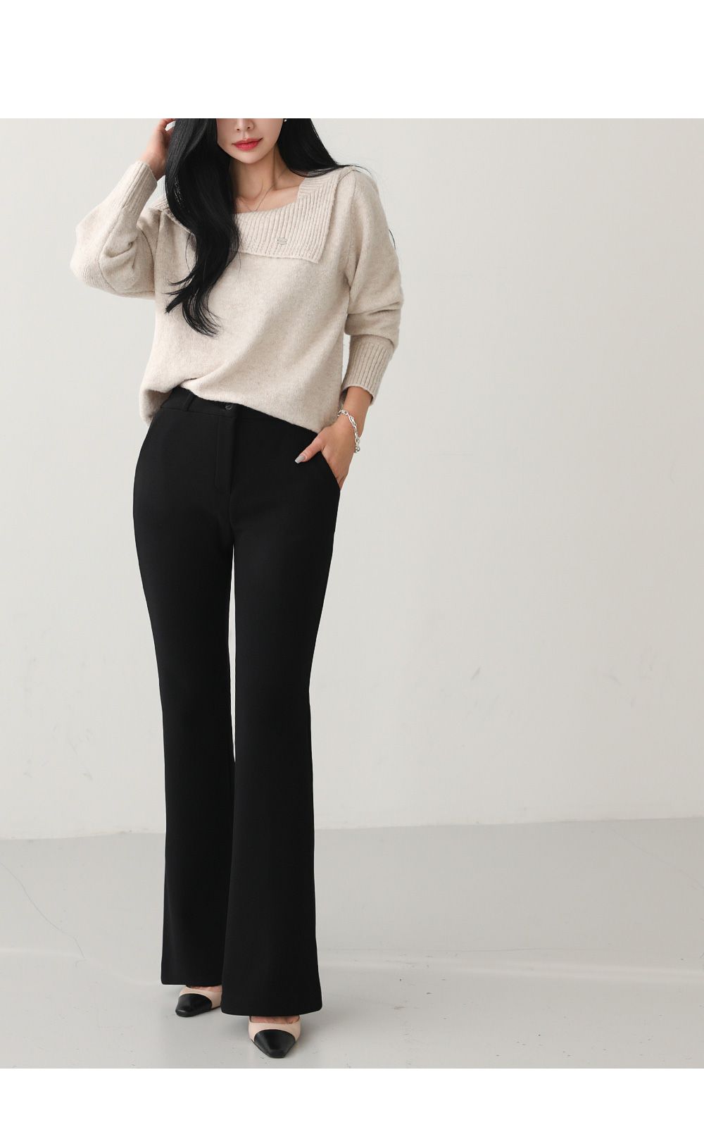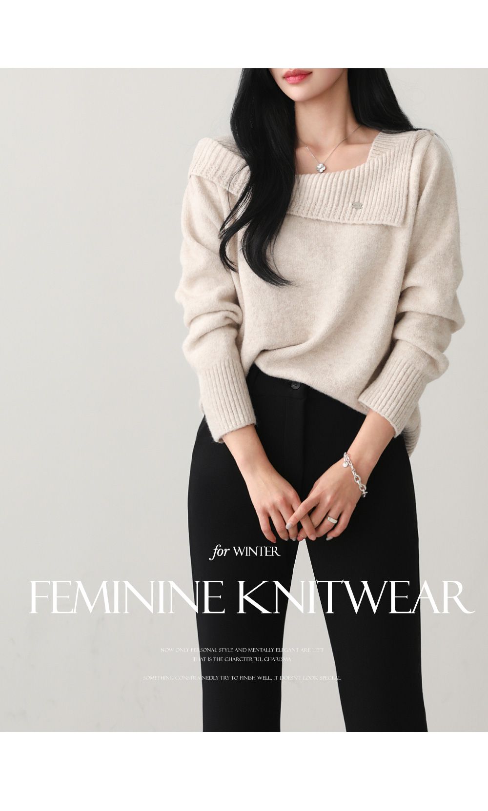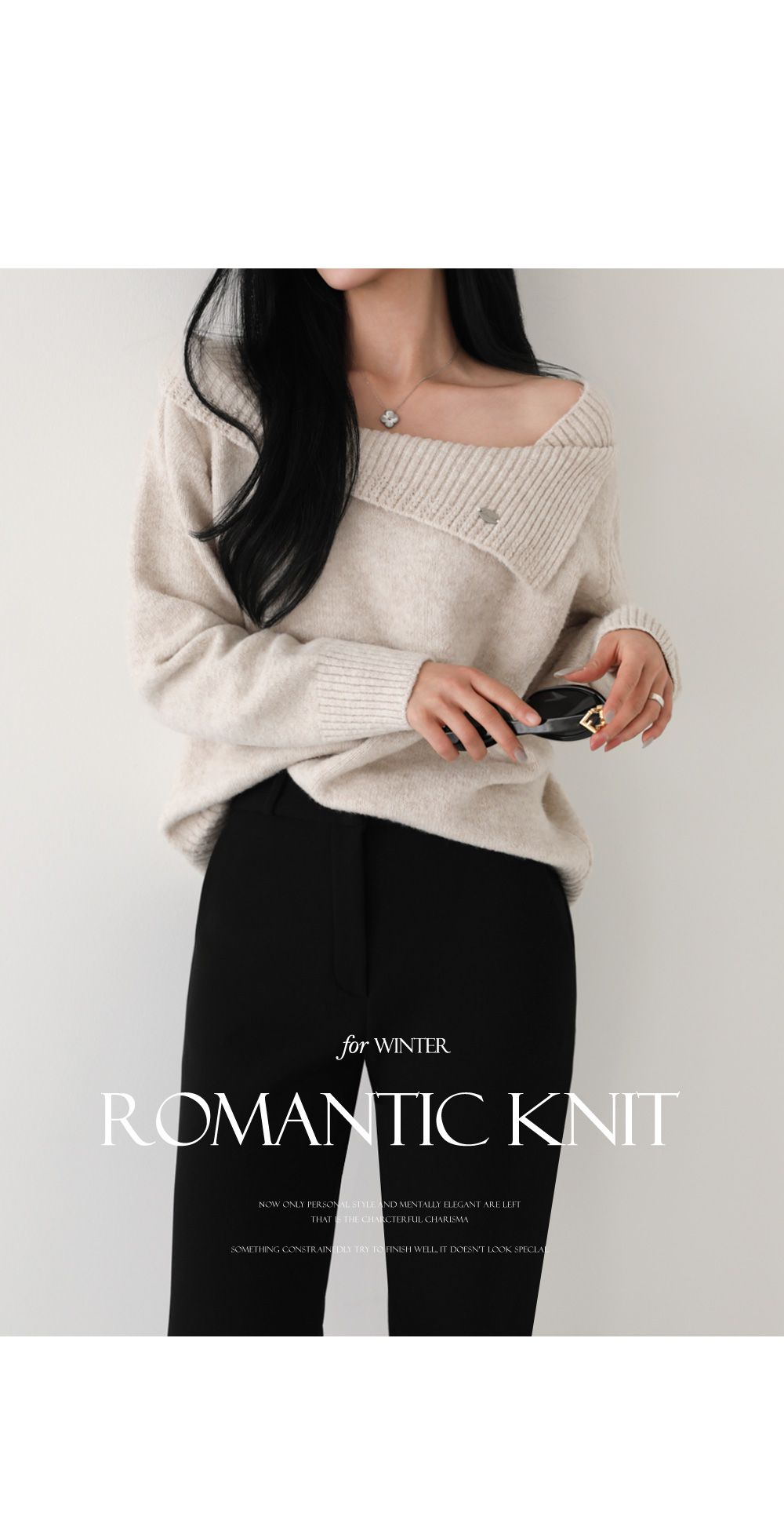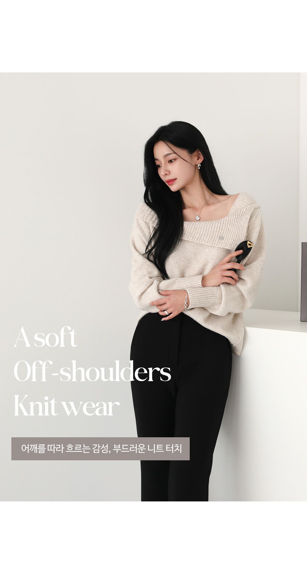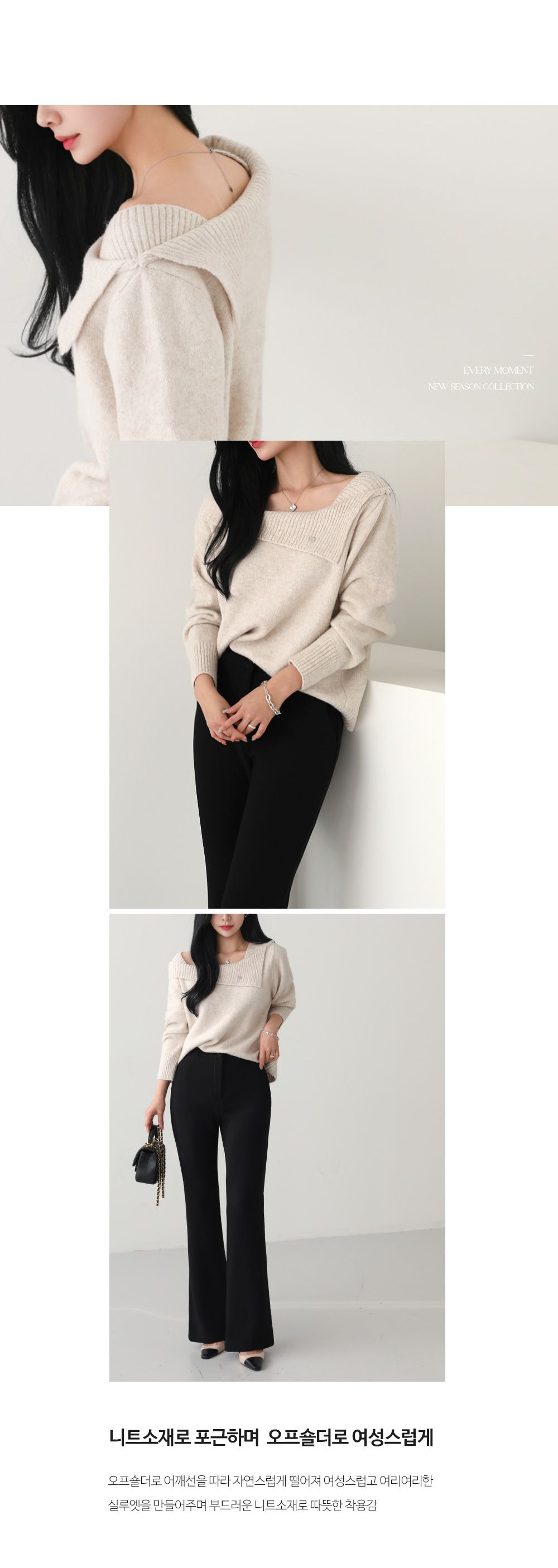 一字領.船領.斜肩.翻領/LOGO金屬標/斜切不規則 - 休閒居家婚禮簡約百搭素面斜肩翻領針織衫針織上衣長袖上衣燕麥色黑色