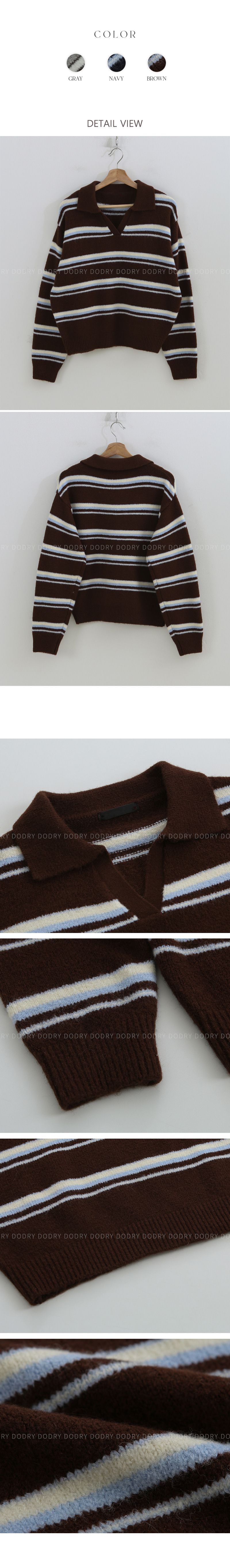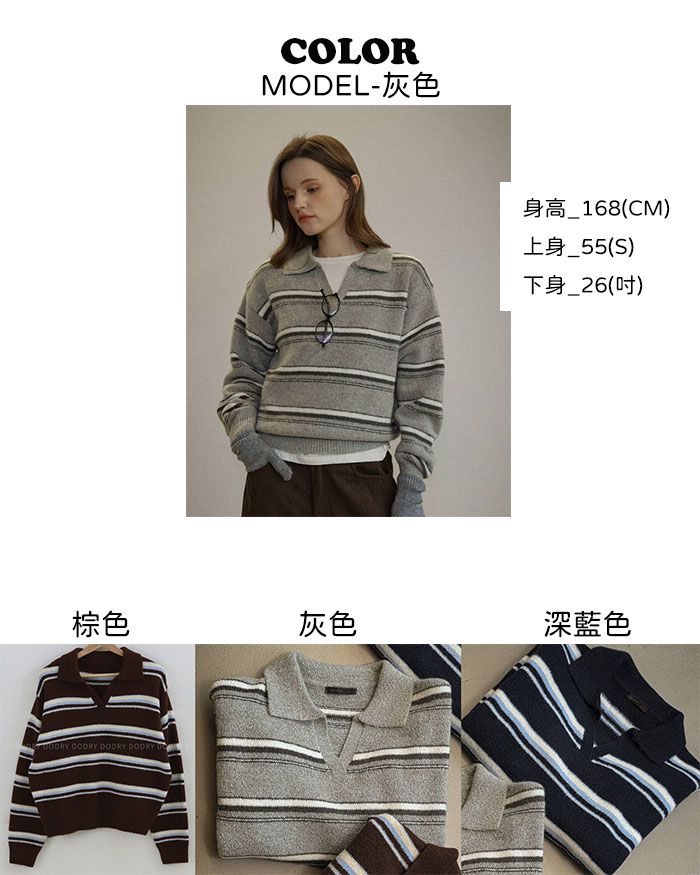 【C55909】韓國DOD 三色條紋針織衫-V領短版長袖POLO衫上衣
