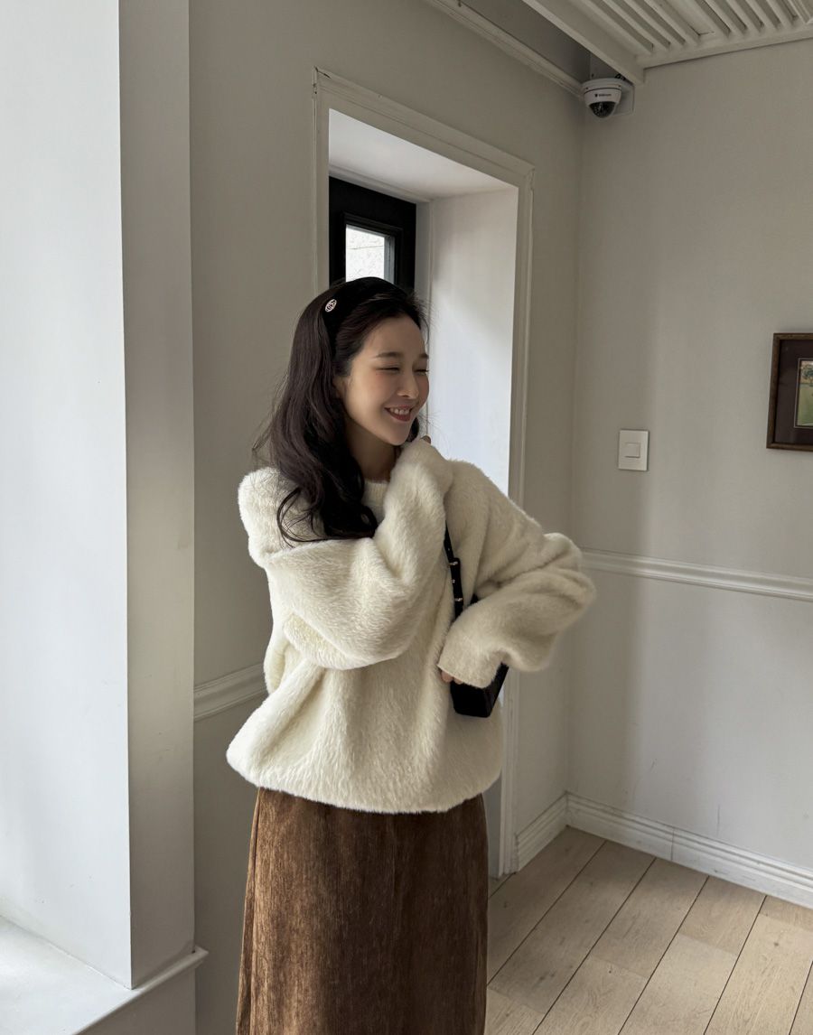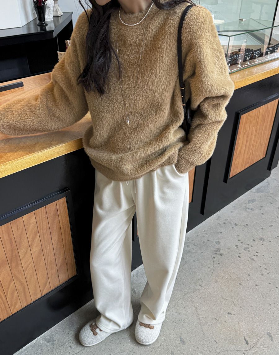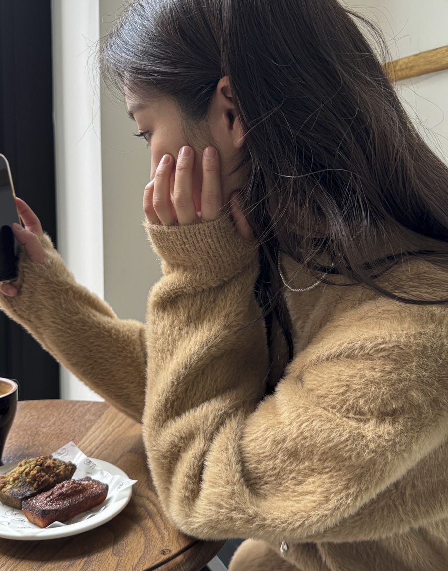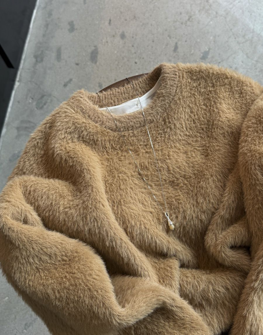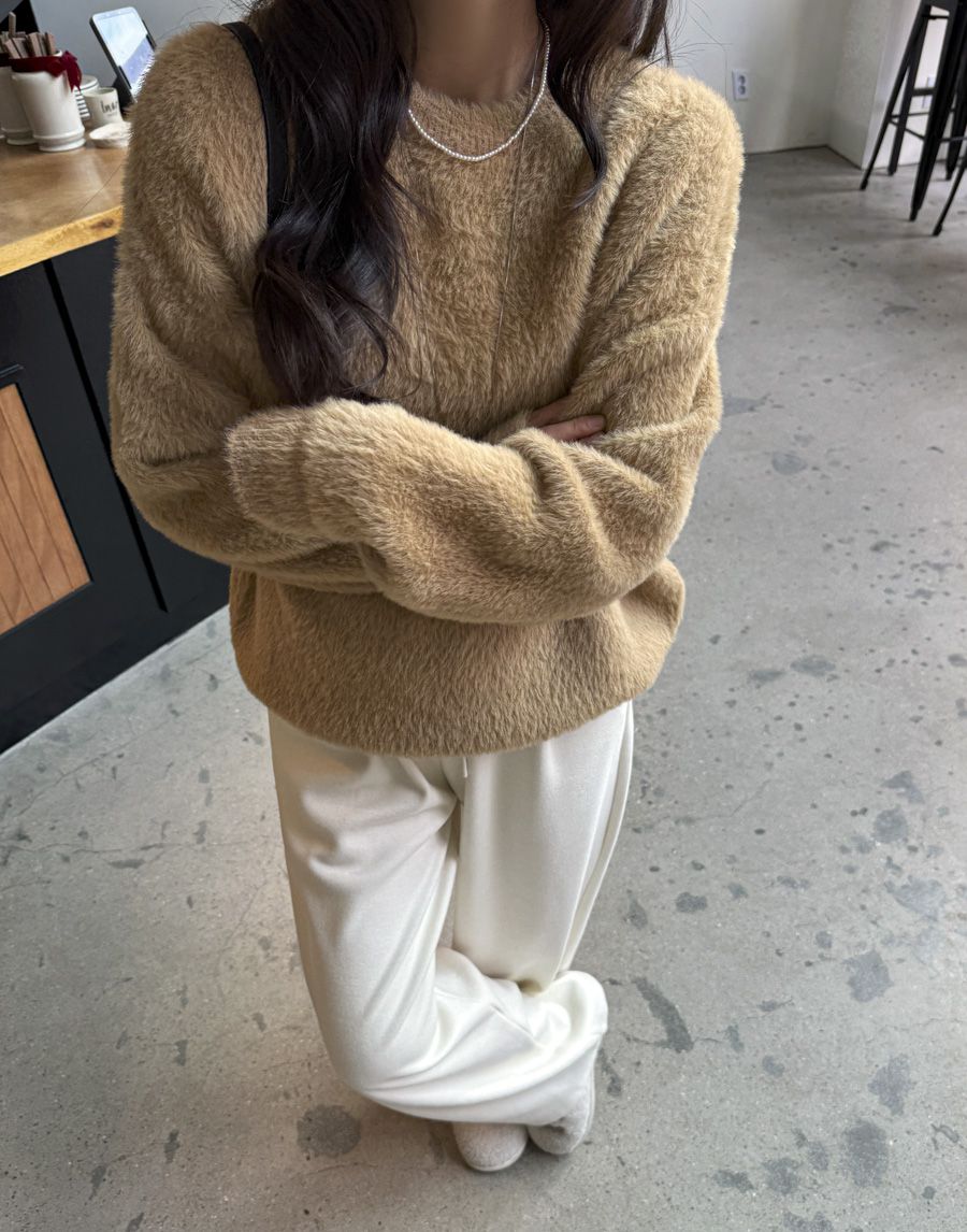 袖口挖洞抓袖設計/馬海毛針織衫/海馬毛針織衫/圓領/寬鬆版型 - 休閒居家婚禮簡約百搭素面抓袖針織衫針織上衣長袖上衣寬鬆大尺碼上衣米色象牙色酒紅色深灰色