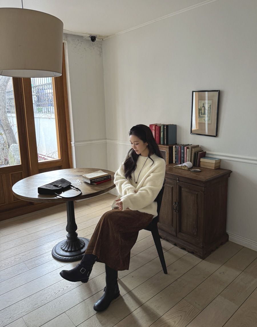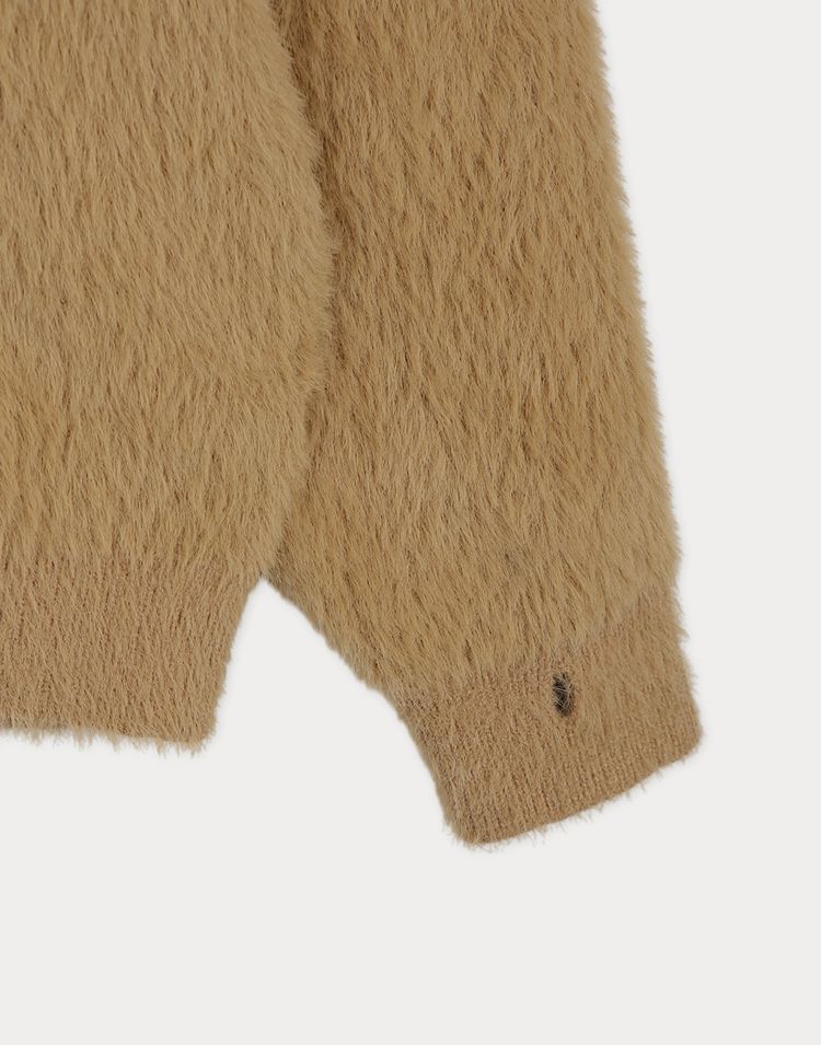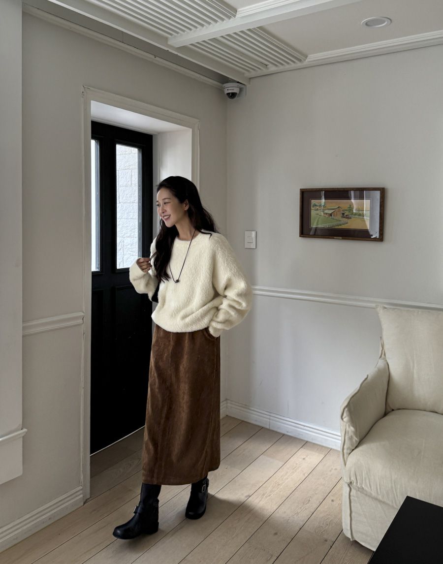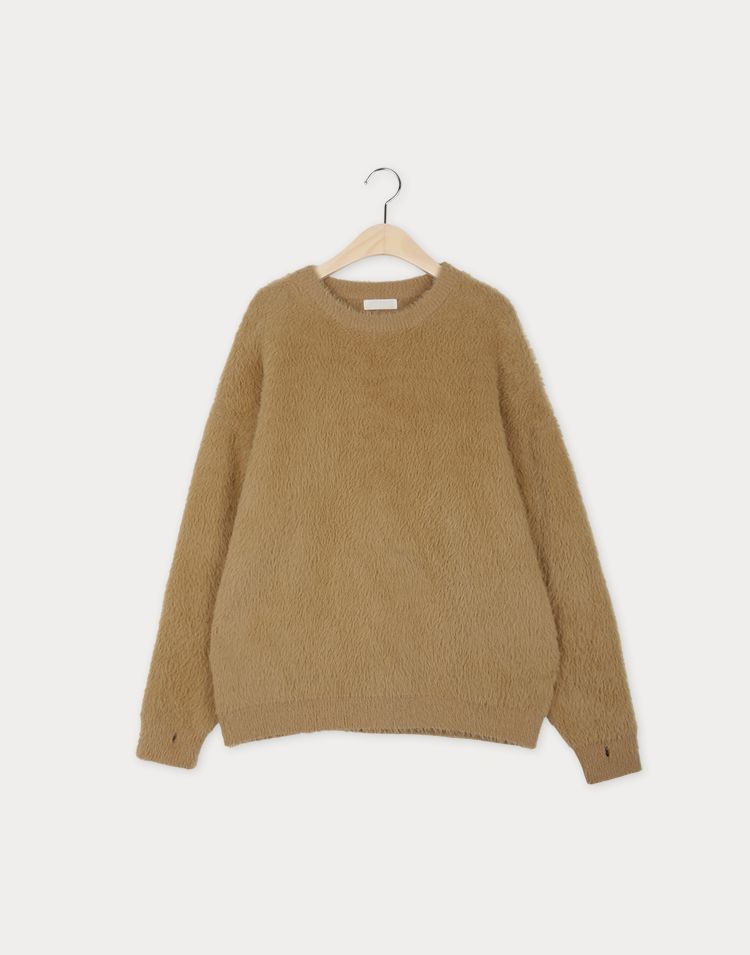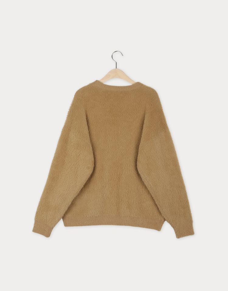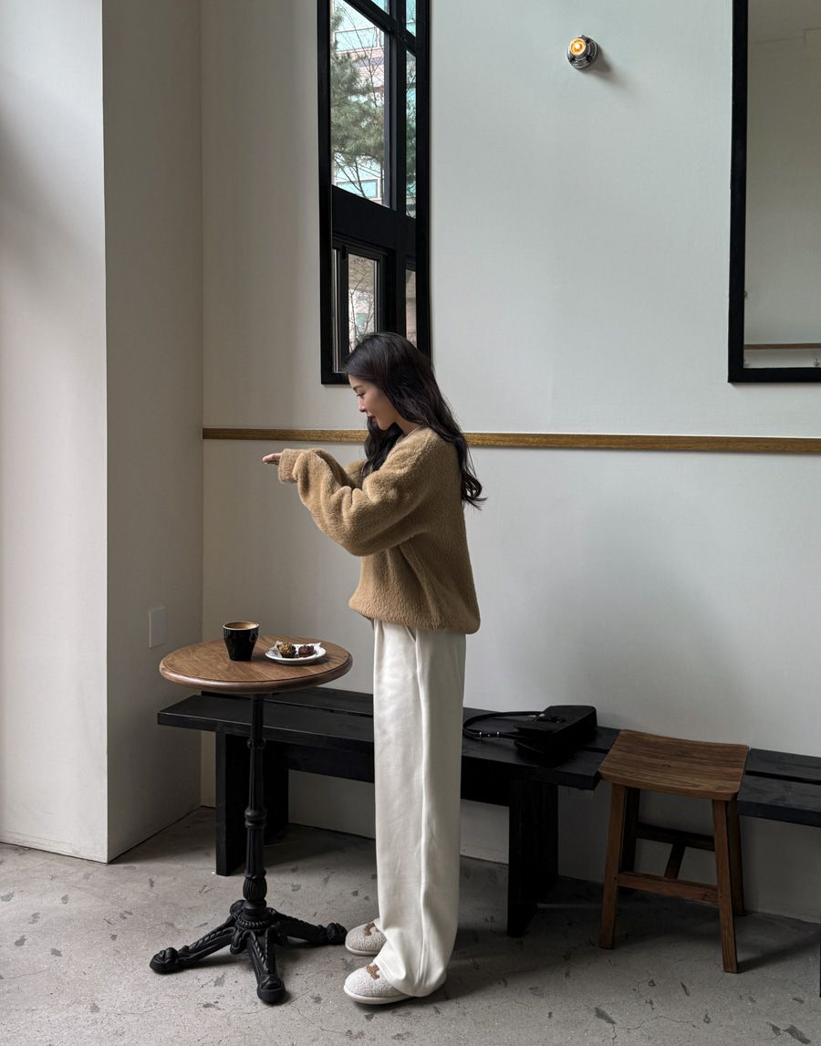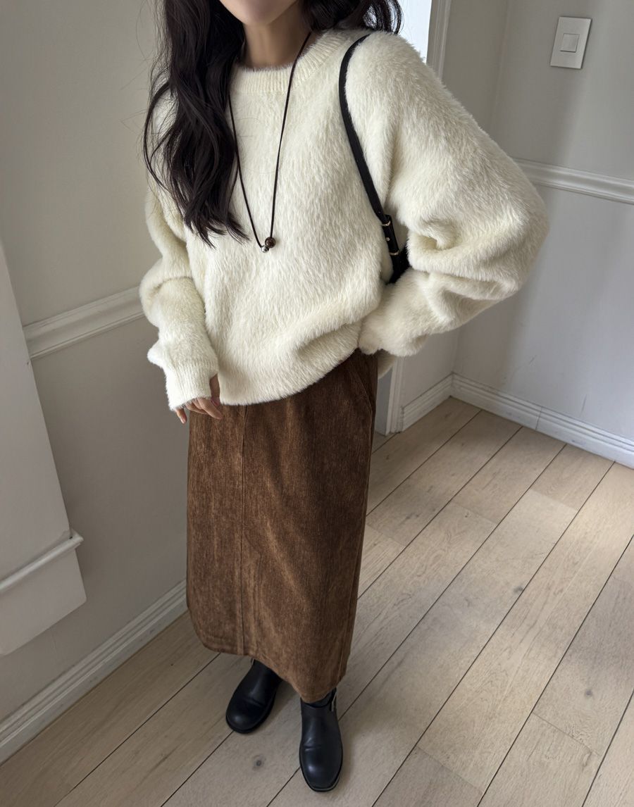 袖口挖洞抓袖設計/馬海毛針織衫/海馬毛針織衫/圓領/寬鬆版型 - 休閒居家婚禮簡約百搭素面抓袖針織衫針織上衣長袖上衣寬鬆大尺碼上衣米色象牙色酒紅色深灰色