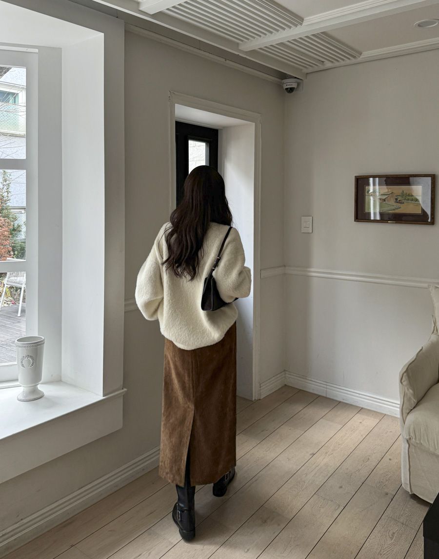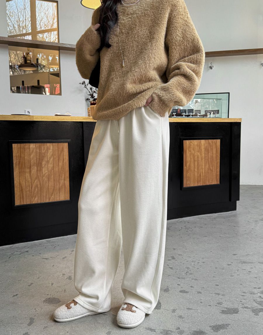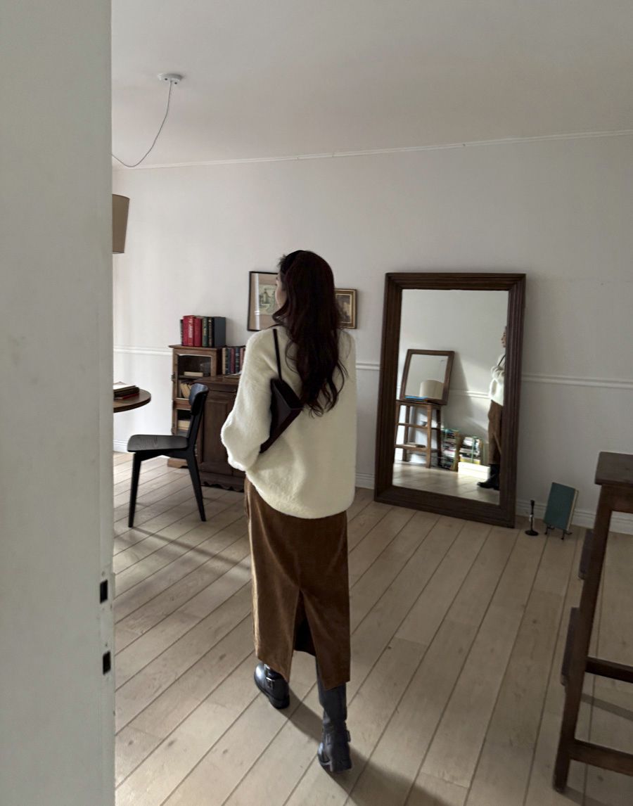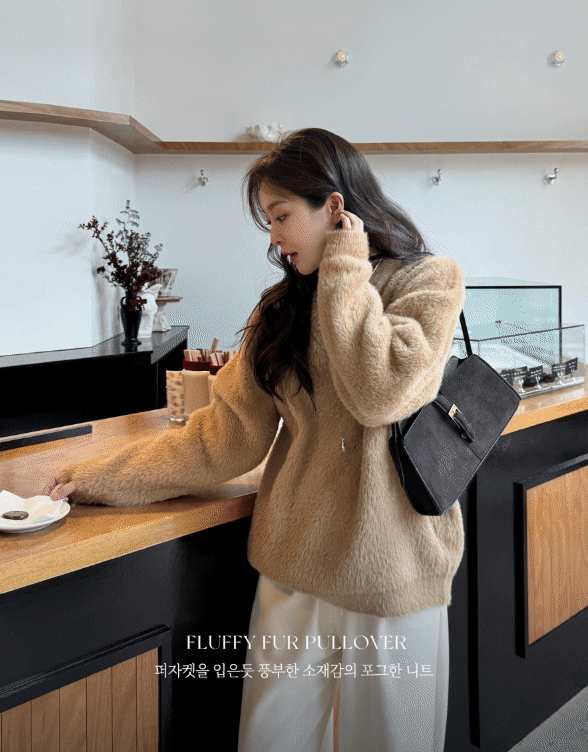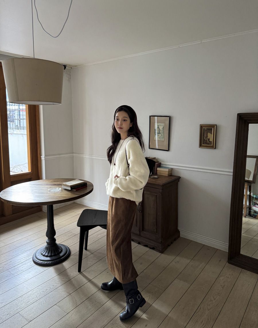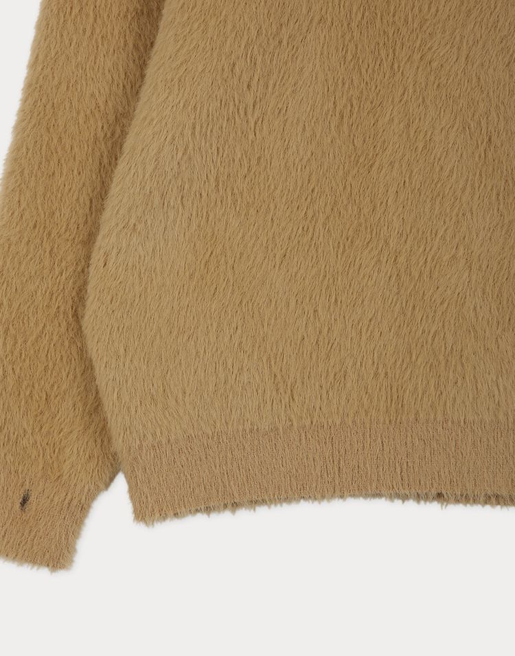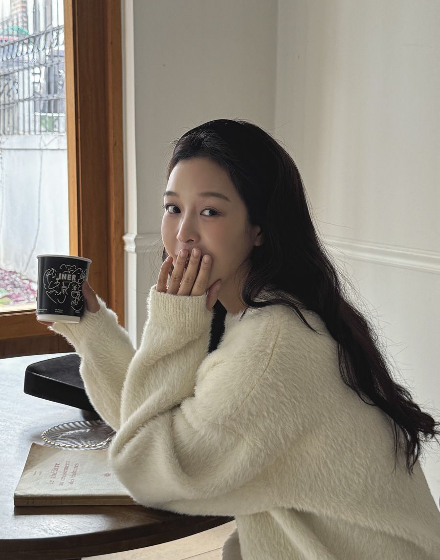 袖口挖洞抓袖設計/馬海毛針織衫/海馬毛針織衫/圓領/寬鬆版型 - 休閒居家婚禮簡約百搭素面抓袖針織衫針織上衣長袖上衣寬鬆大尺碼上衣米色象牙色酒紅色深灰色