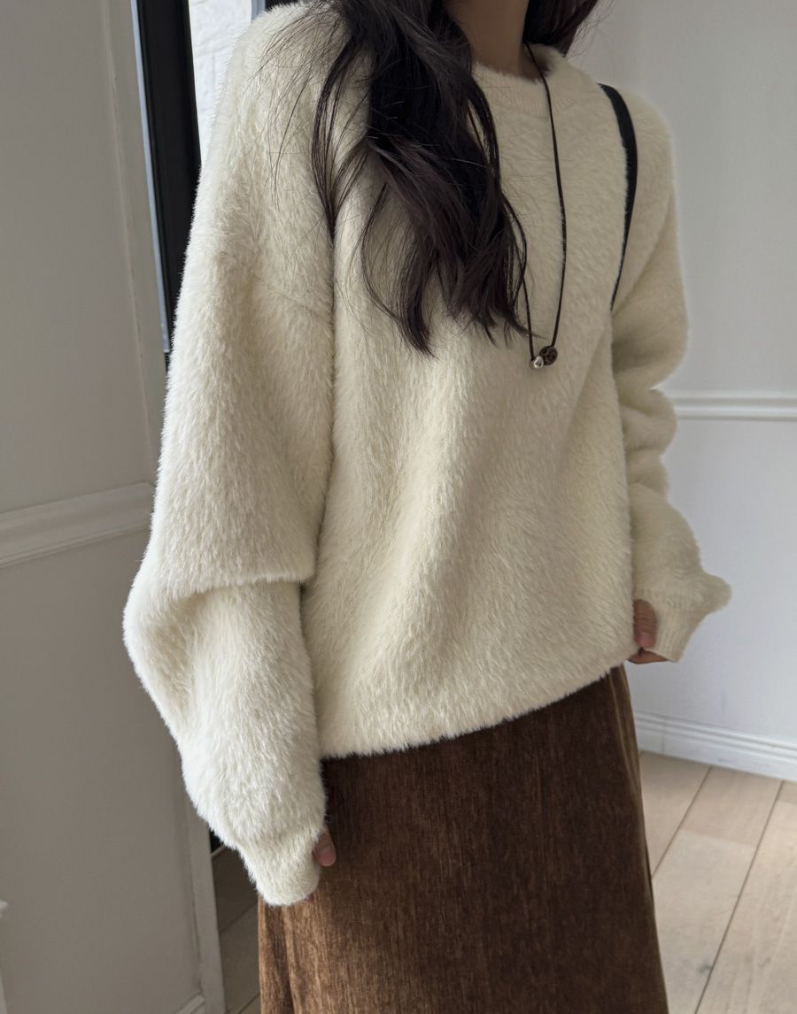 【C55910】韓國MBL 抓袖針織衫-馬海毛素面圓領寬鬆袖口挖洞長袖上衣★★