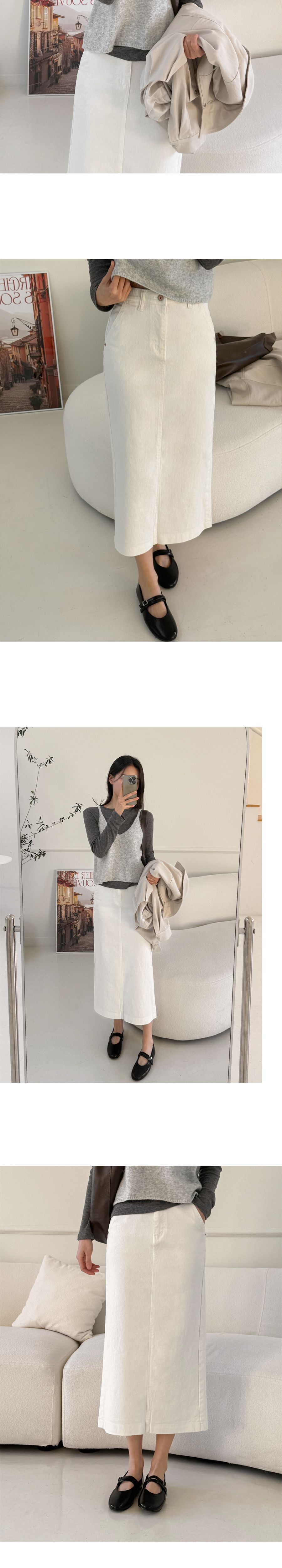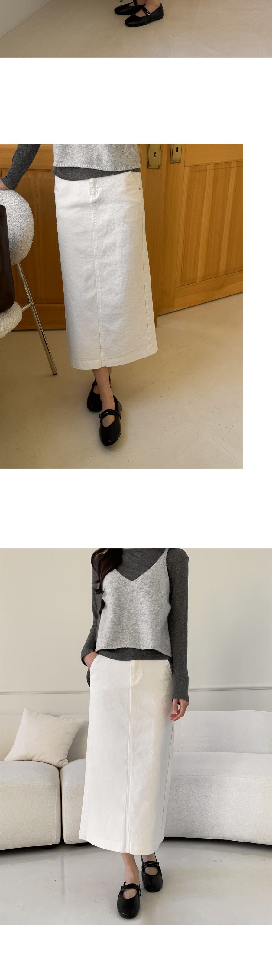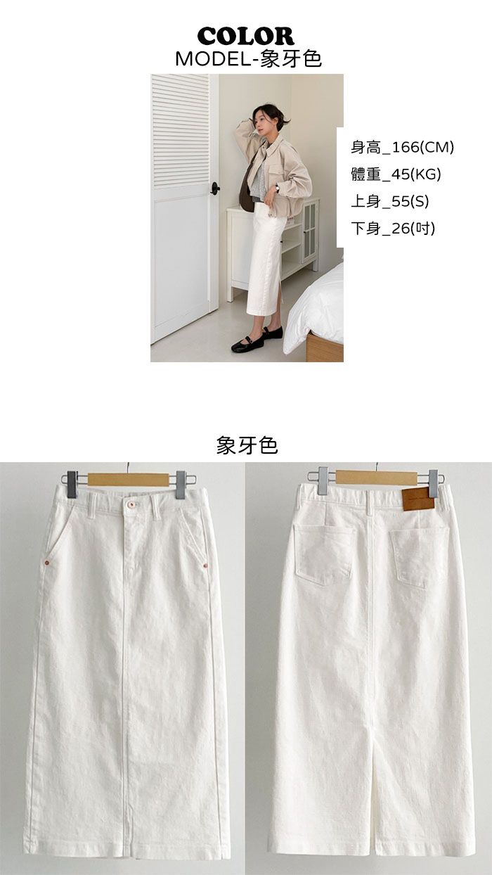 四種尺寸/彈力面料/後開衩/拉鍊鈕釦褲頭/雙口袋/包臀裙/窄裙 - 休閒居家渡假OL上班族婚禮簡約百搭素面素面直筒裙休閒長裙多尺寸SMLXL象牙色