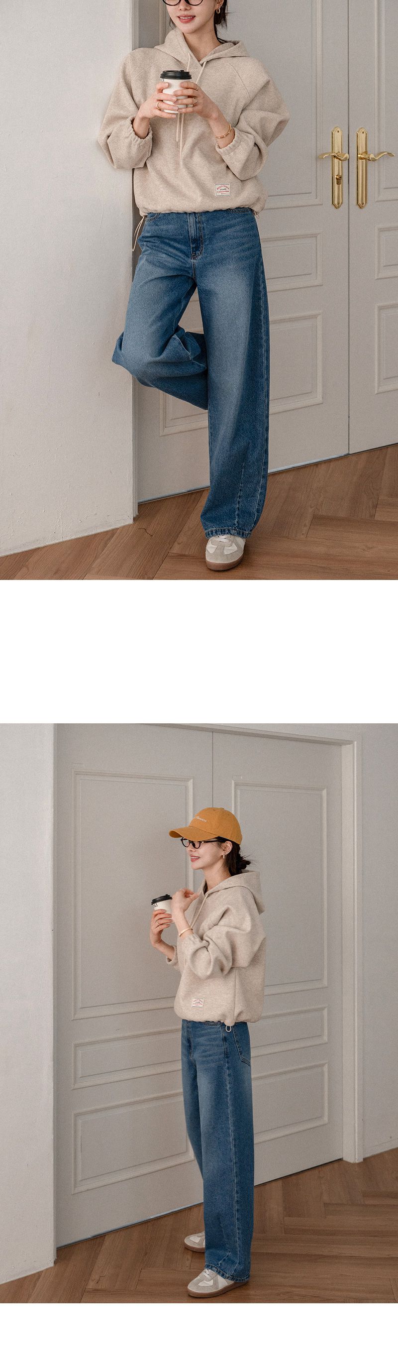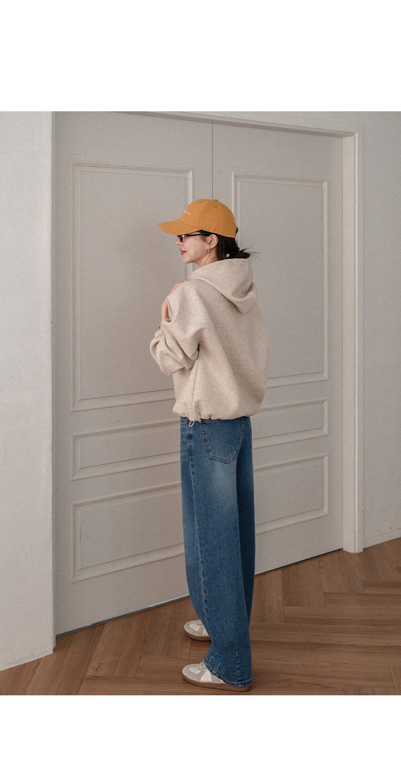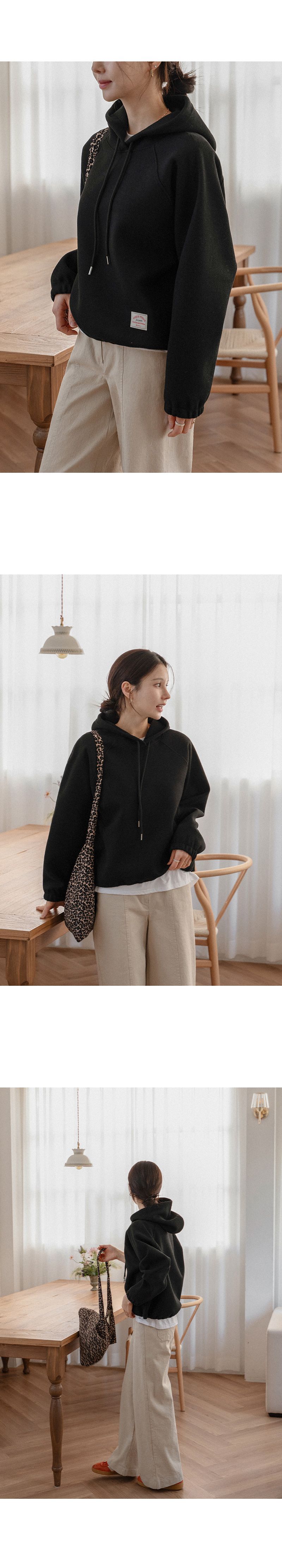 厚實毛呢面料/抽繩連帽/下襬抽繩收腰/個性布標/連肩袖/束口袖 - 素面休閒居家簡約百搭素面毛呢連帽上衣長袖上衣帽T米色黑色