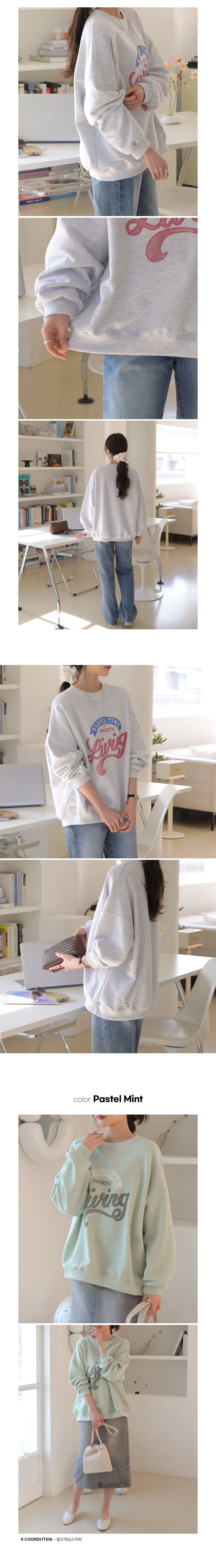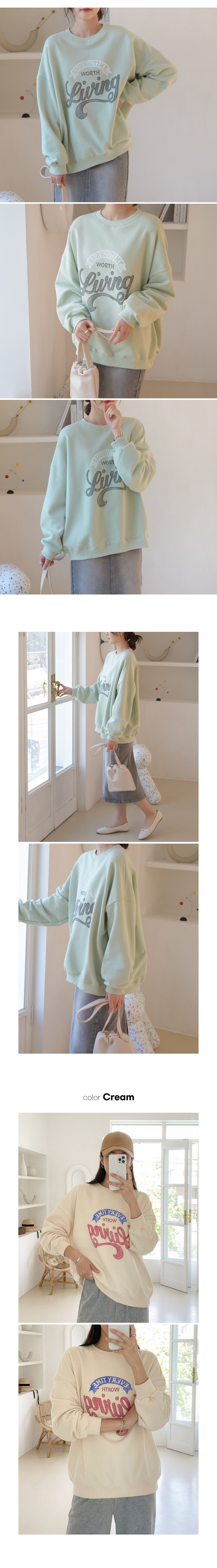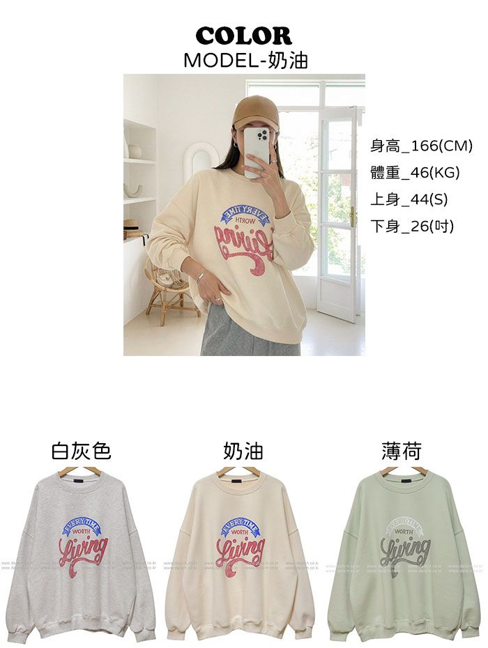 拓印感字母/膠印字母/圓領/寬鬆大尺碼上衣 - 休閒居家英文字母上衣字母T恤拓印字母大學T個性撞色字母長袖上衣白灰色奶油色薄荷色