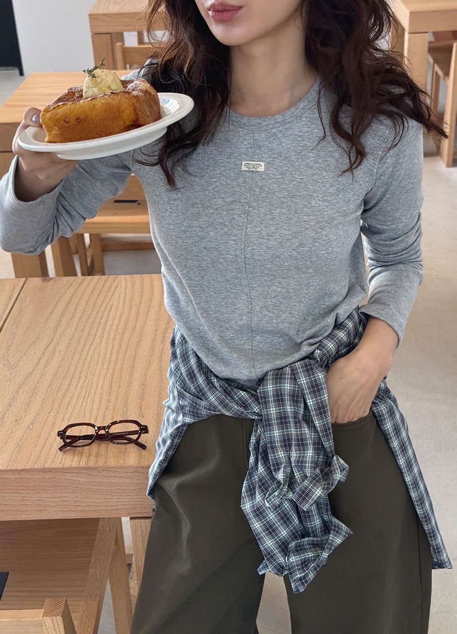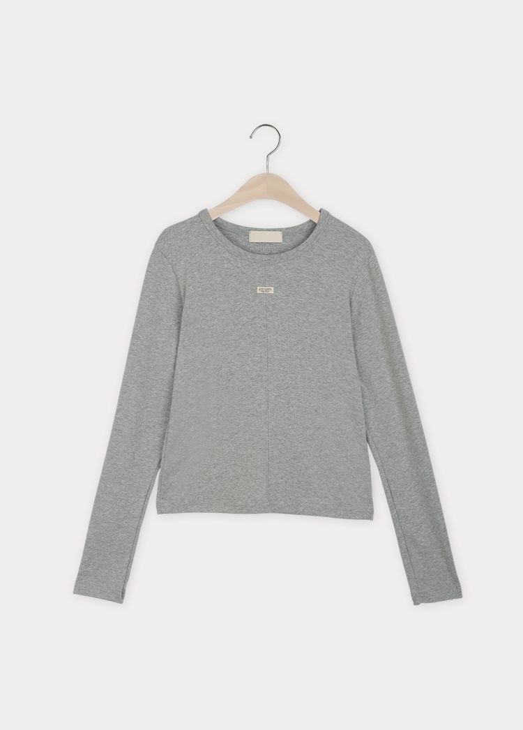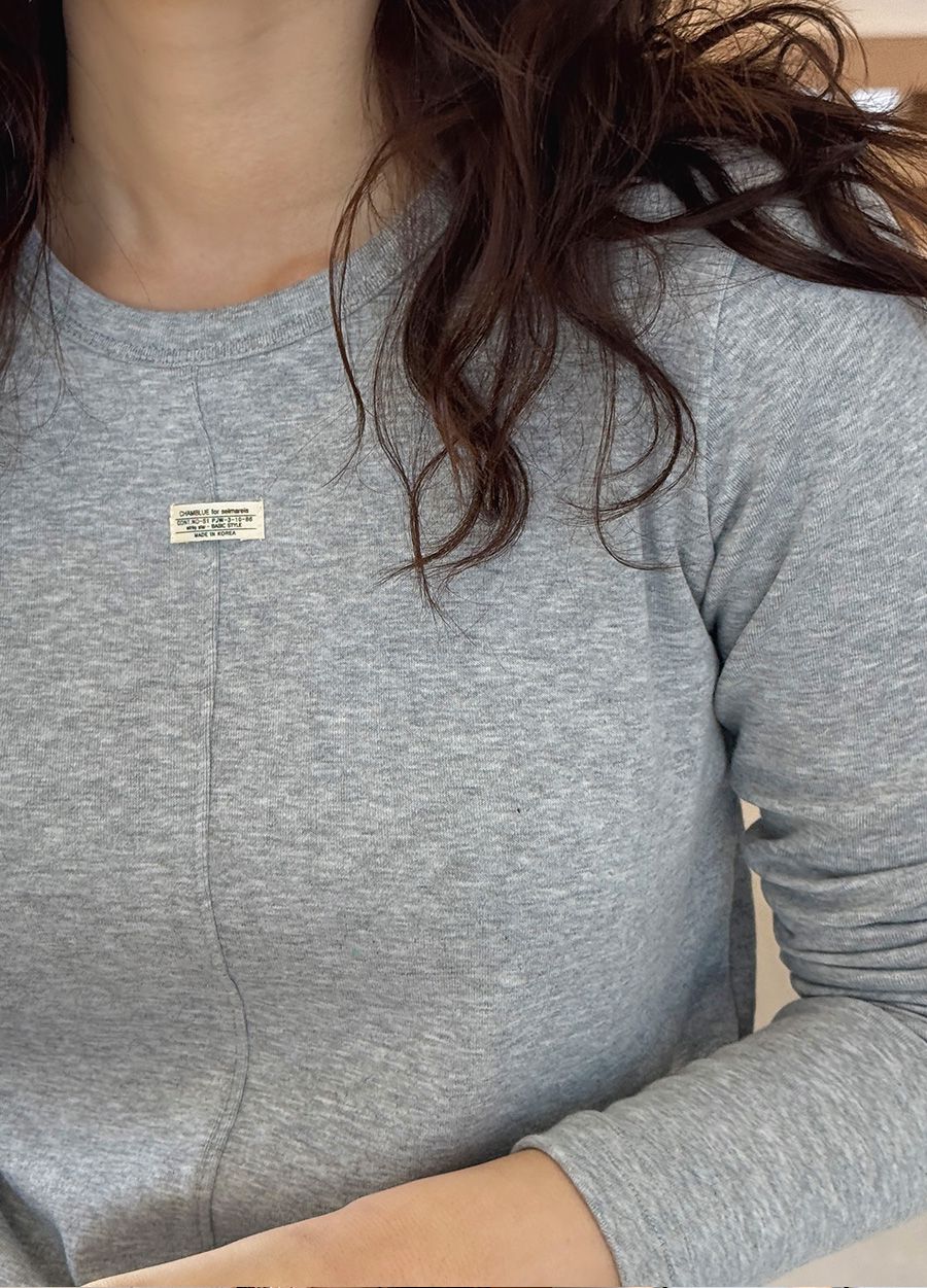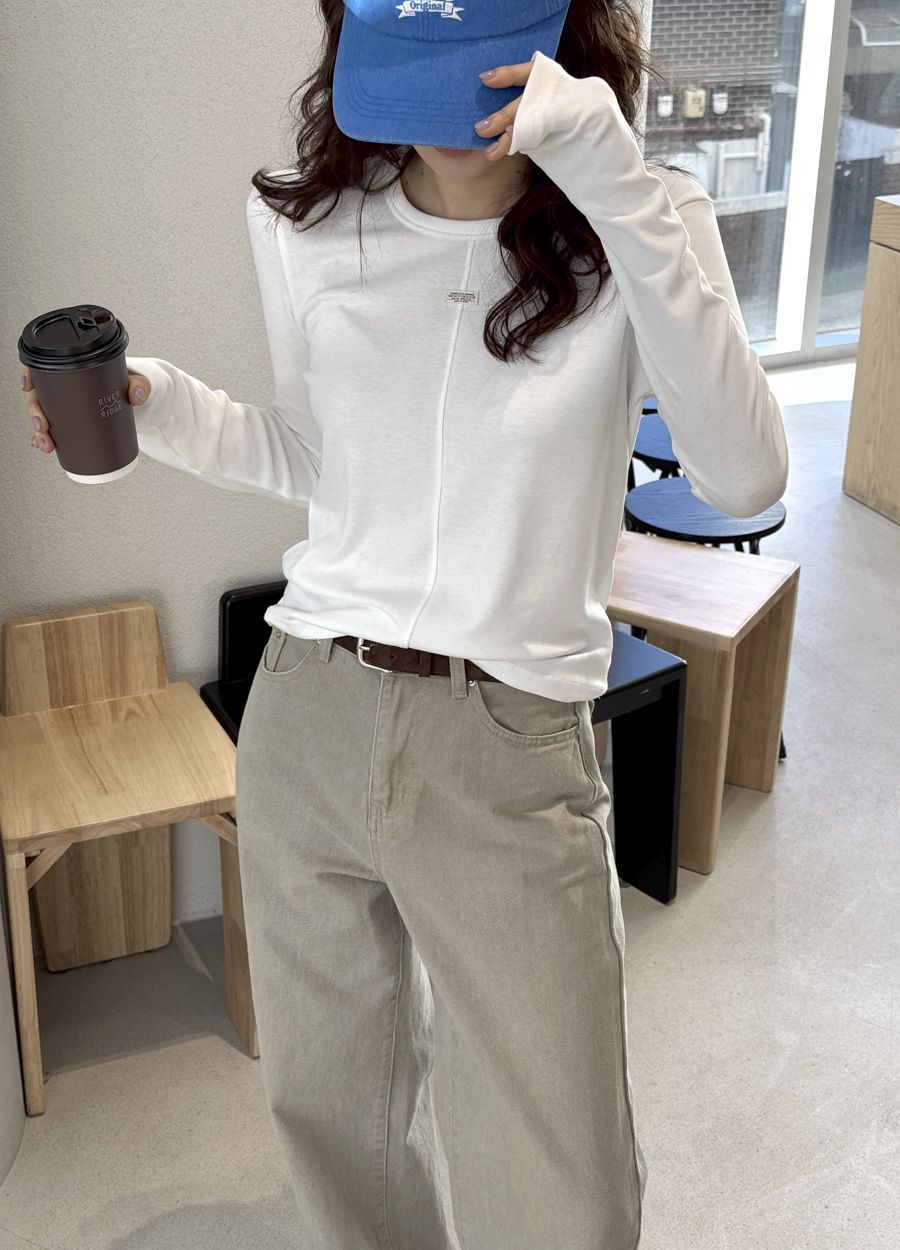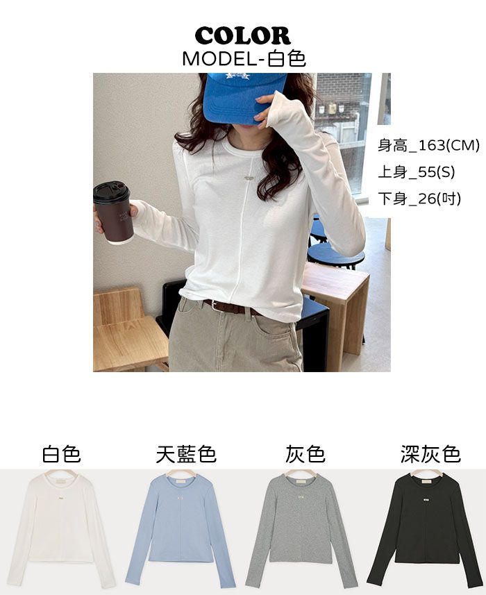 【C55991】韓國MBL 字母布標長袖-切割車線圓領輕薄貼身內搭上衣★★