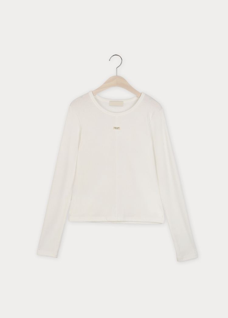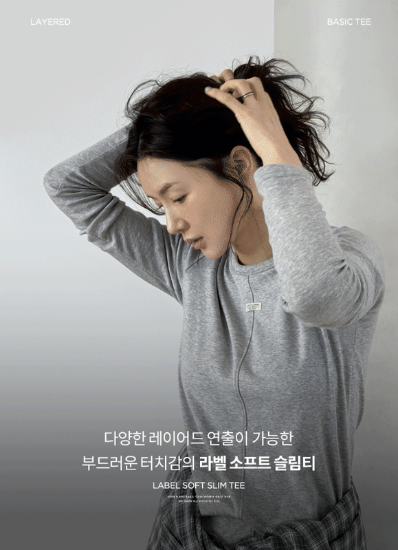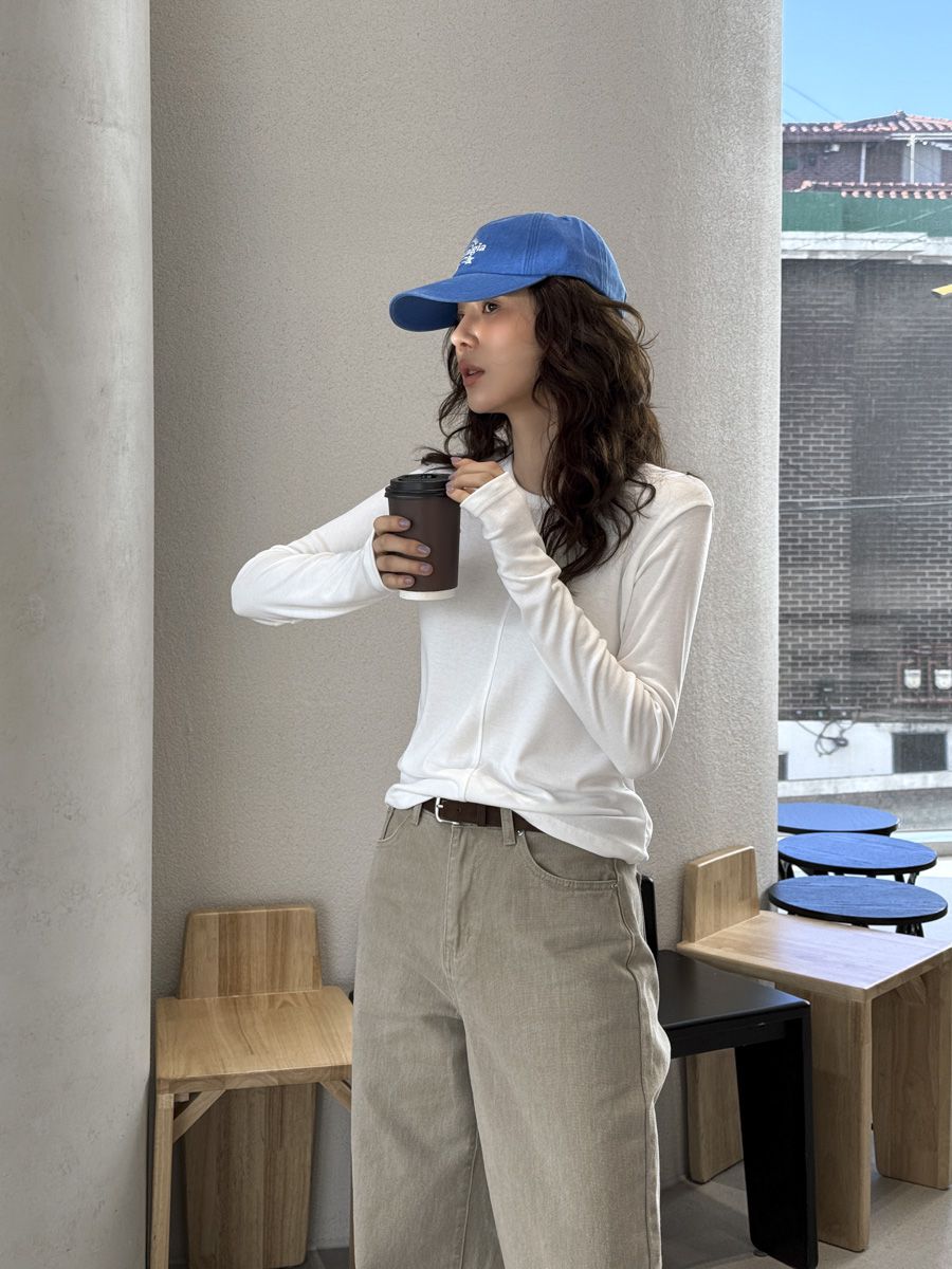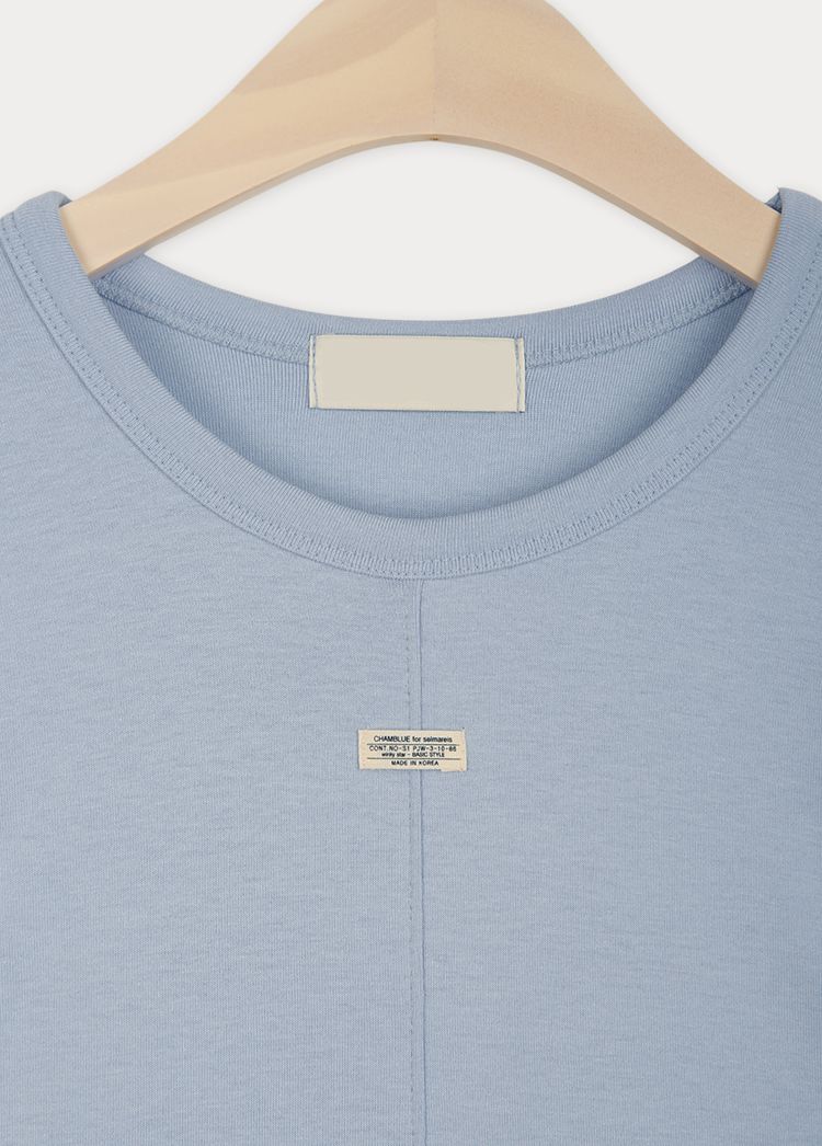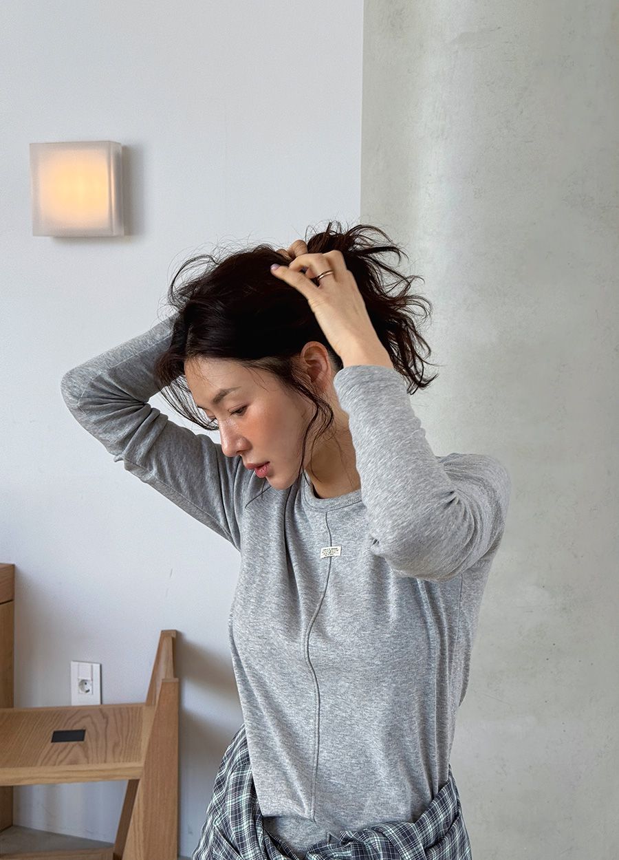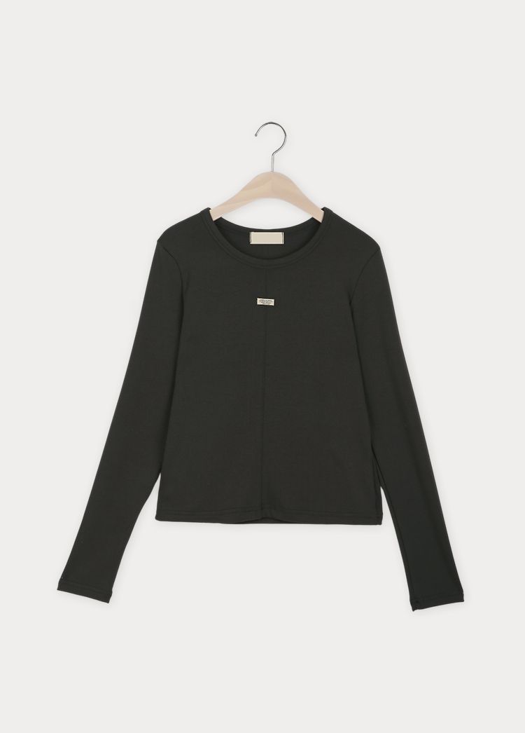 【C55991】韓國MBL 字母布標長袖-切割車線圓領輕薄貼身內搭上衣★★
