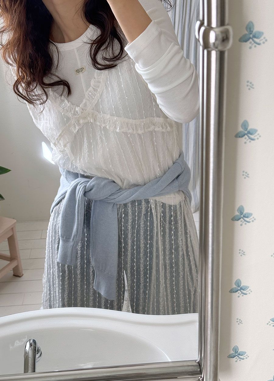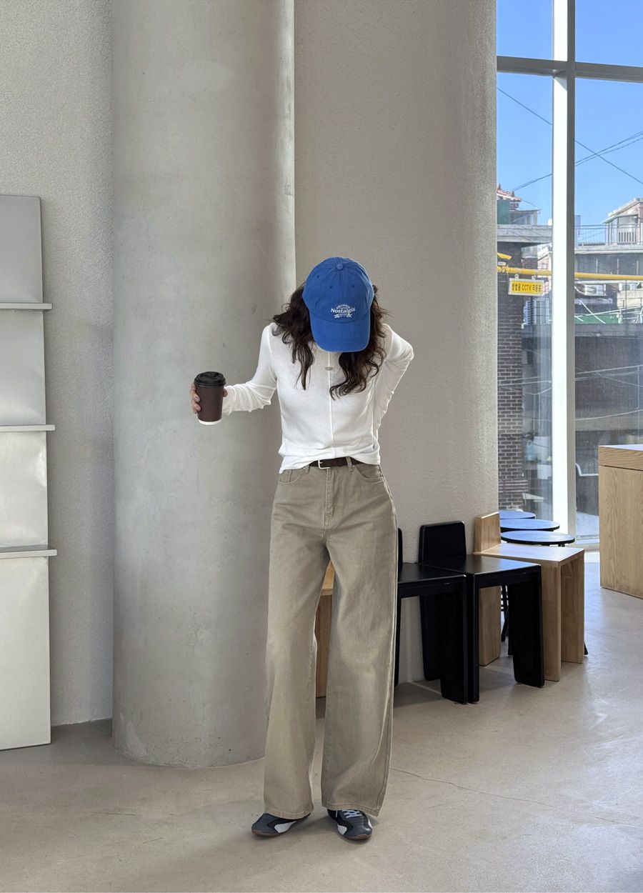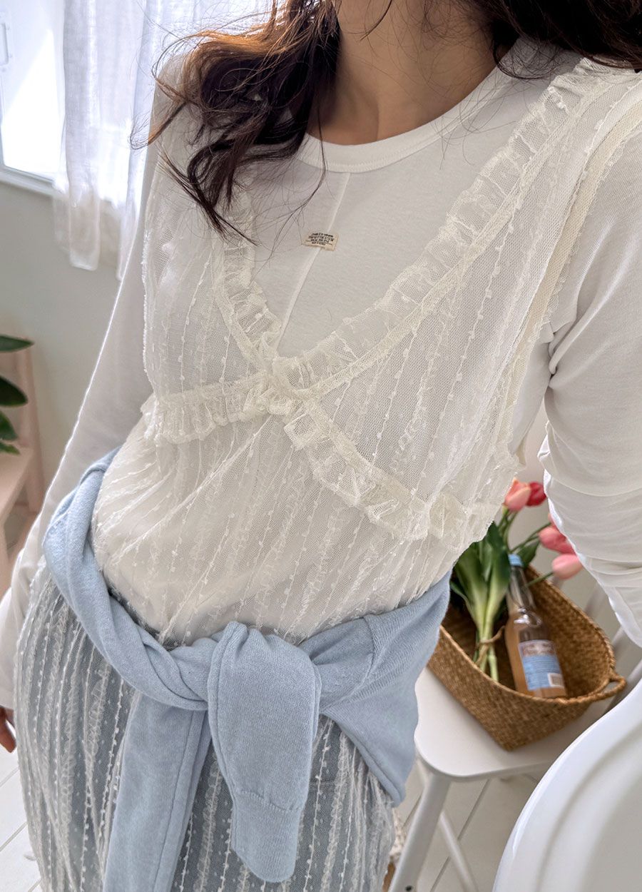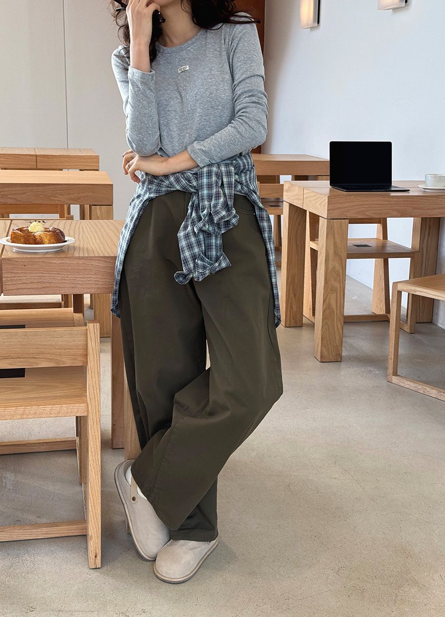 【C55991】韓國MBL 字母布標長袖-切割車線圓領輕薄貼身內搭上衣★★