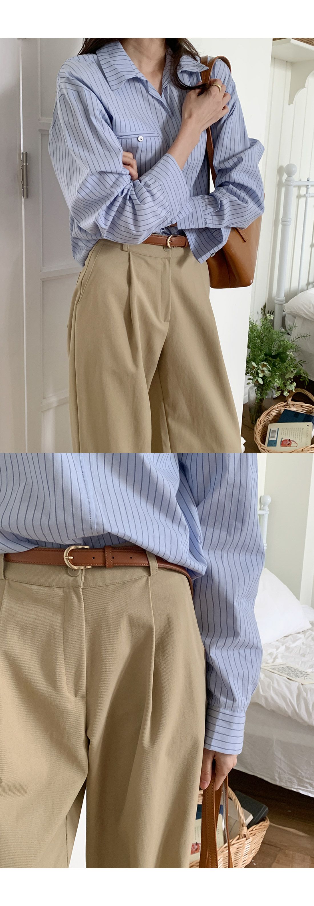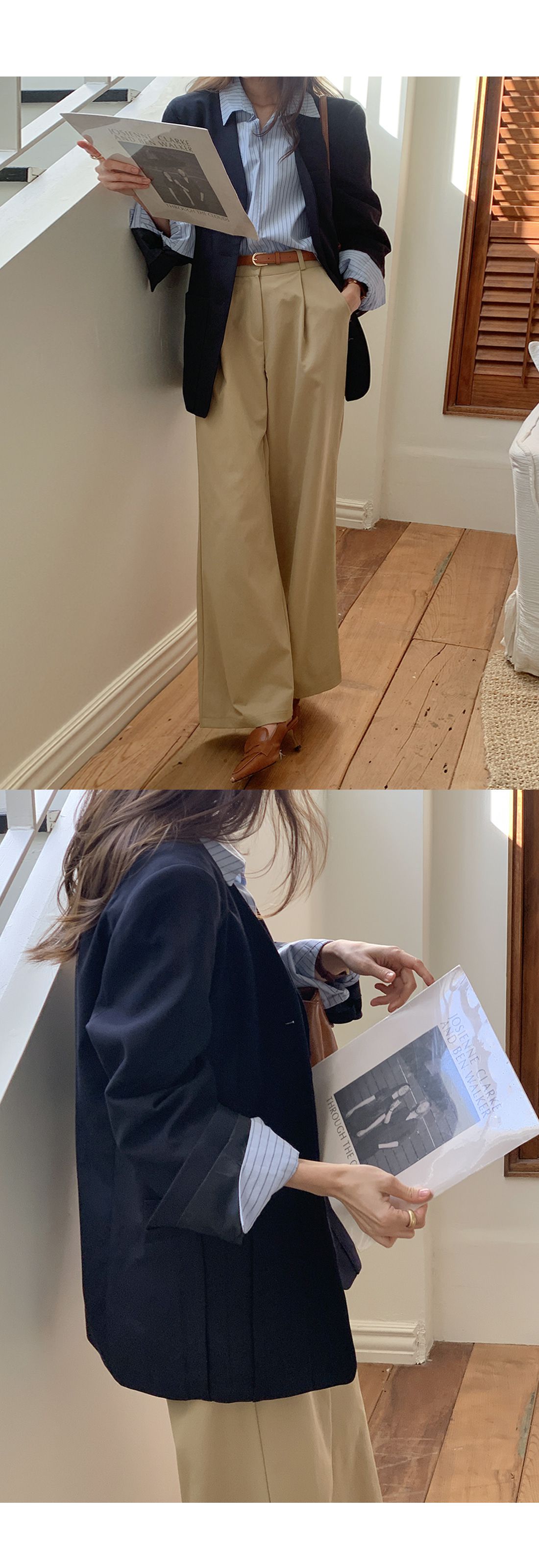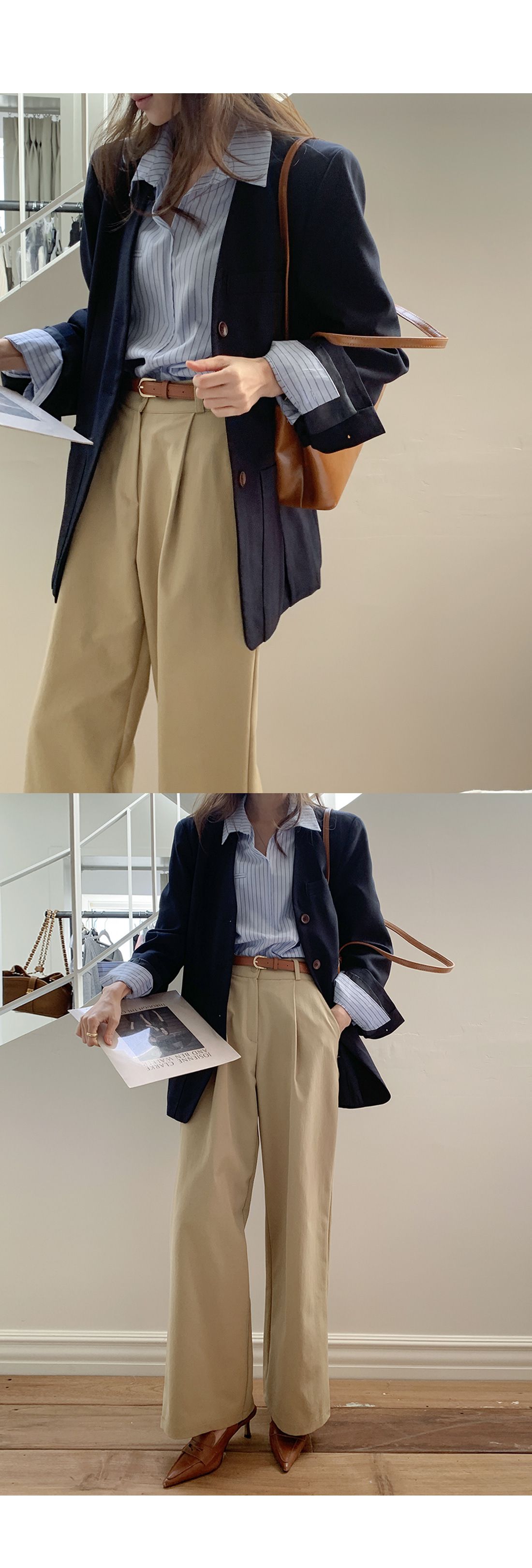 【C55992】韓國TMO 抓褶腰西裝褲-OL寬褲素面挺版高腰直筒褲長褲★★