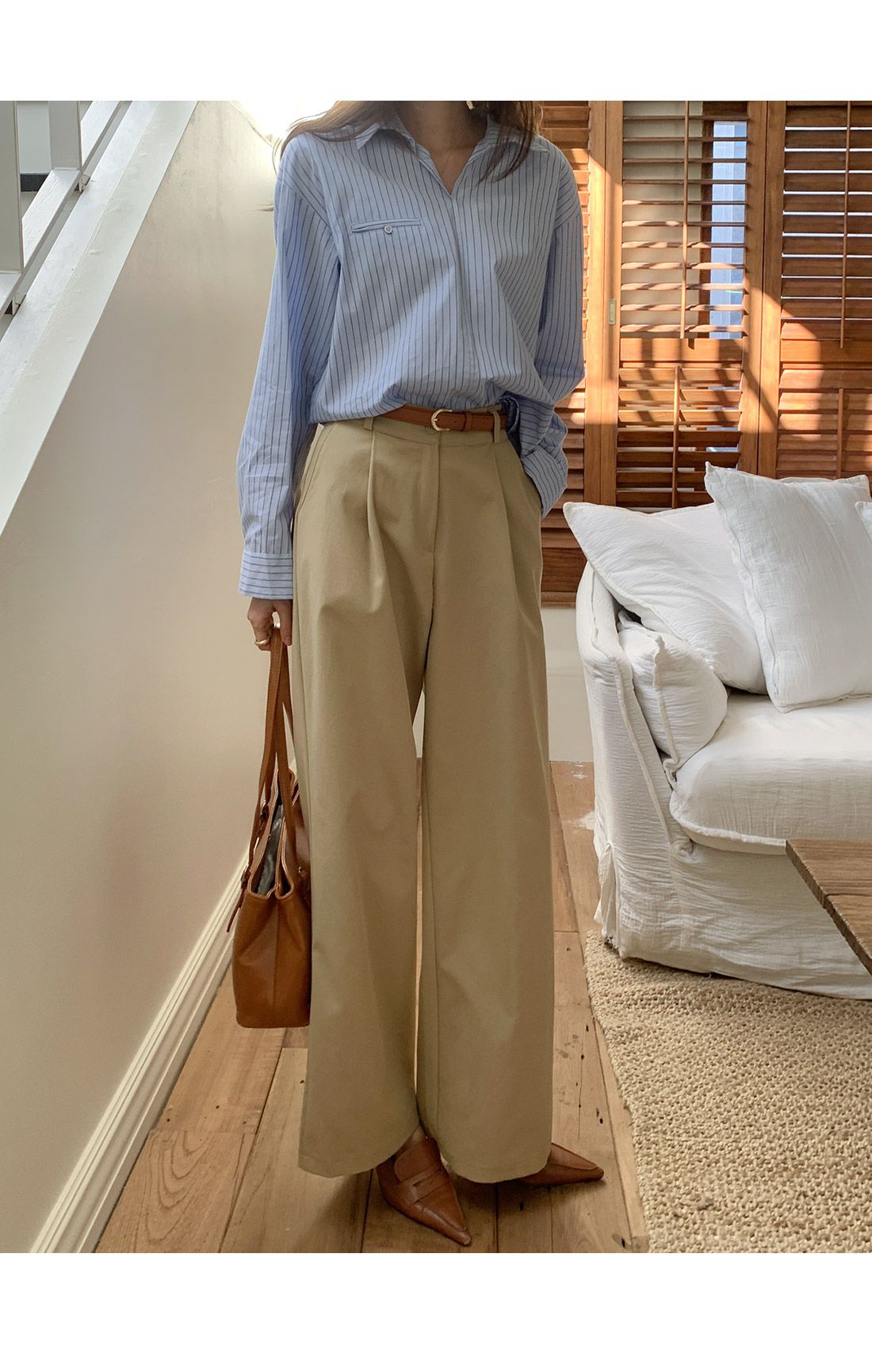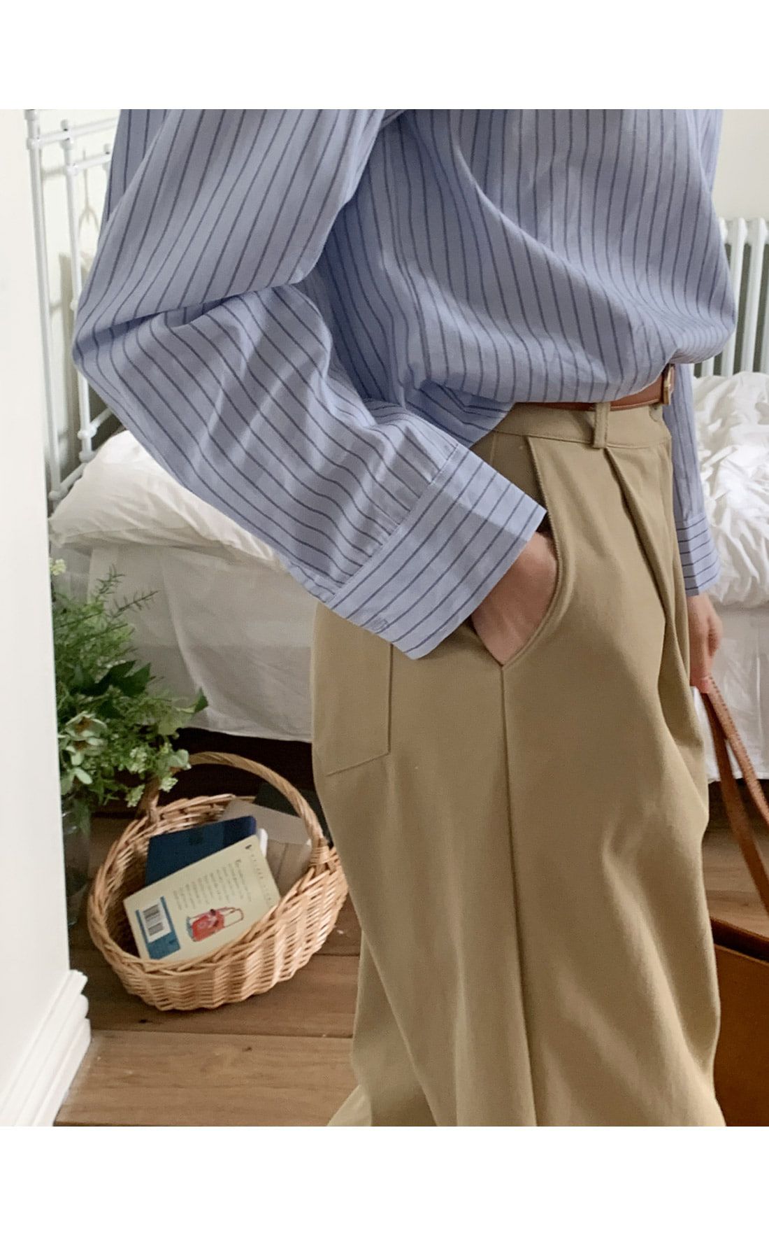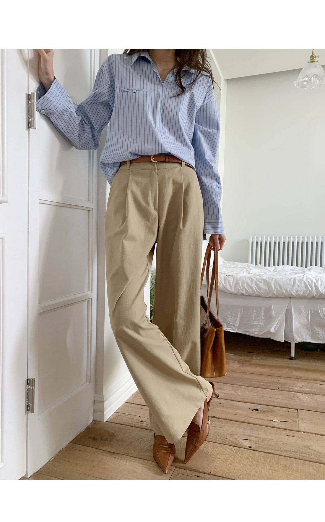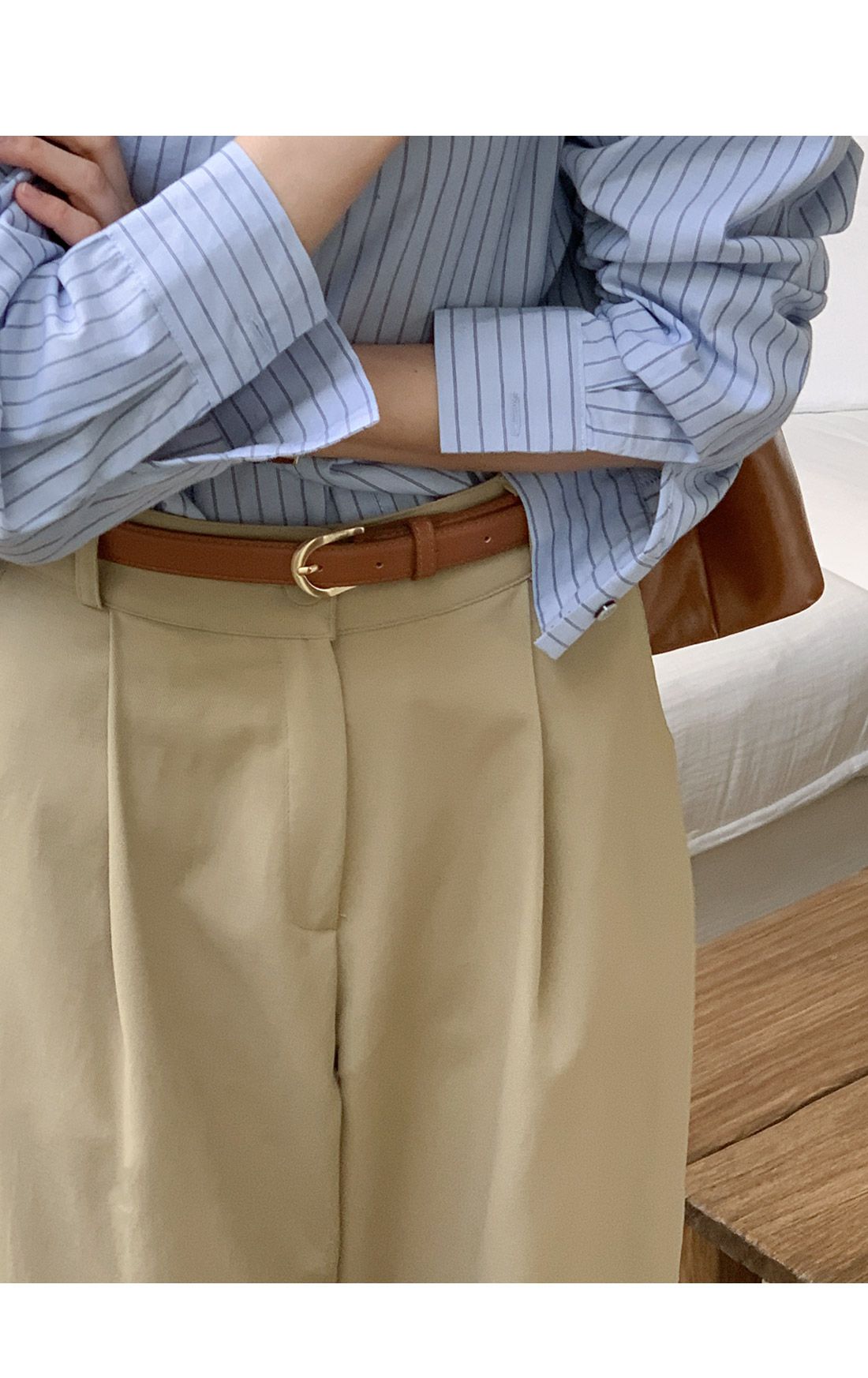 【C55992】韓國TMO 抓褶腰西裝褲-OL寬褲素面挺版高腰直筒褲長褲★★