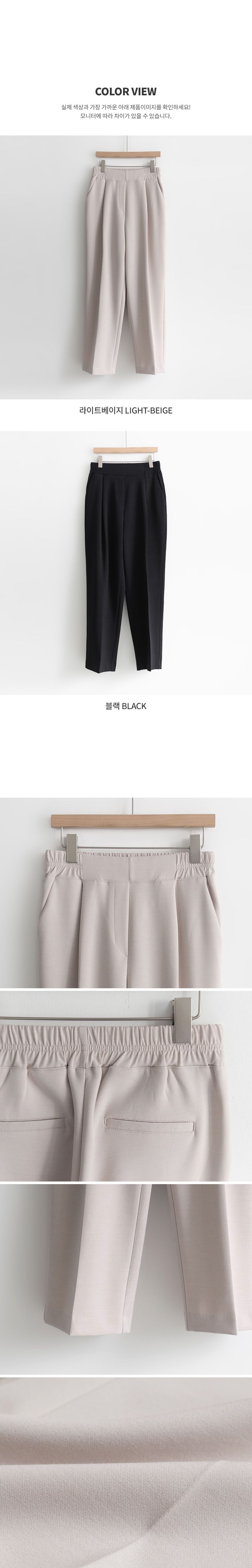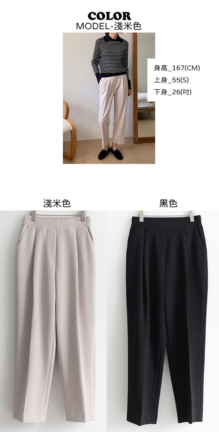 三種尺寸/雙褶假褲頭造型/打褶褲頭/超彈力面料/後腰鬆緊/後腰半圈鬆緊/雙口袋/錐形褲 - 休閒居家OL上班族簡約百搭素面錐形西裝褲九分褲多尺寸SML淺米色黑色