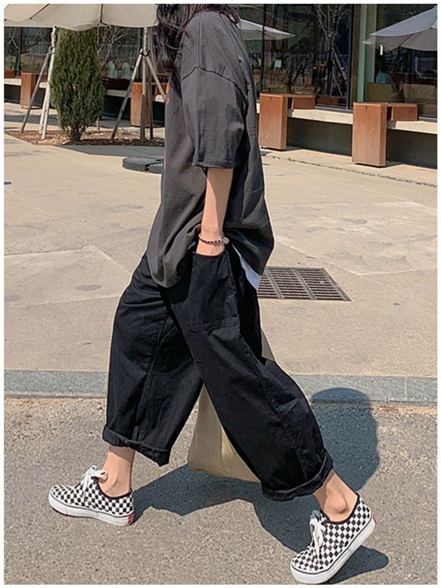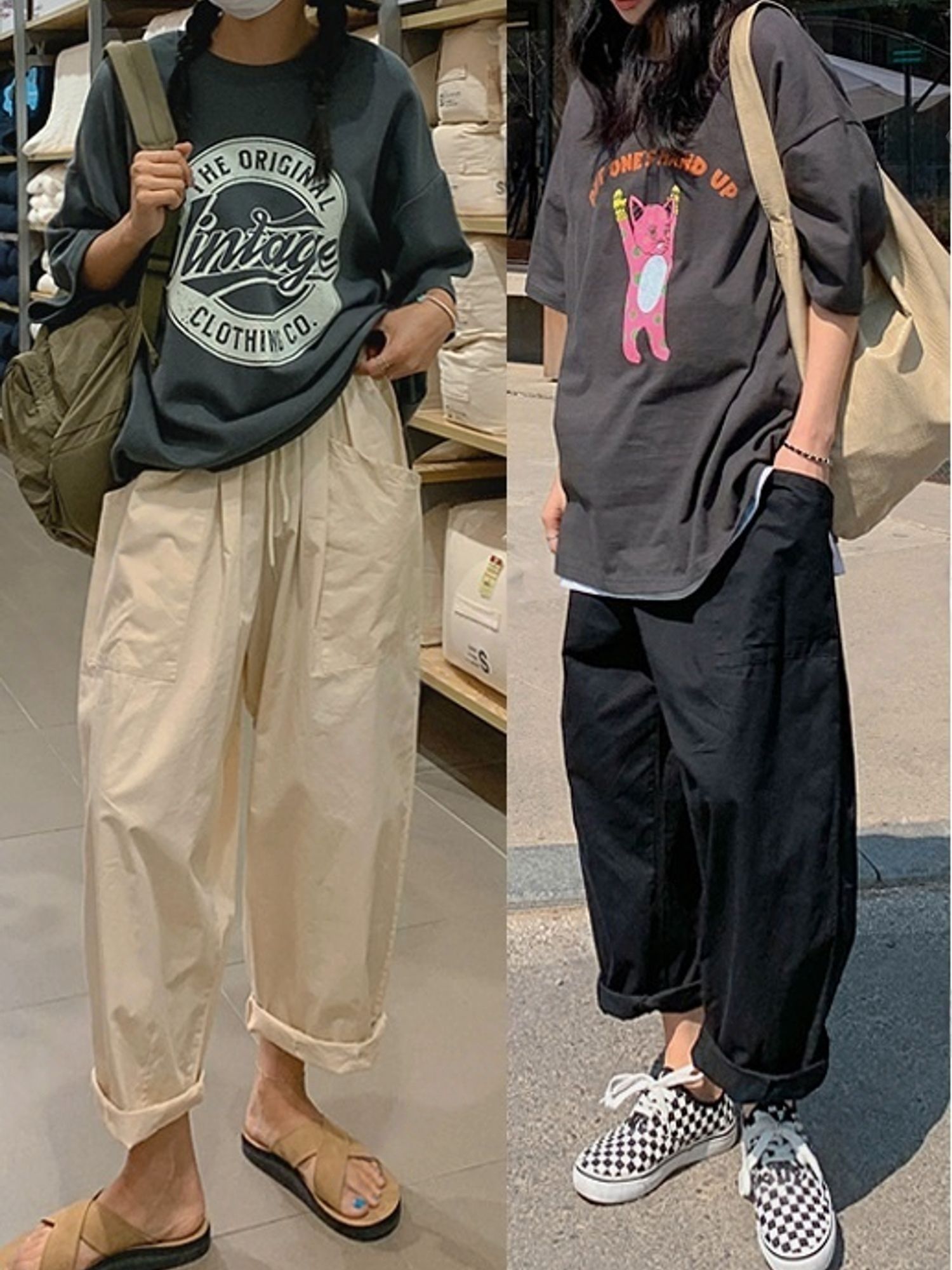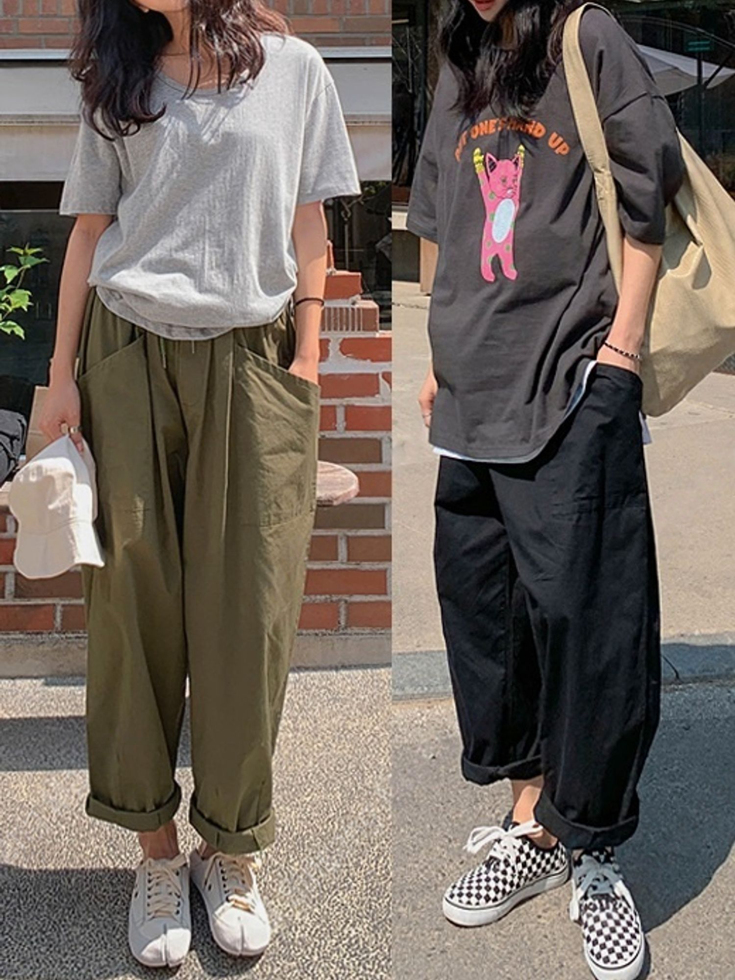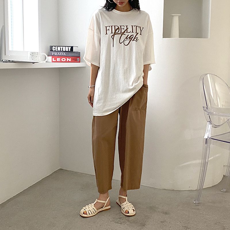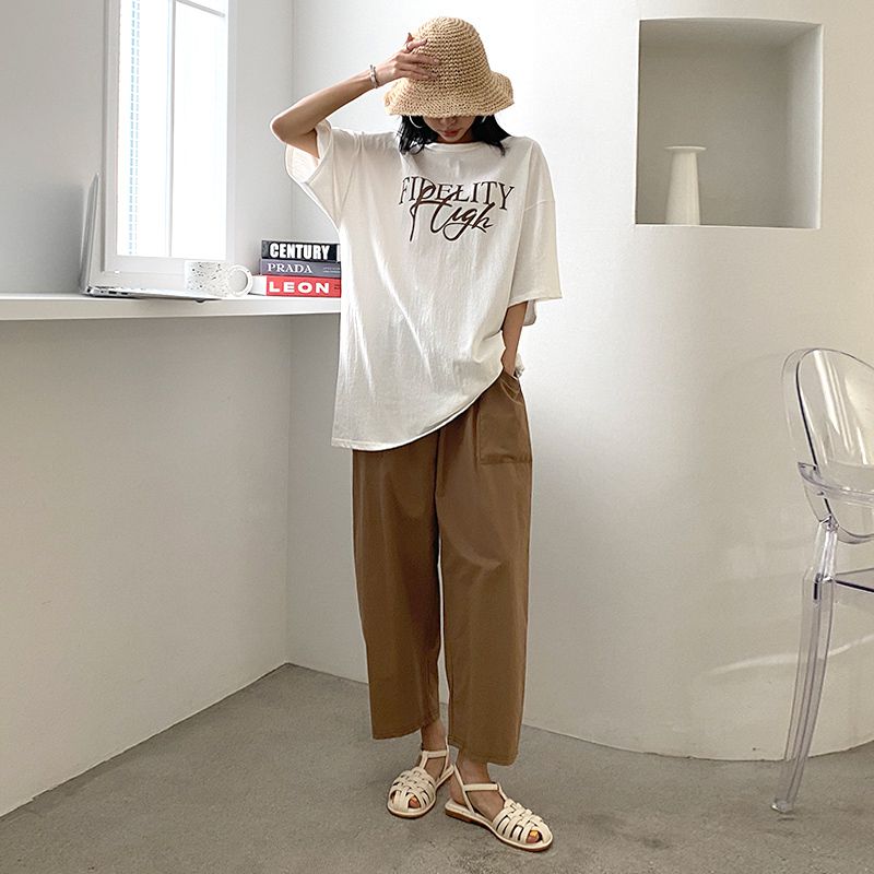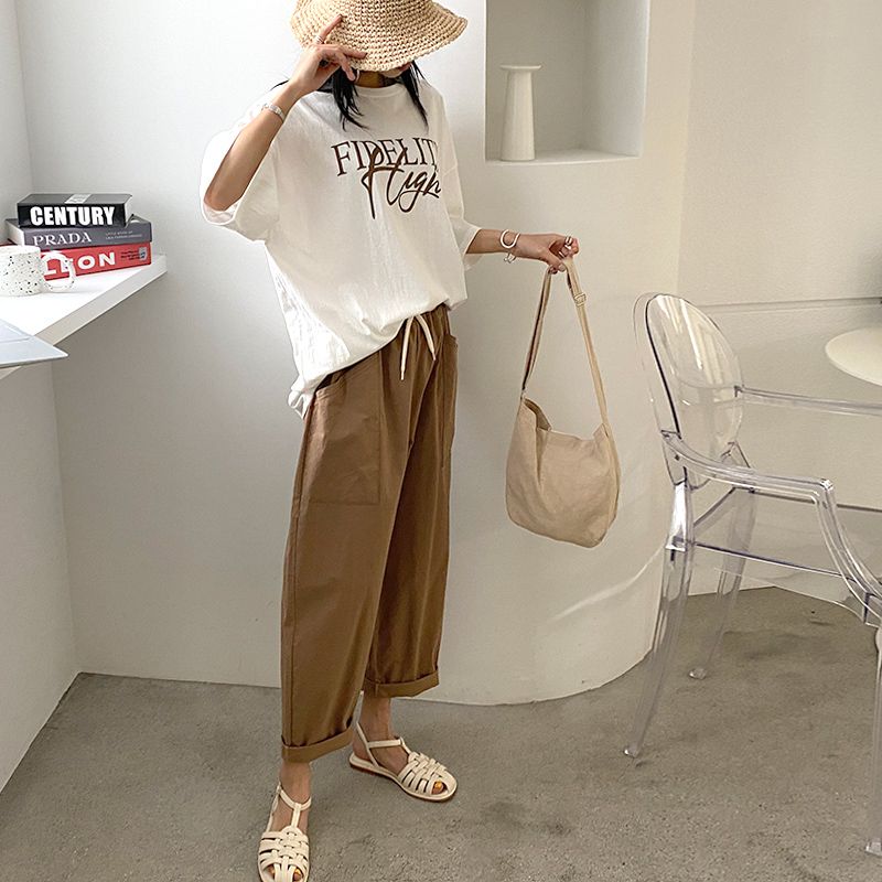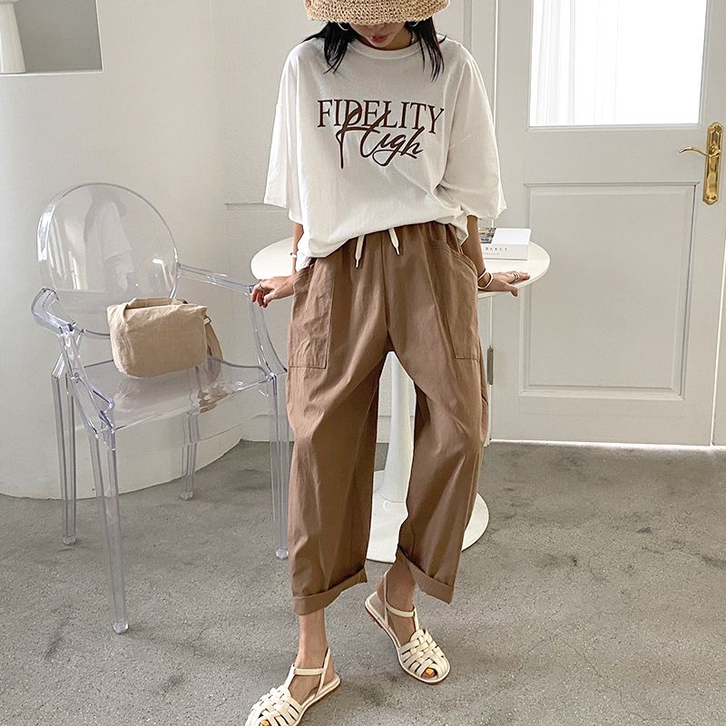 【C56064】韓國BHN 切線大口袋寬褲-素面抽繩鬆緊腰透氣休閒長褲