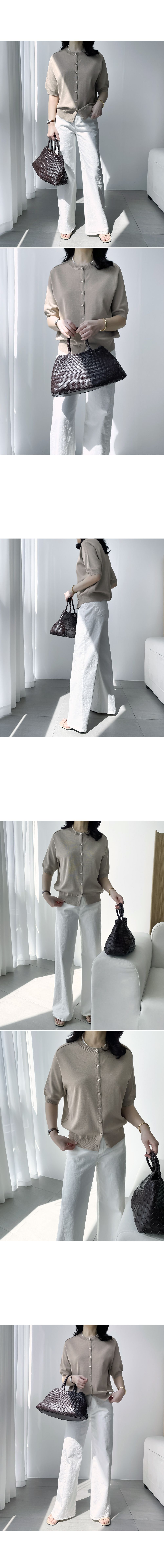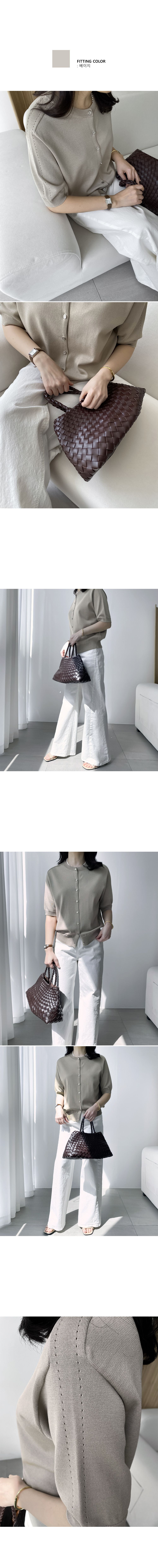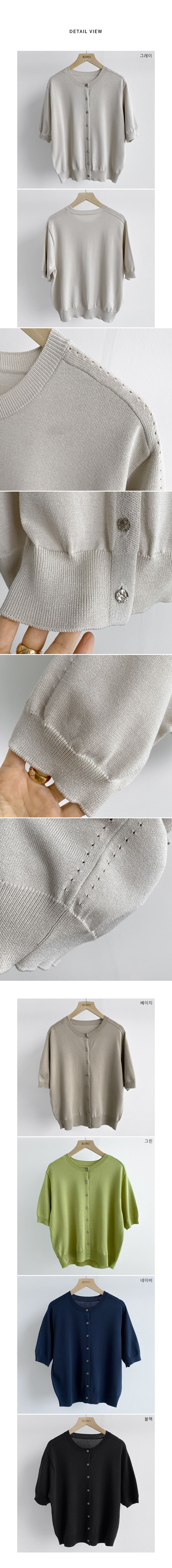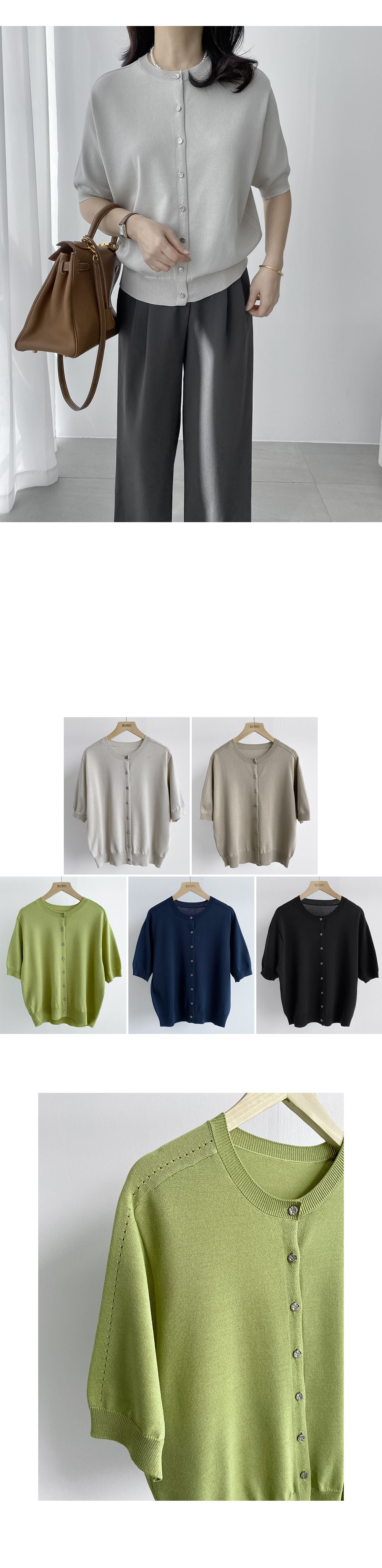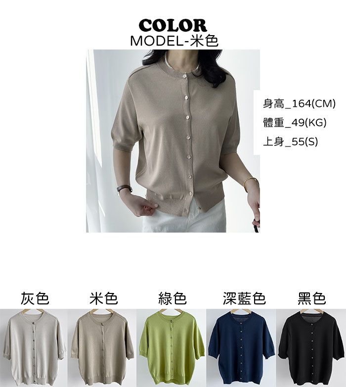 洞洞車線/圓領/開襟排釦/金屬鈕釦 - 休閒居家OL上班族簡約百搭素面金屬排釦針織衫針織上衣五分袖上衣針織外套灰色米色綠色深藍色黑色