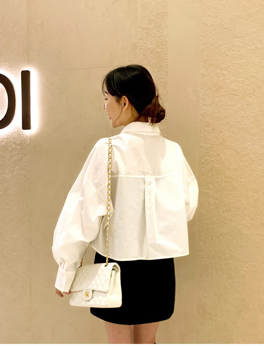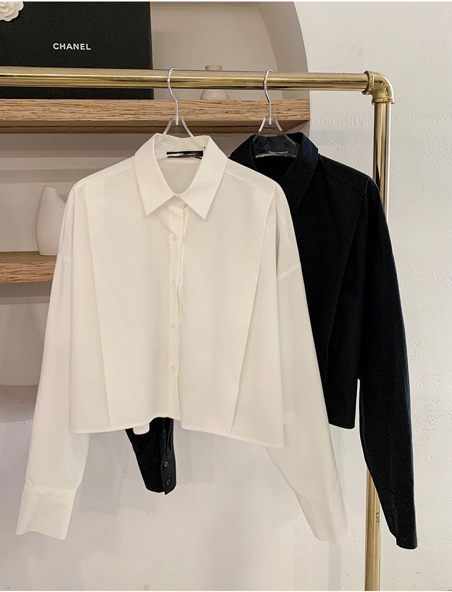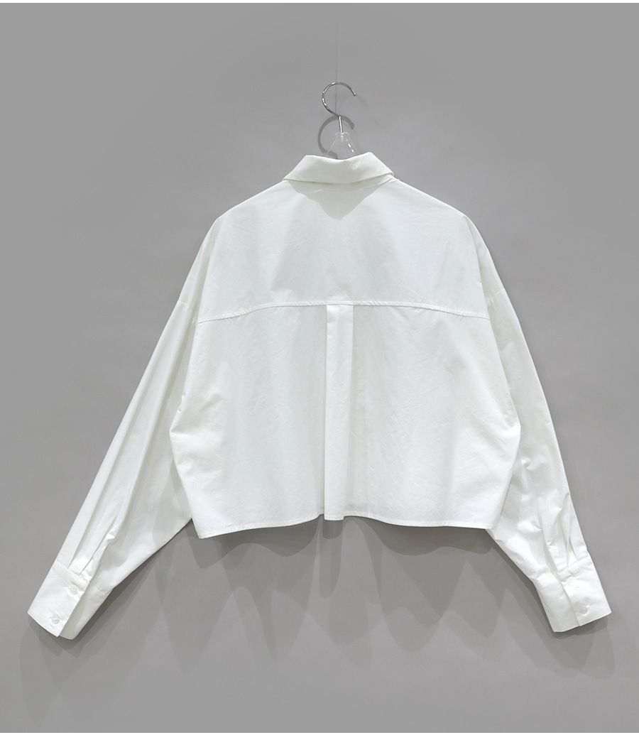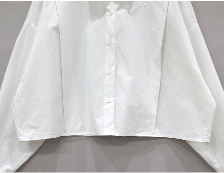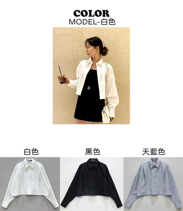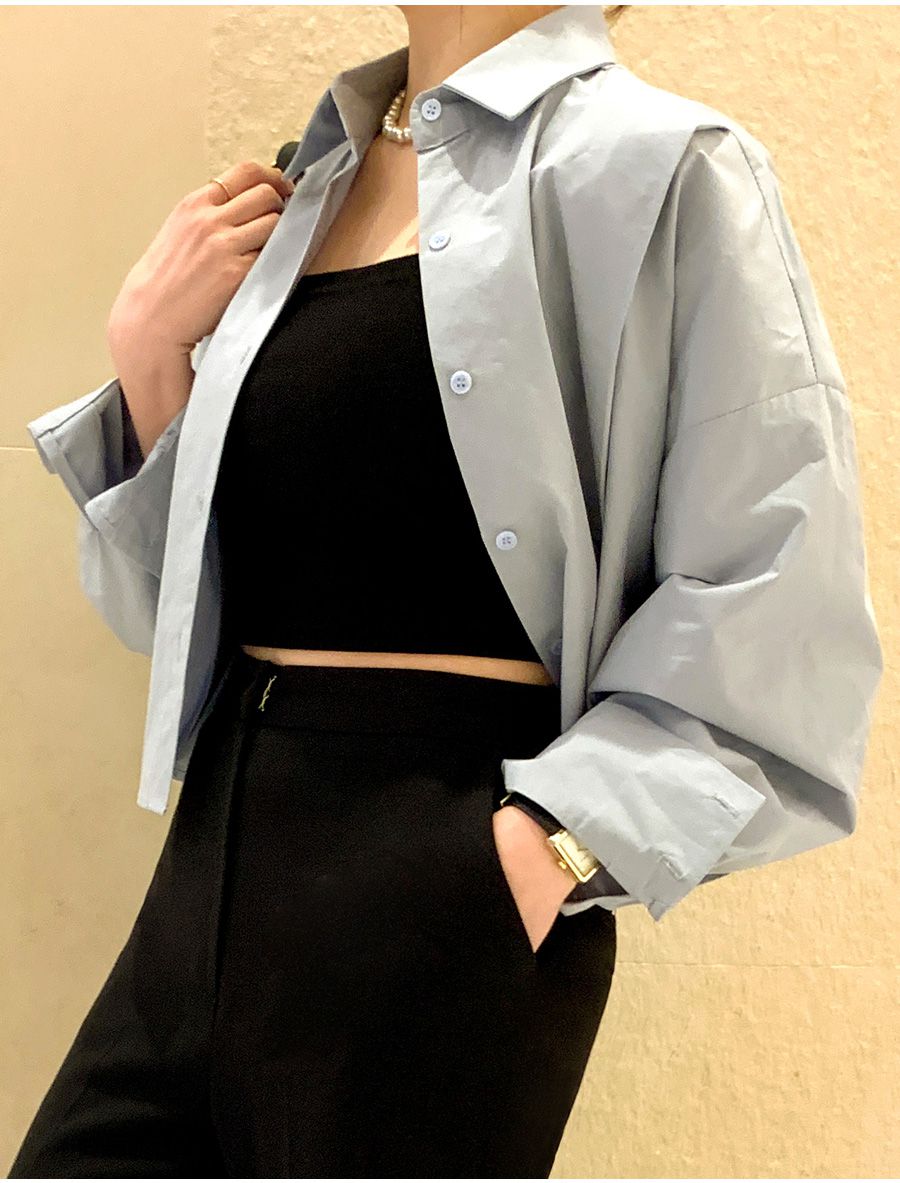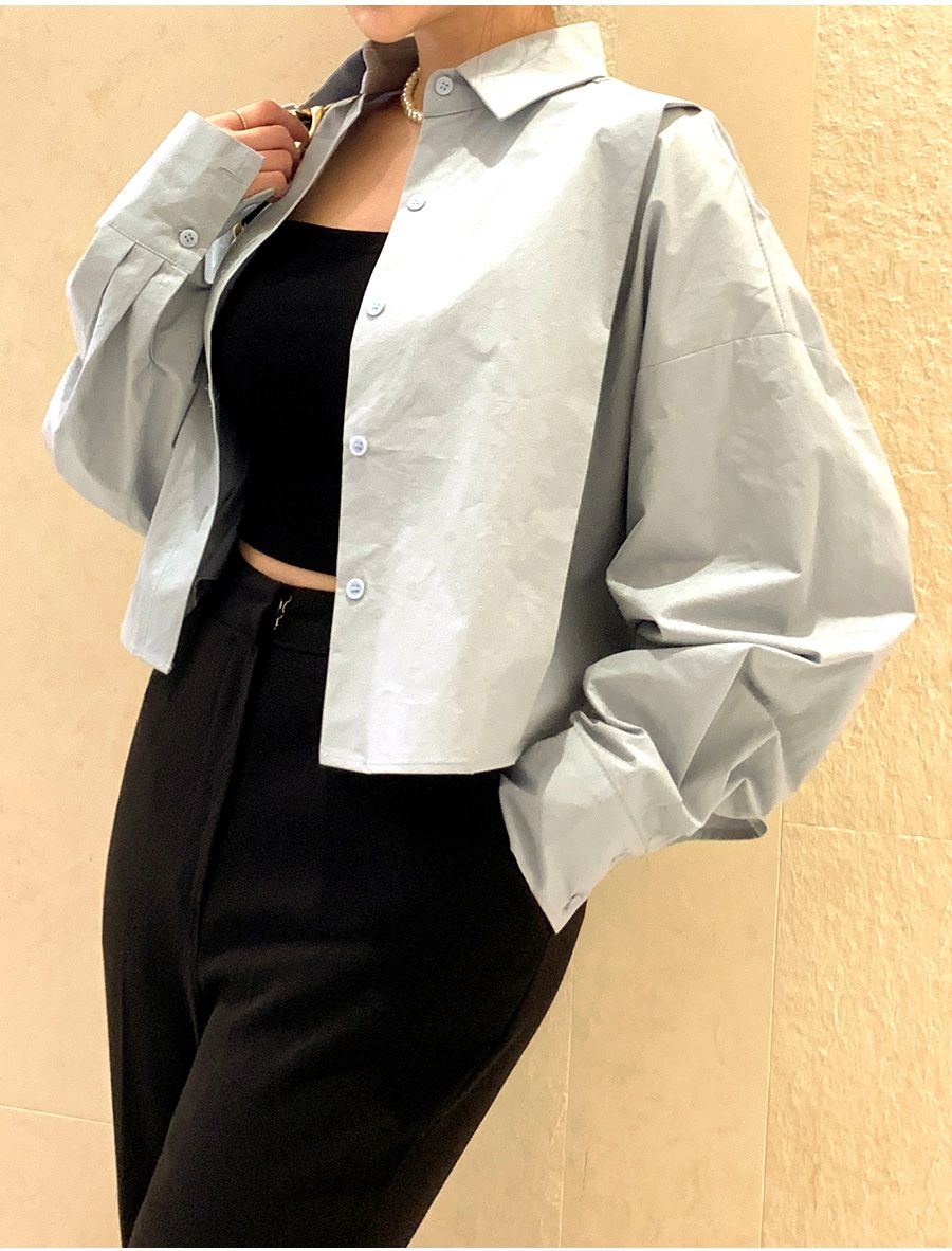 【C56103】韓國SPB 立體褶襯衫上衣-素面寬鬆短版開襟排釦長袖外套