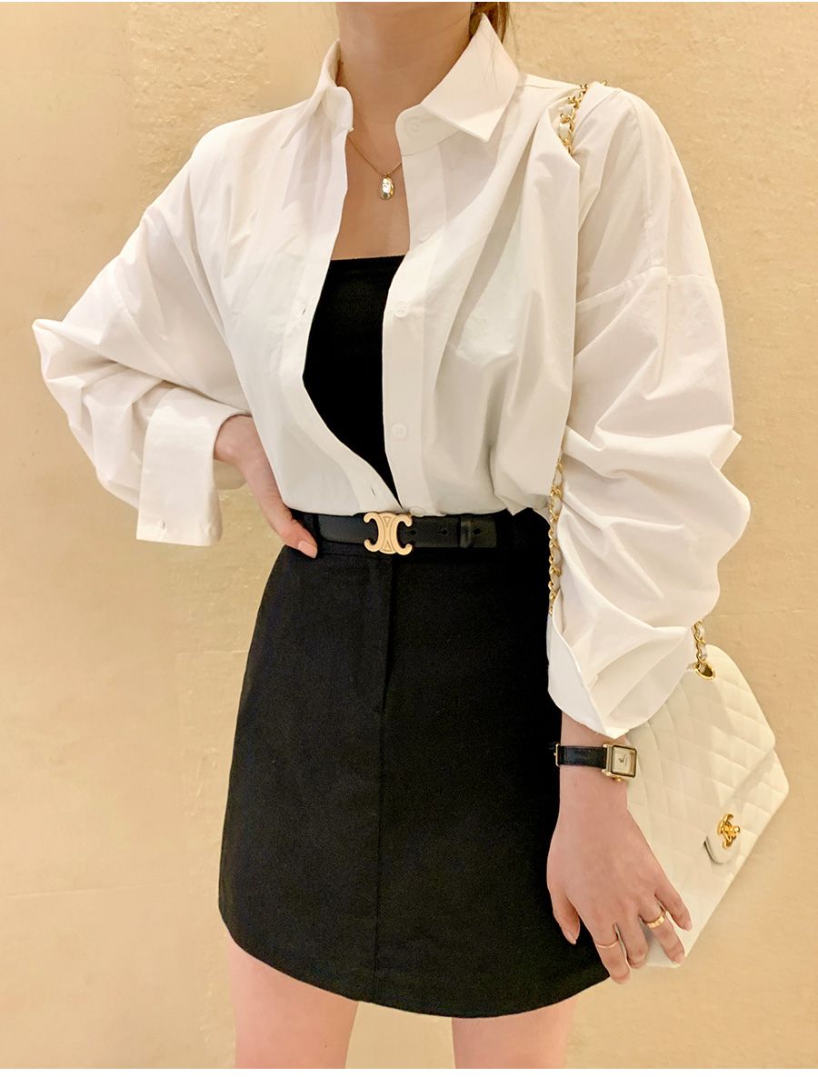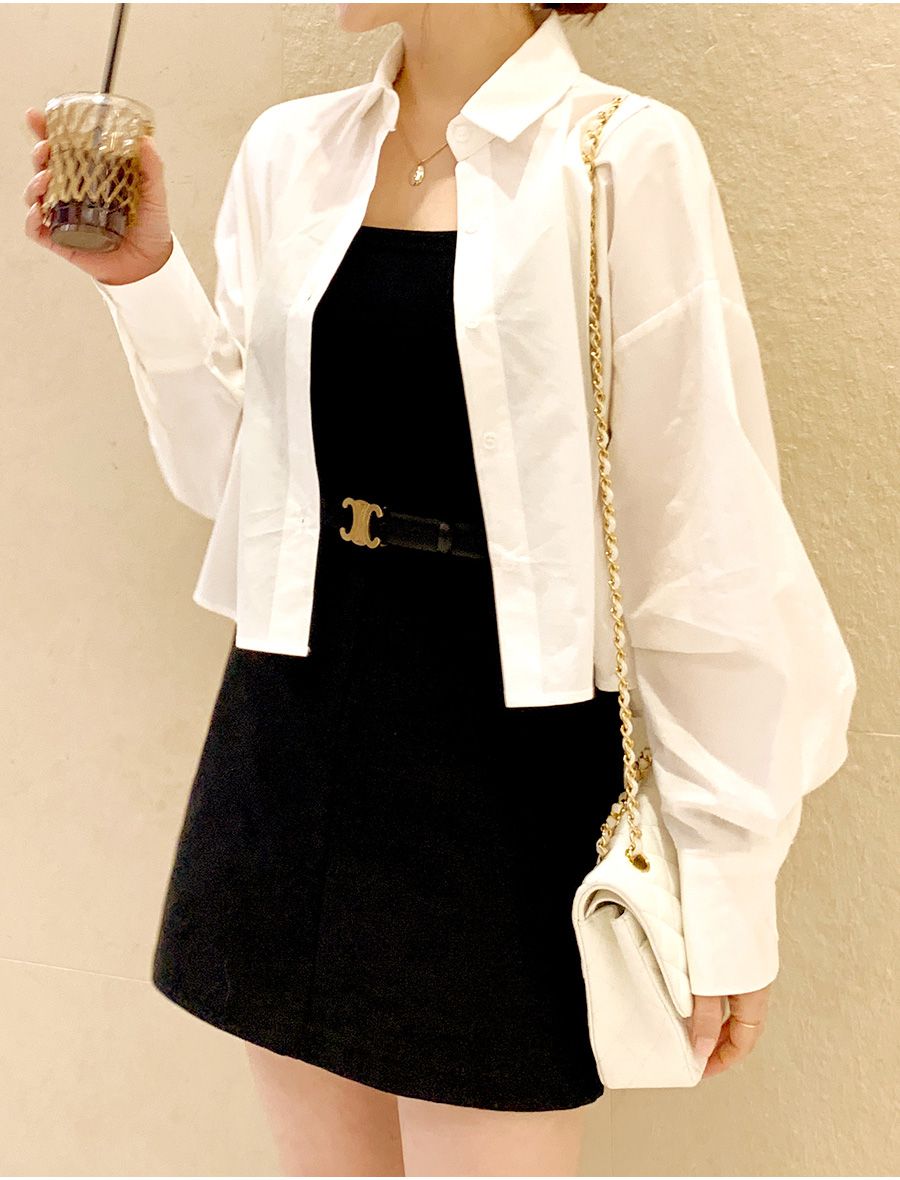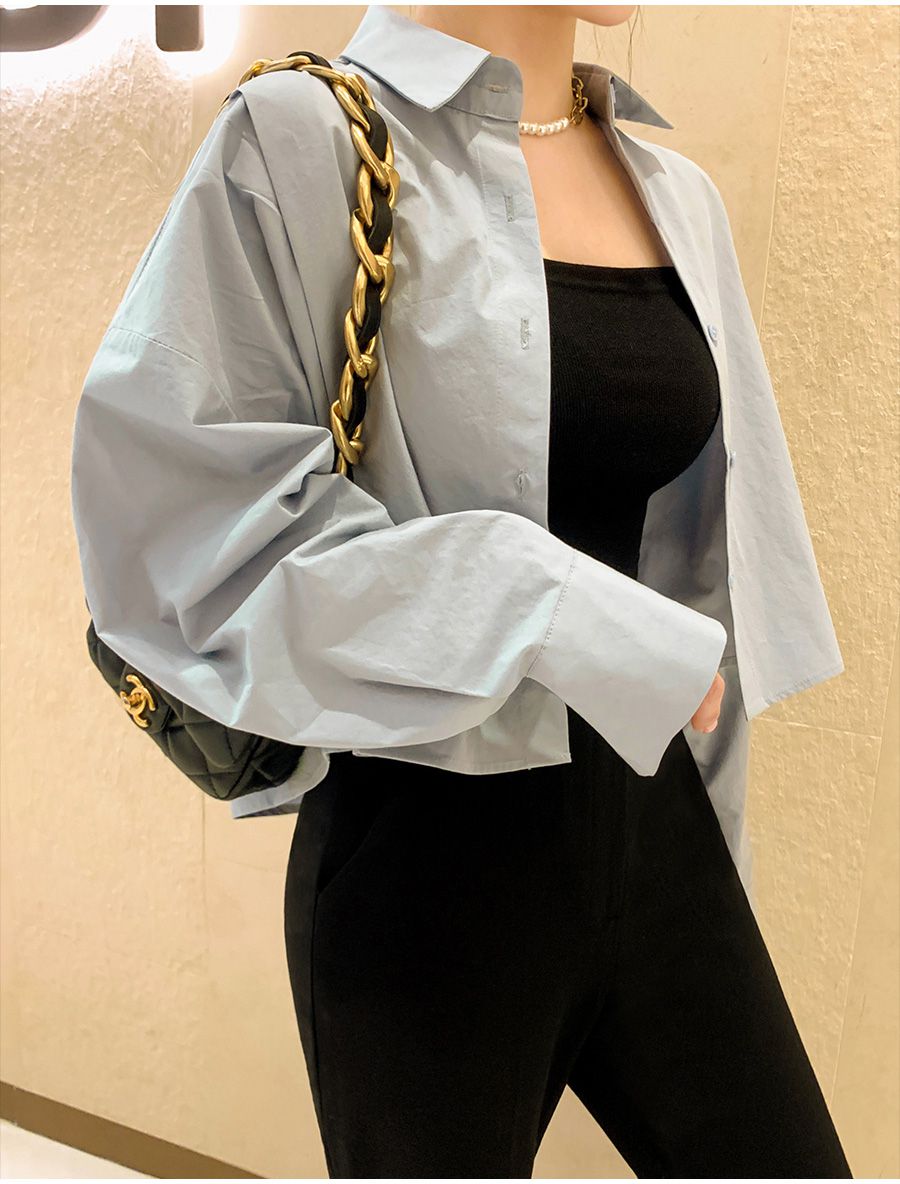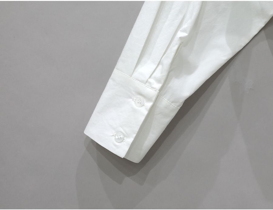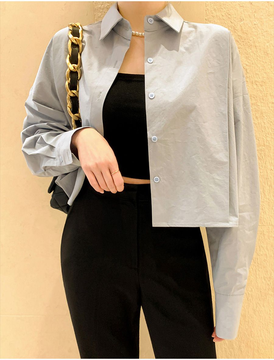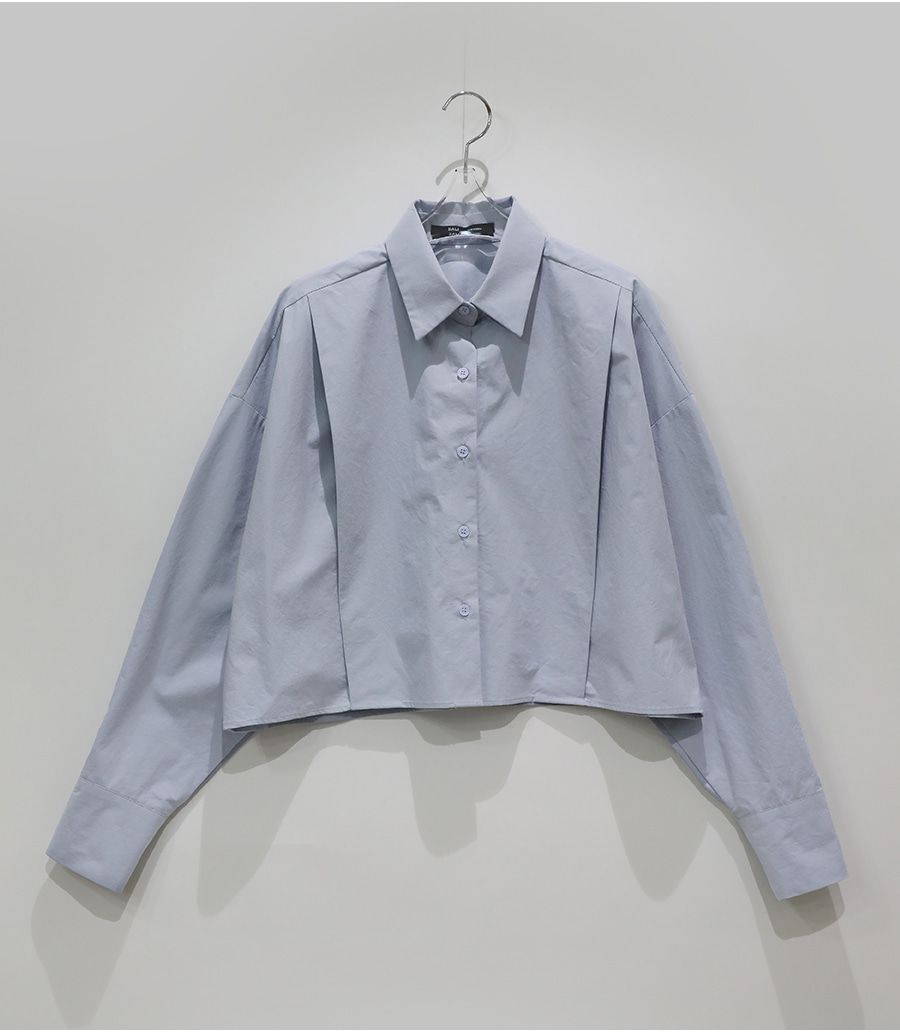 【C56103】韓國SPB 立體褶襯衫上衣-素面寬鬆短版開襟排釦長袖外套