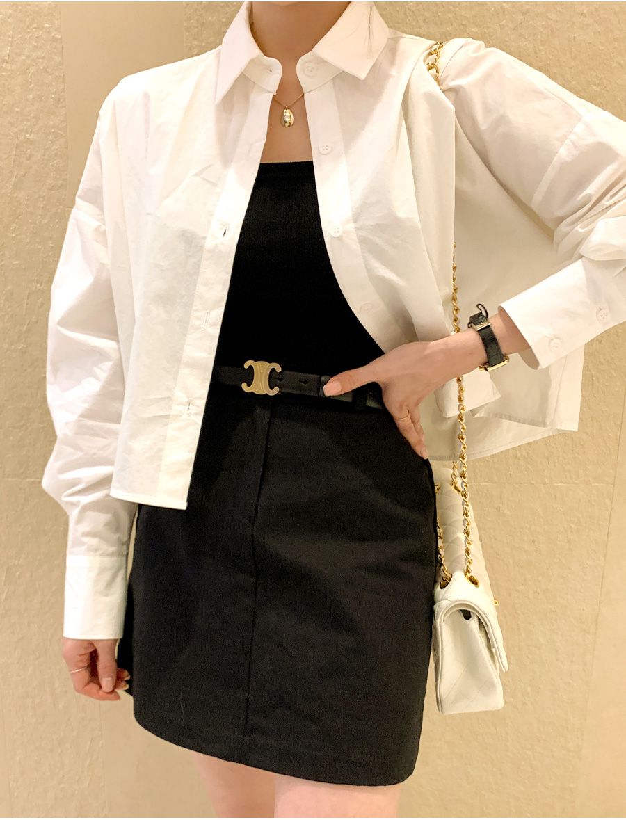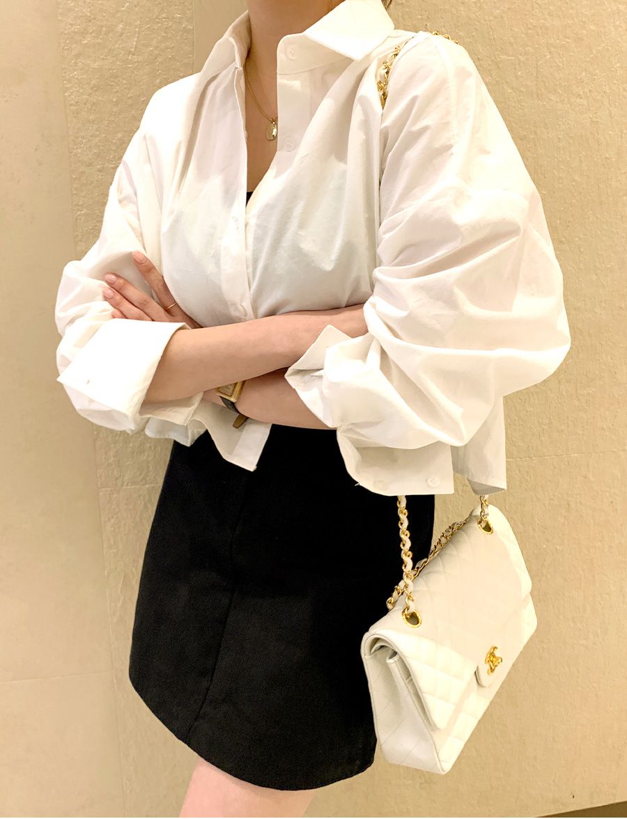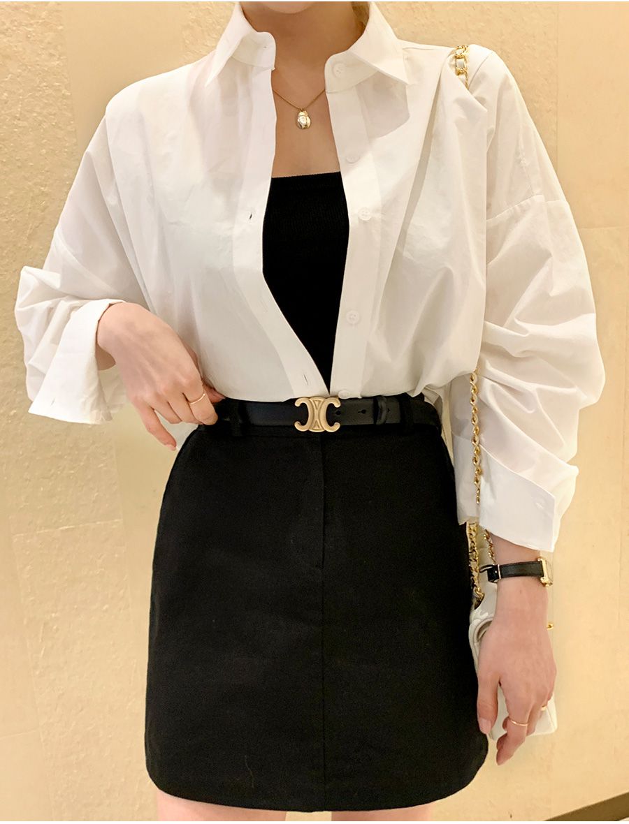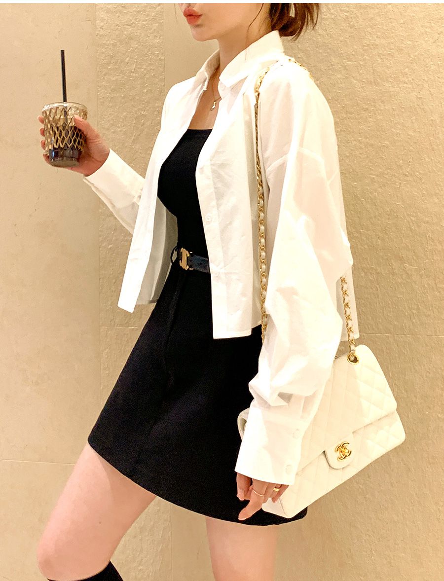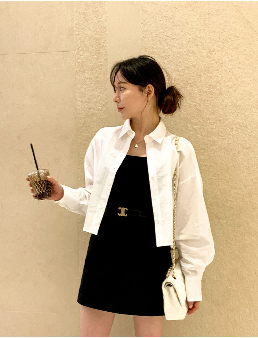 【C56103】韓國SPB 立體褶襯衫上衣-素面寬鬆短版開襟排釦長袖外套
