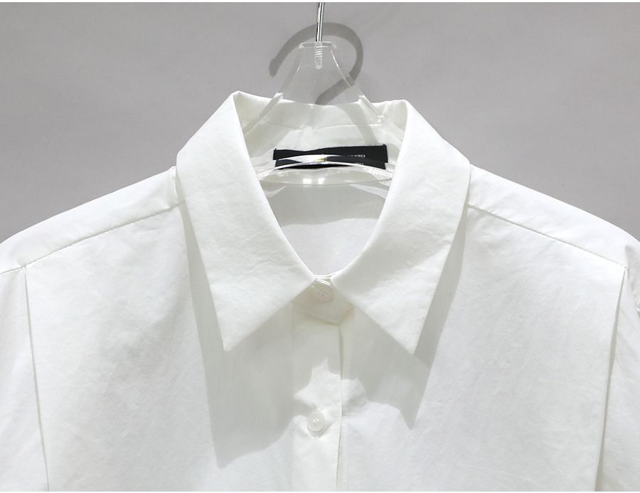 寬鬆大尺碼上衣/俐落短版/立體雙褶/開襟排釦 - 休閒居家OL上班族簡約百搭素面立體褶襯衫長袖上衣長袖外套襯衫外套白色黑色天藍色