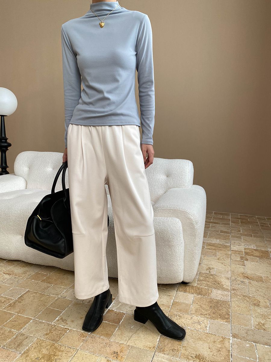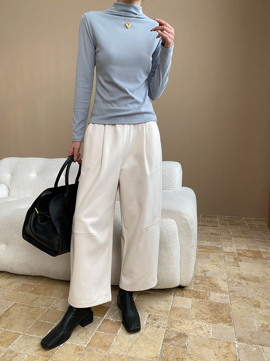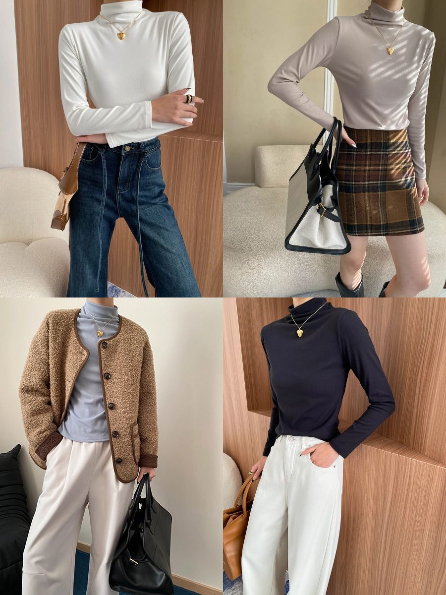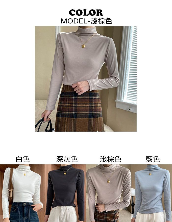 兩種尺寸/基礎款素T/立領.高領/俐落短版上衣 - 休閒居家OL上班族簡約百搭素面高領內搭上衣合身內搭長袖長袖上衣多尺寸ML白色深灰色淺棕色藍色