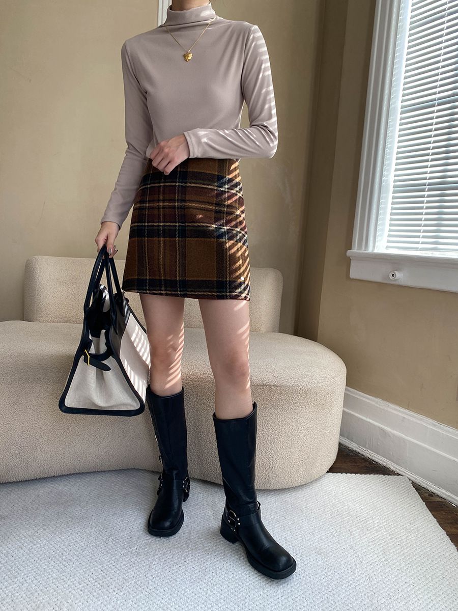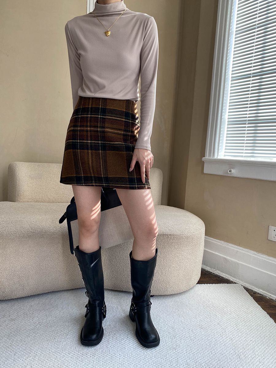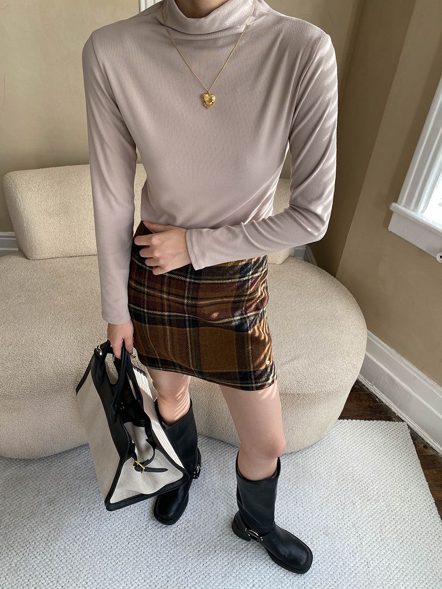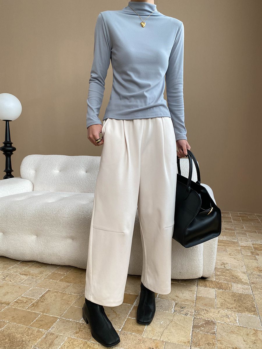 兩種尺寸/基礎款素T/立領.高領/俐落短版上衣 - 休閒居家OL上班族簡約百搭素面高領內搭上衣合身內搭長袖長袖上衣多尺寸ML白色深灰色淺棕色藍色