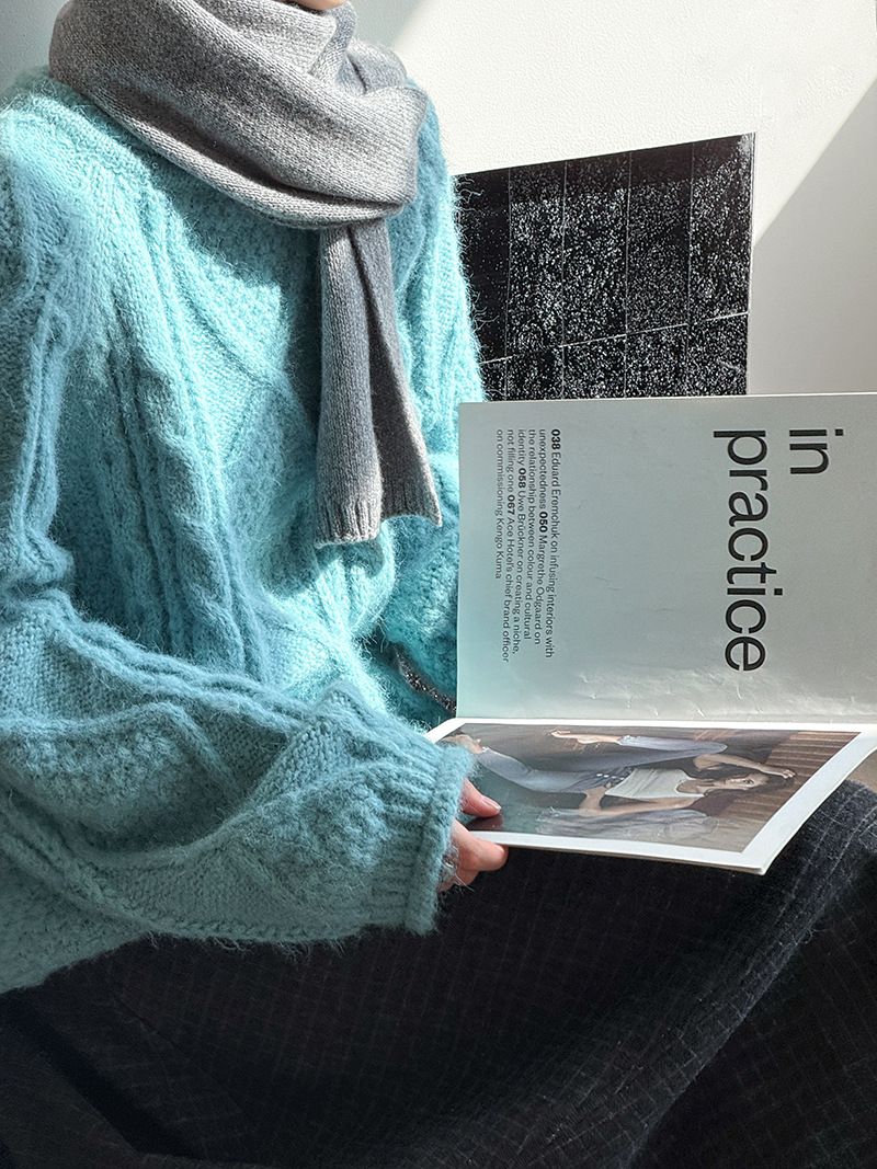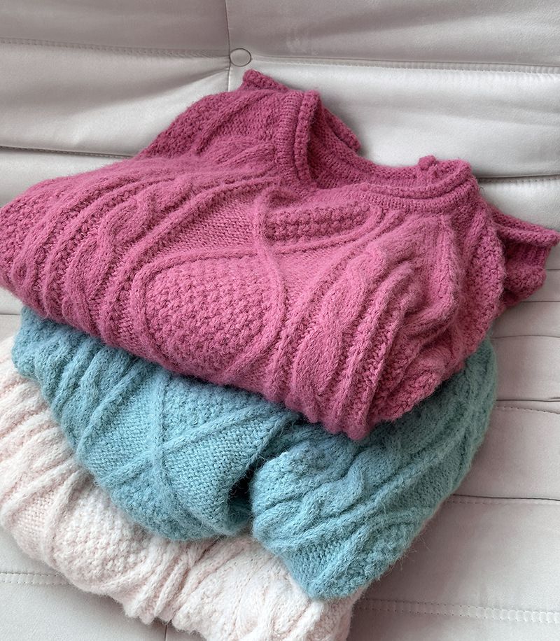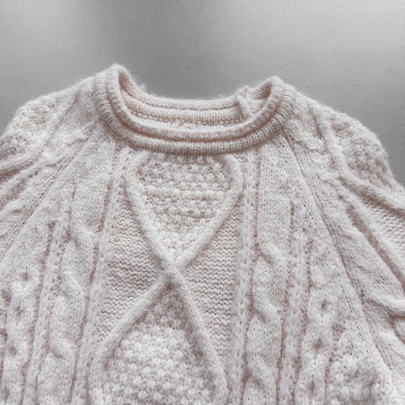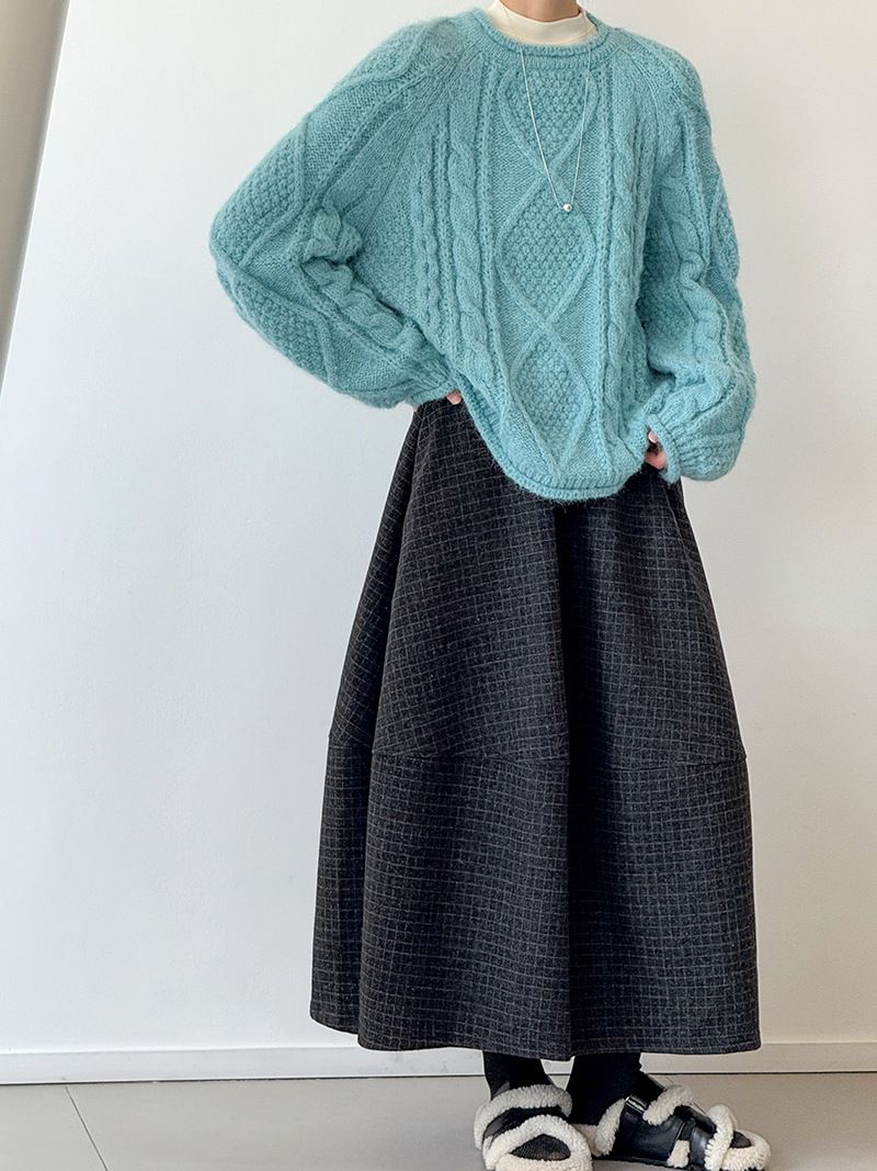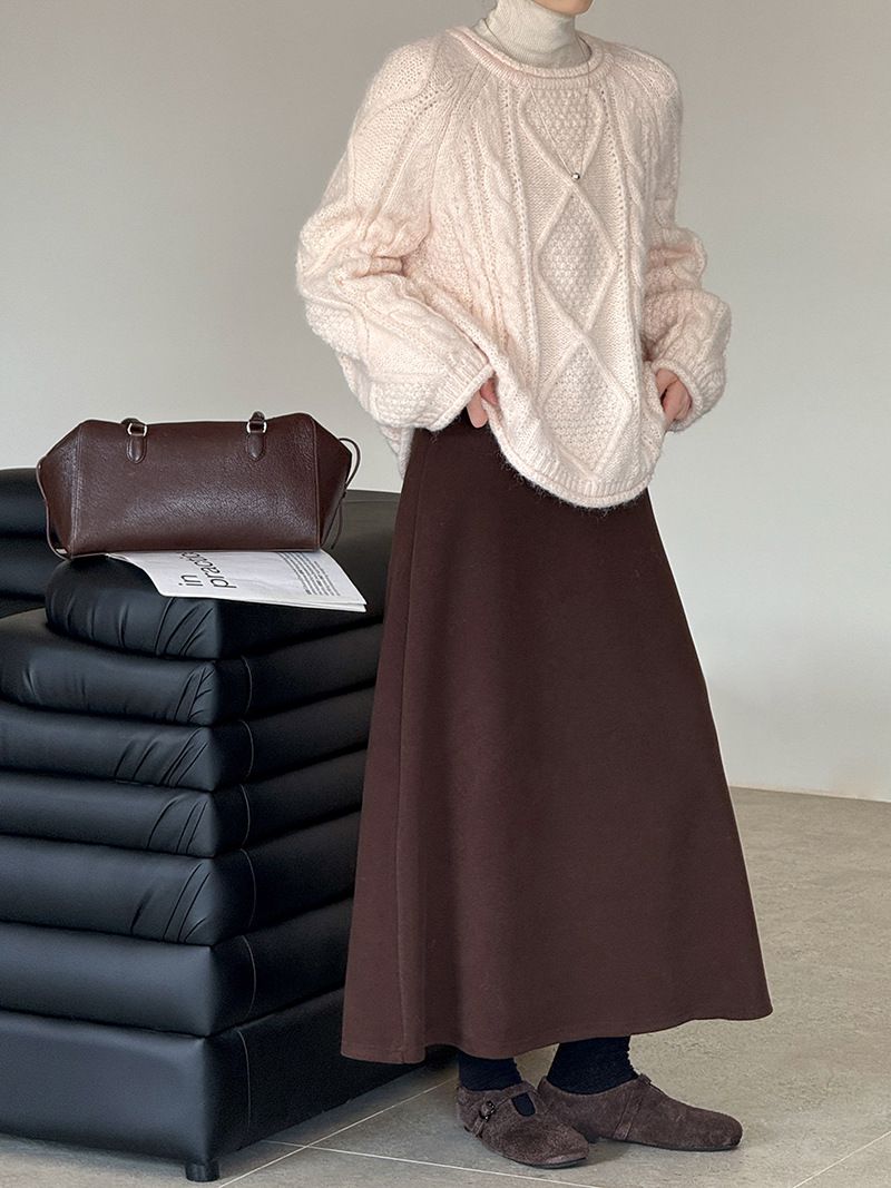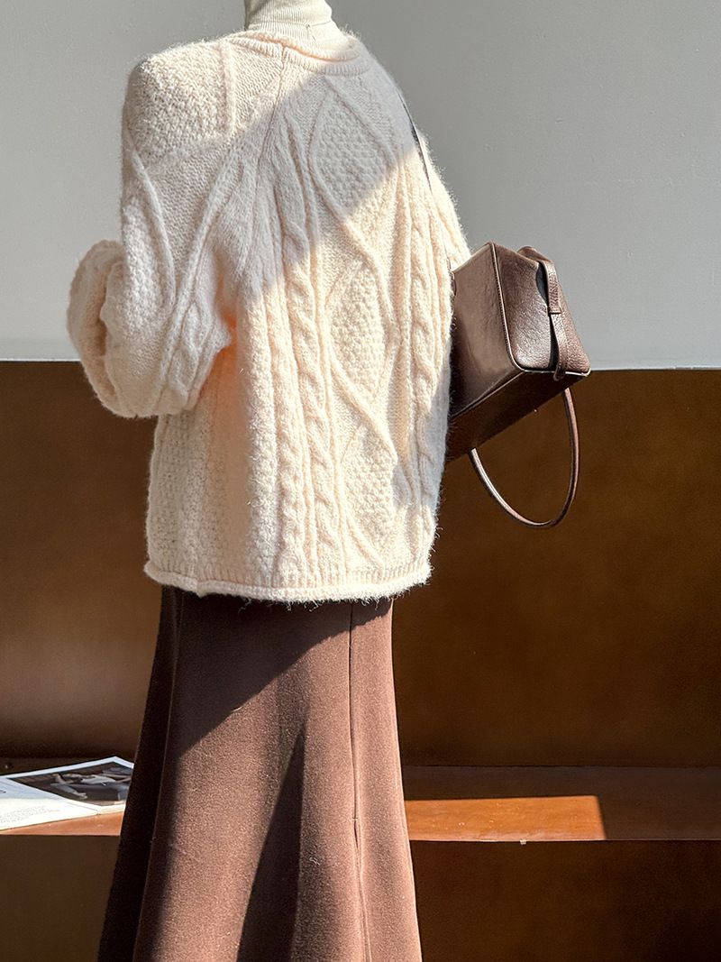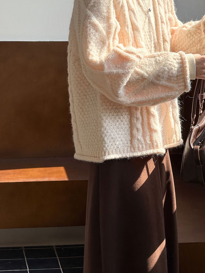 立體麻花編織紋/捲邊圓領/落肩寬袖/好氣色/寬鬆/保暖混羊毛 - 休閒居家簡約百搭素面寬鬆大尺碼上衣麻花針織衫針織上衣長袖上衣淺米色藍色粉色