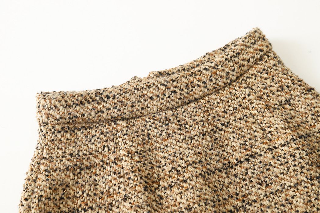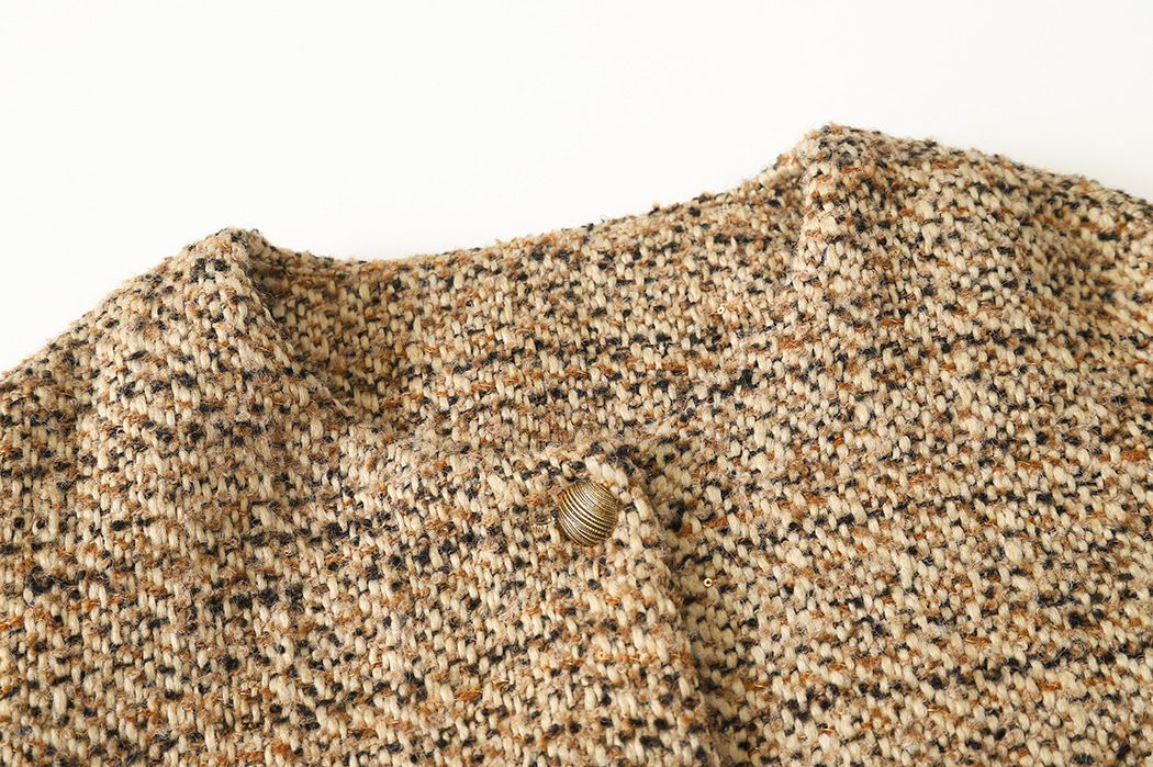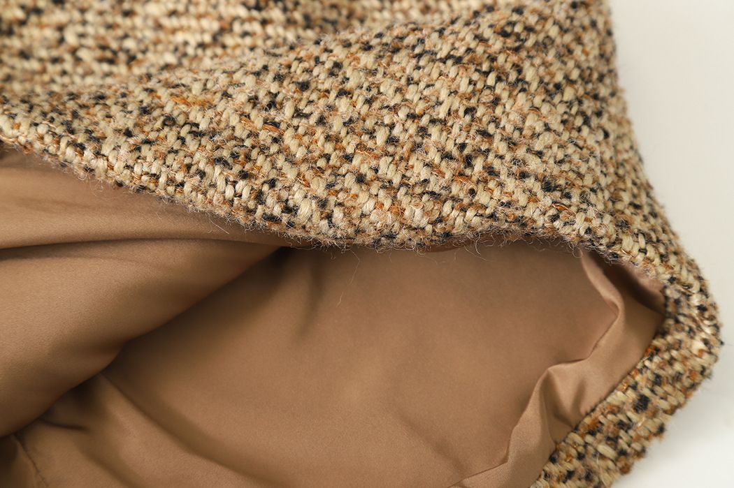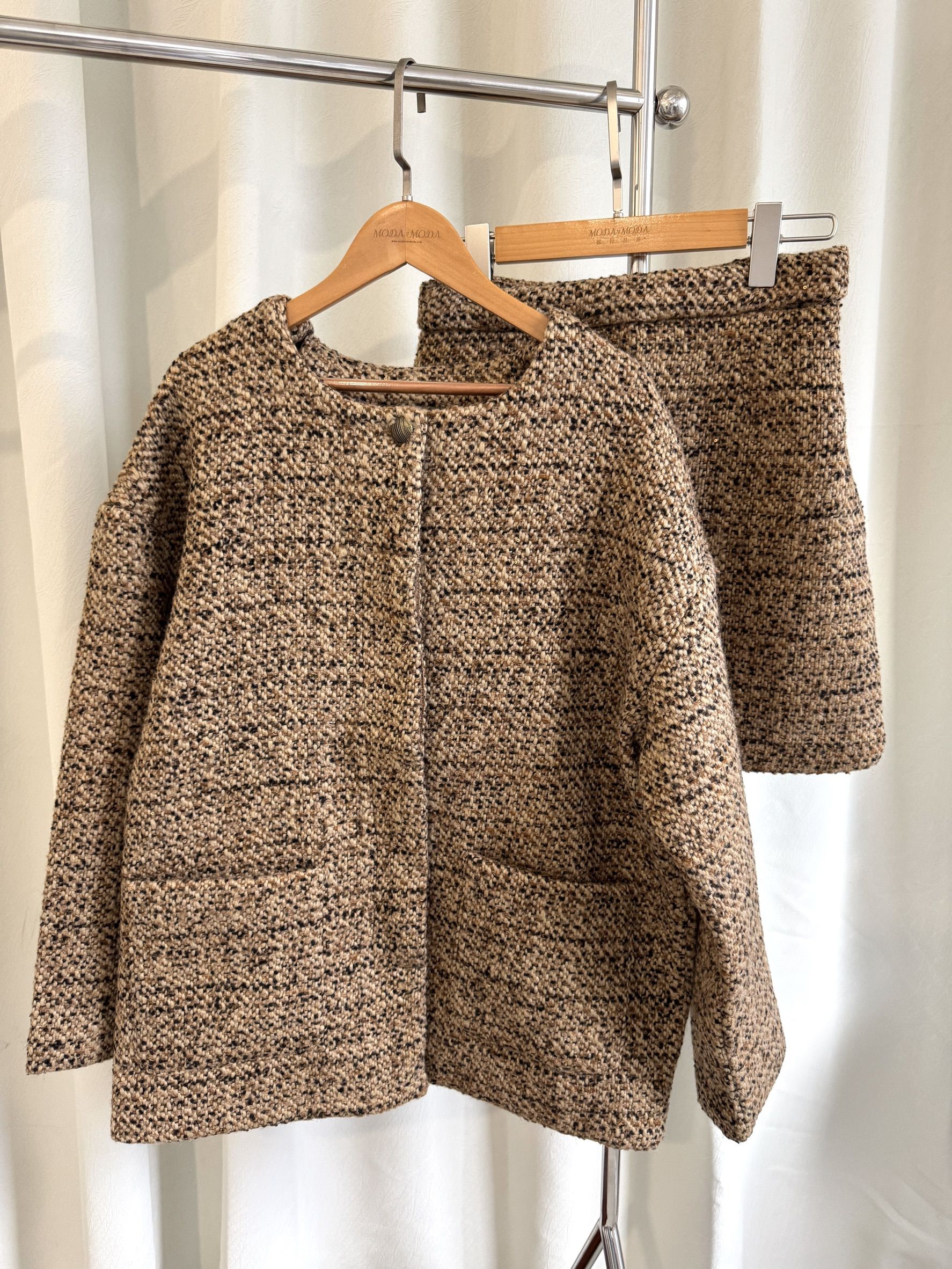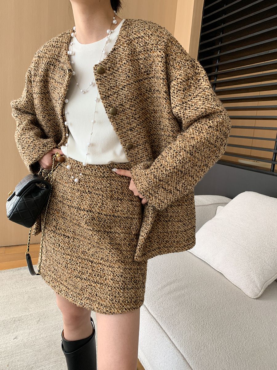 【C60045】品牌 小香風套裝-格紋毛呢長袖長版外套+拉鍊短裙子