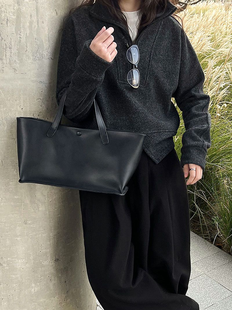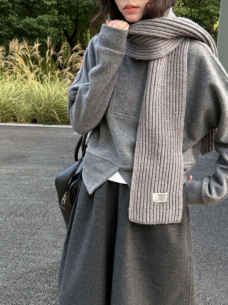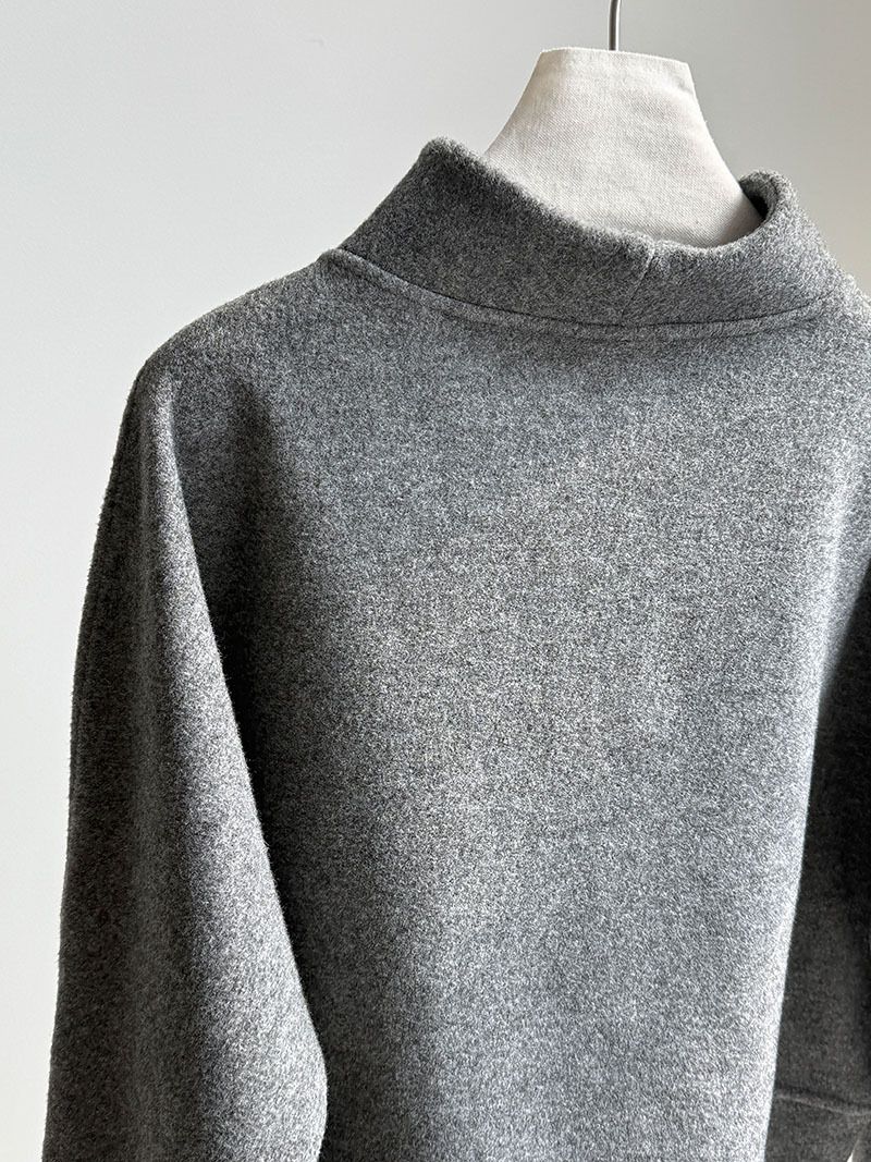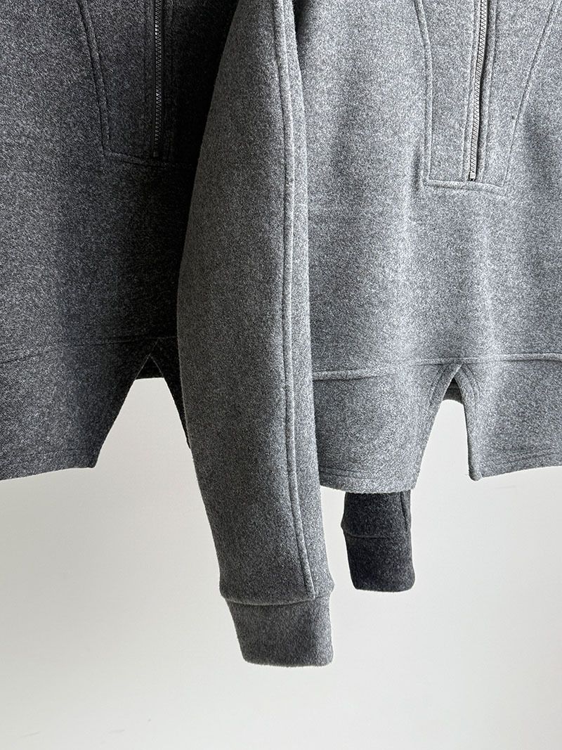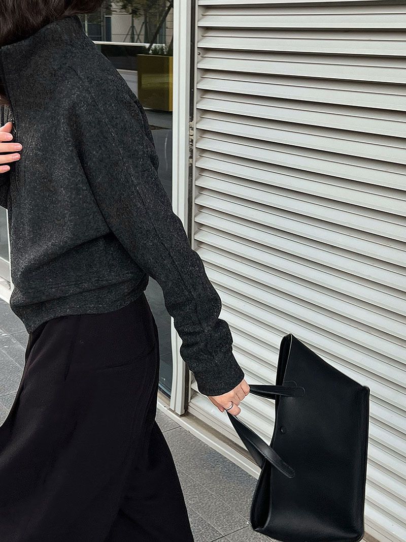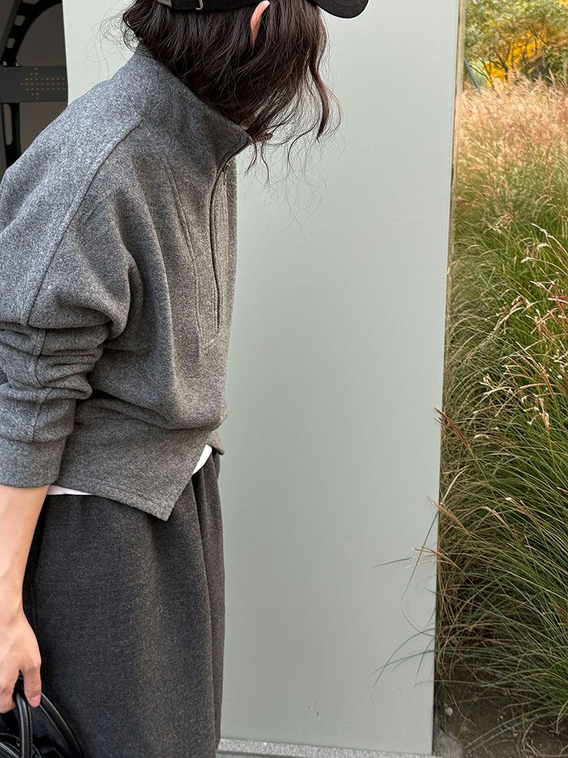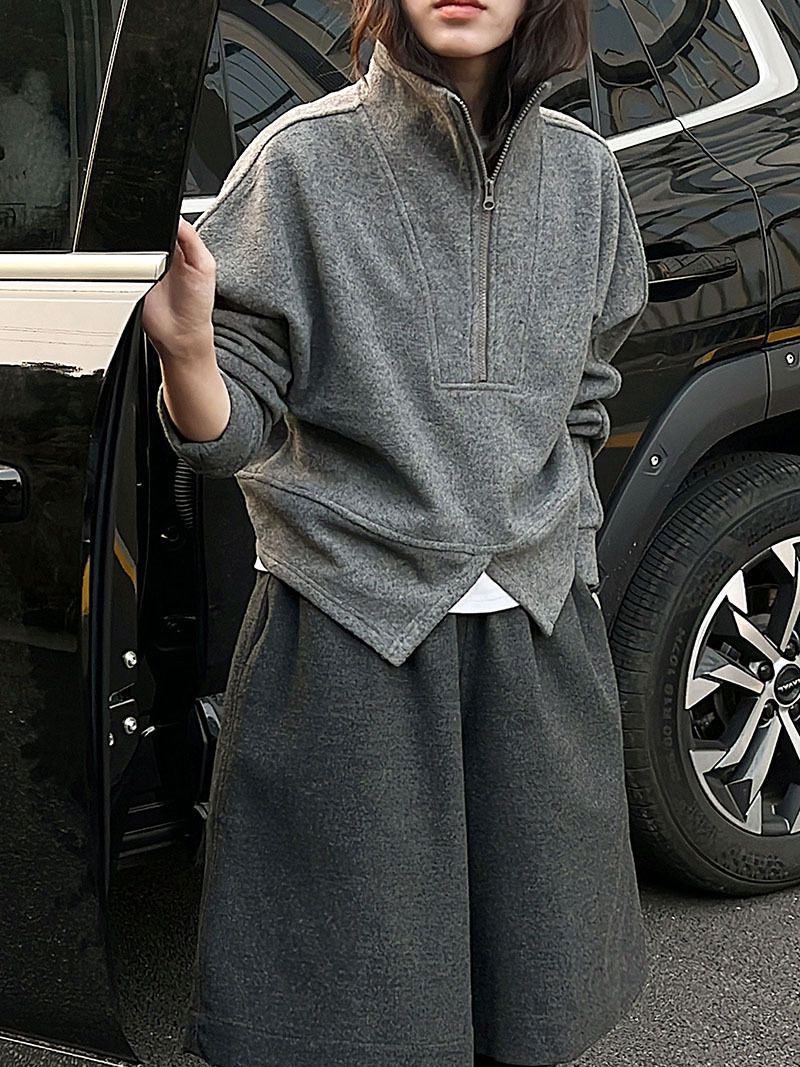 【C60052】品牌 拉鍊立領上衣-厚磅毛呢素面半開襟寬鬆開衩長袖★★